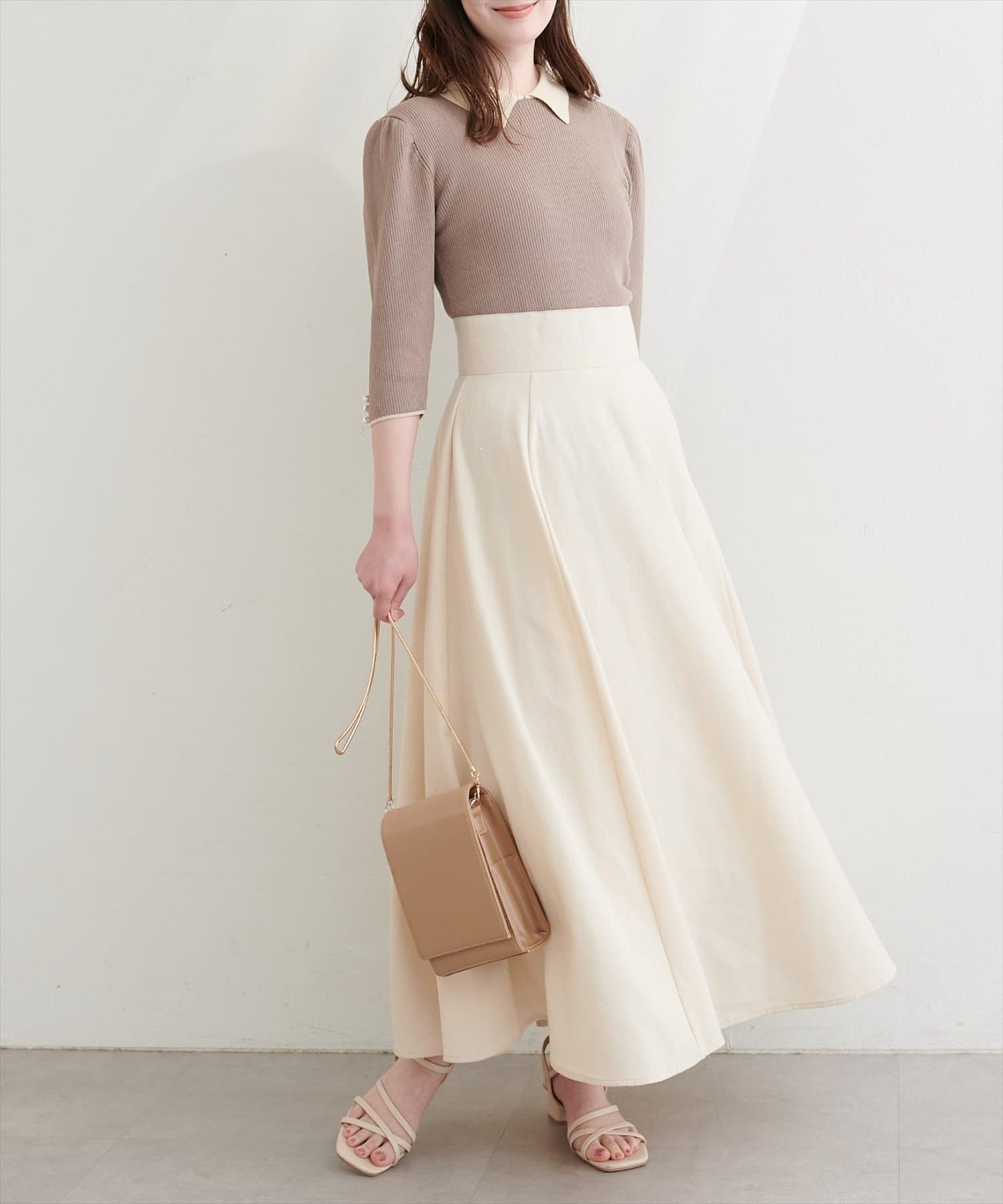 フレアやマーメイド、ナローシルエットのスカートにウエストインしてきれいめに合わせるのはもちろん、