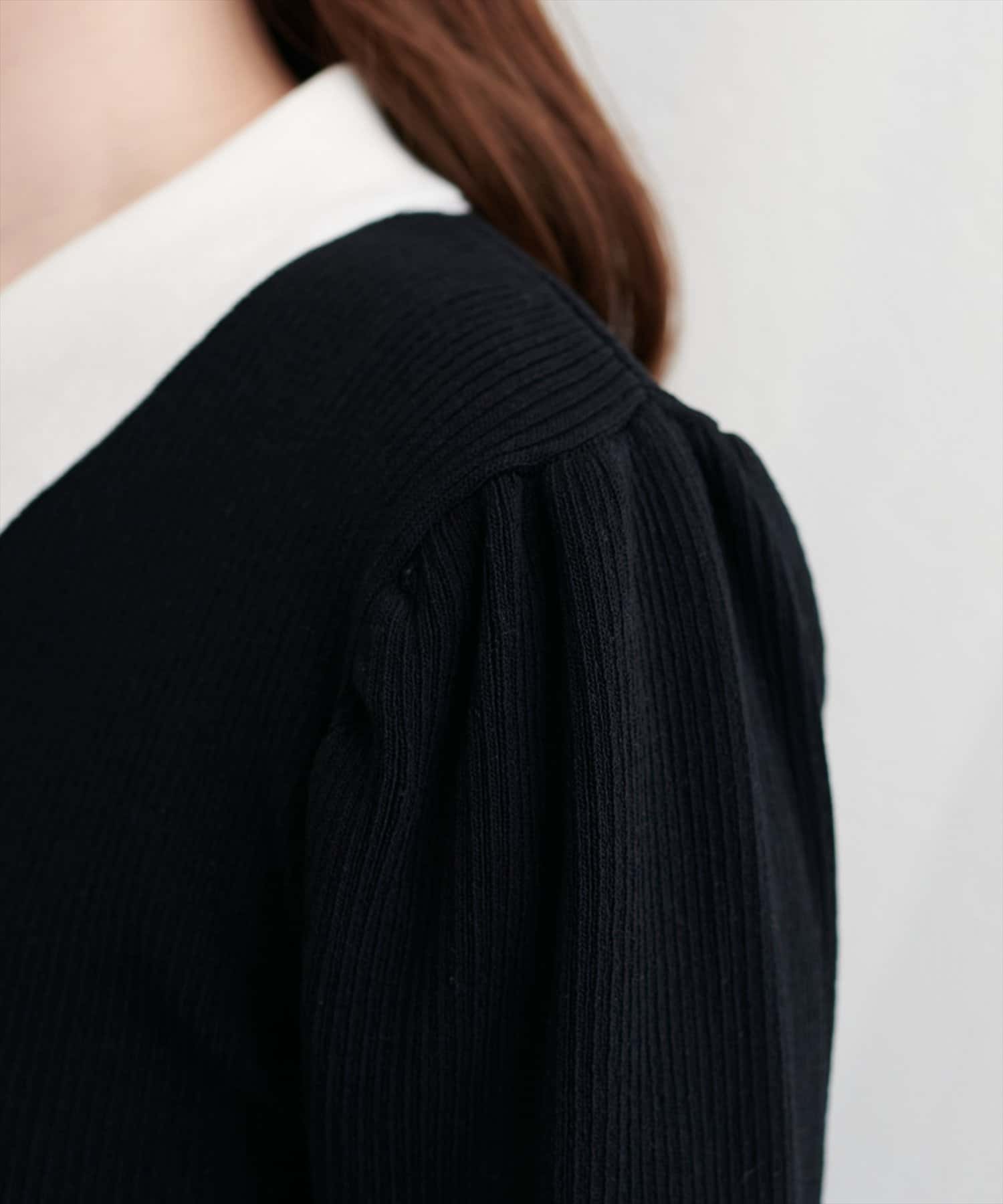 肩にギャザーがふわっと入っていて、柔らかい印象に。