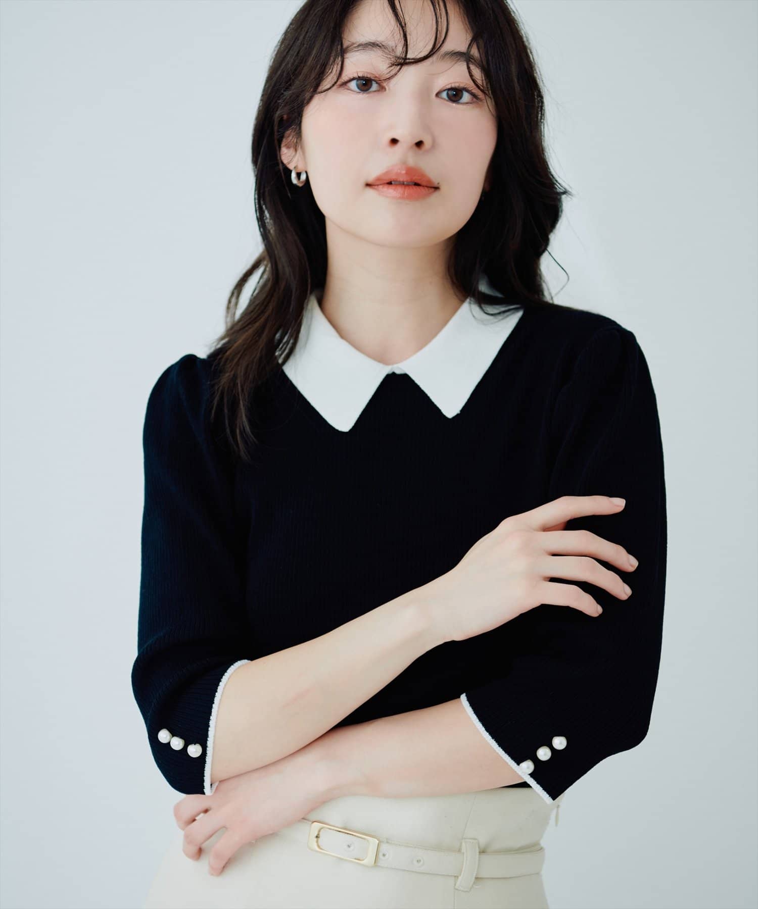 衿と袖口に施された配色がコーディネーターにアクセントをプラス。