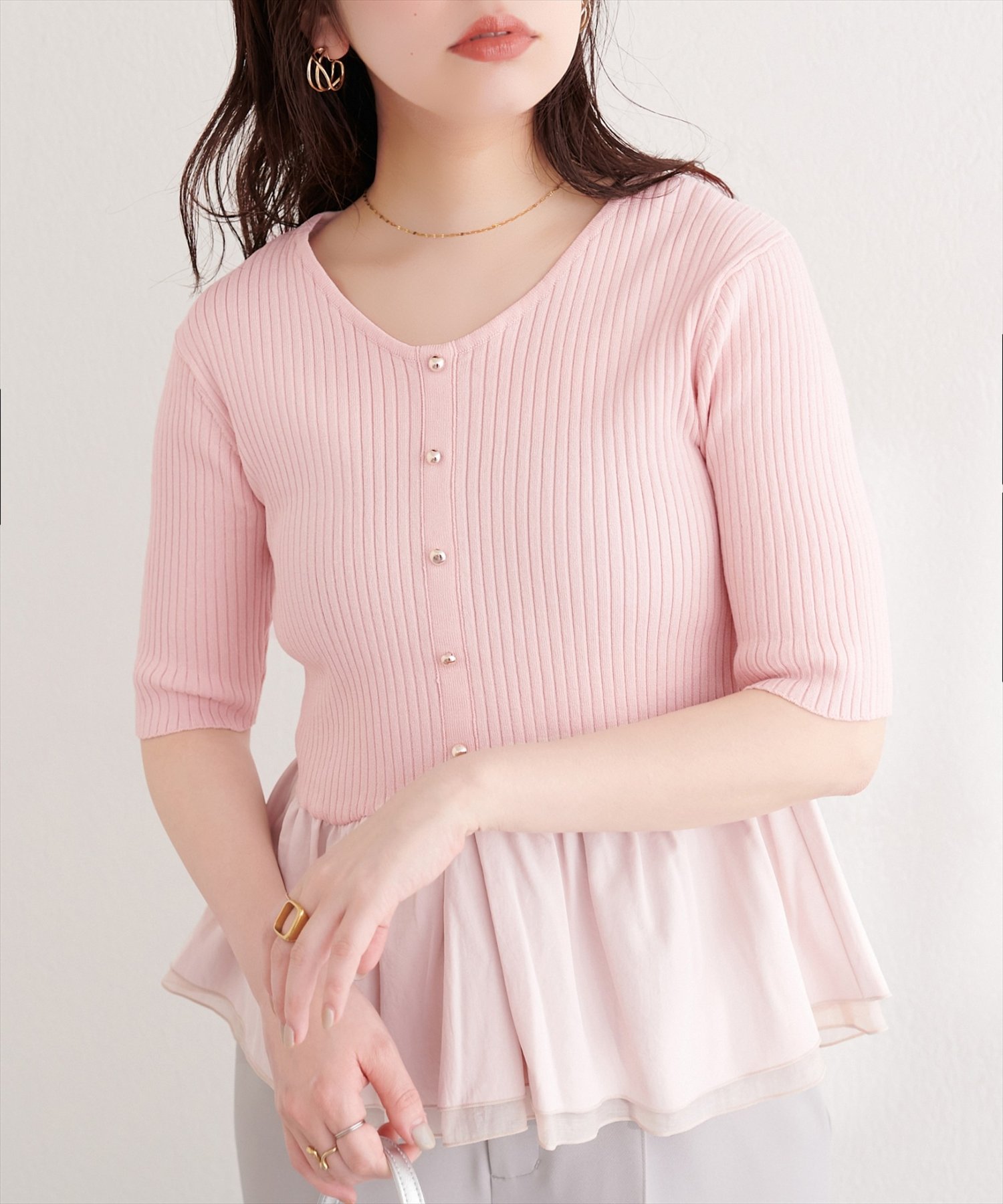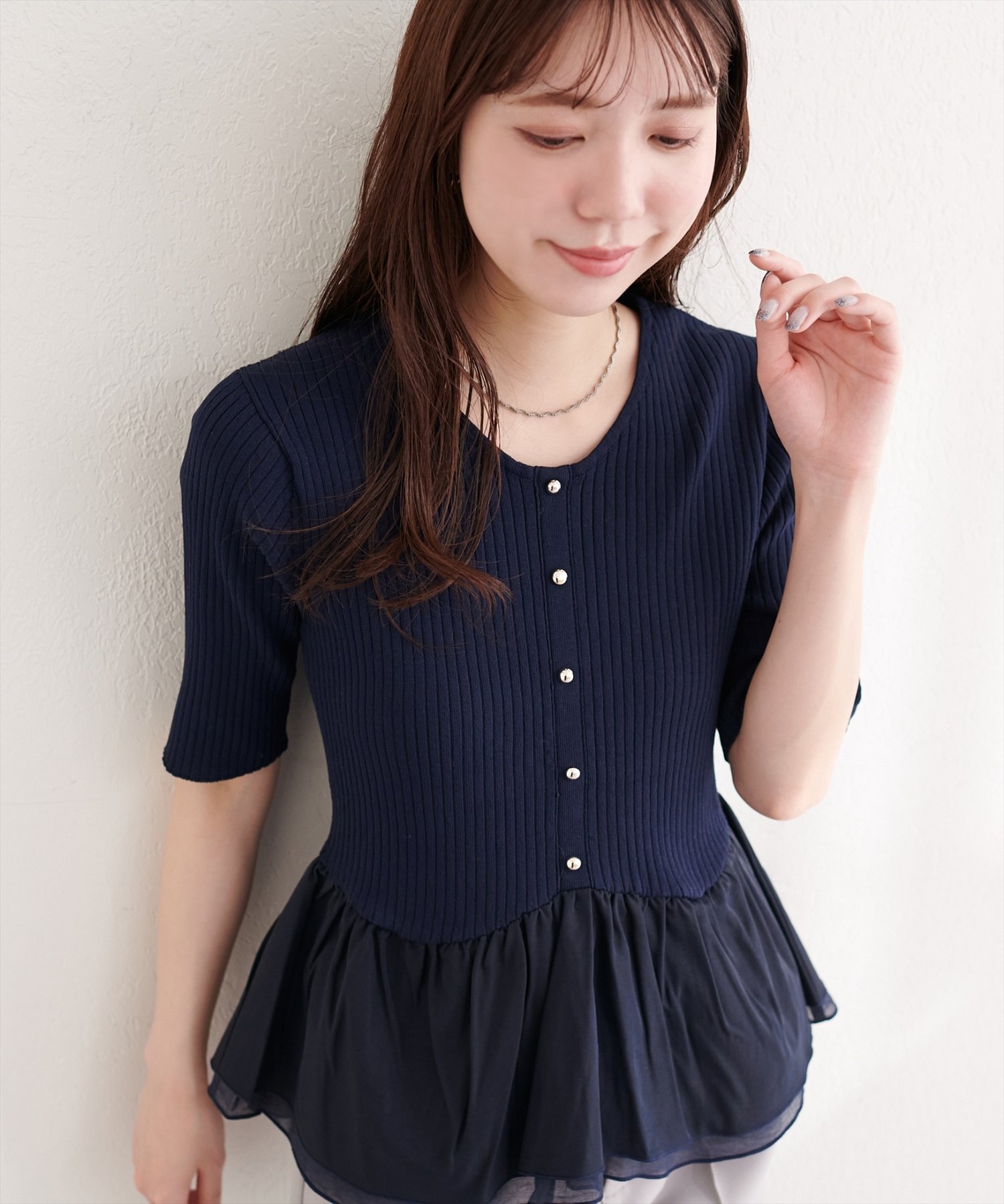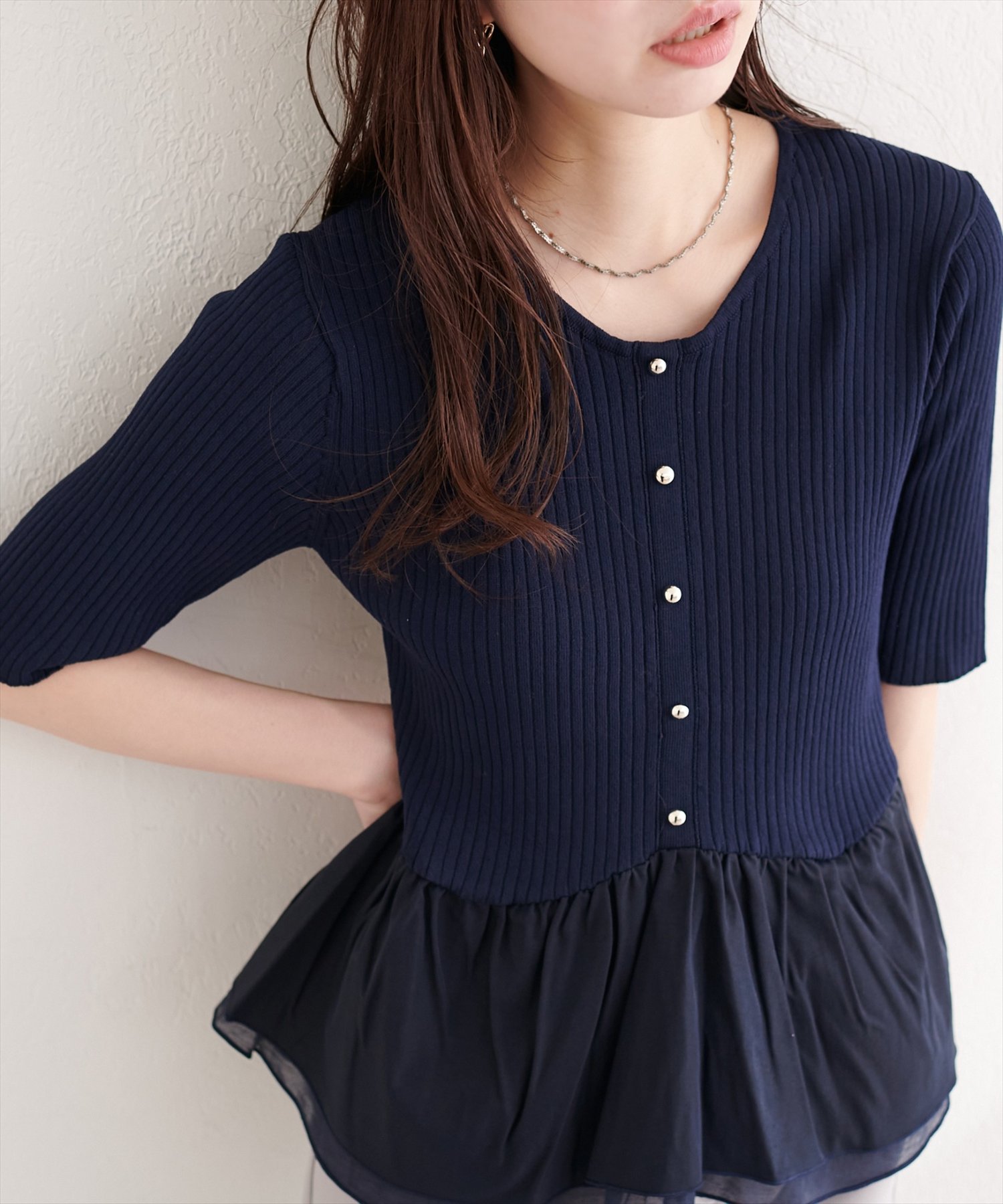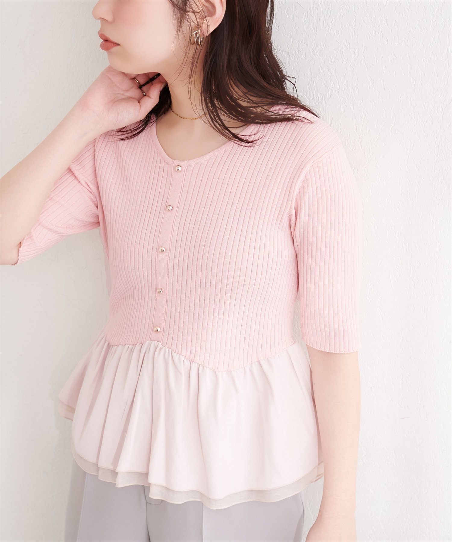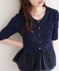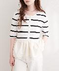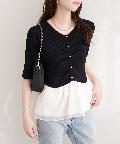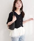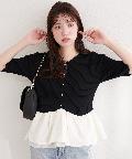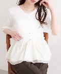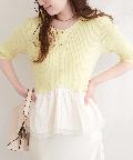 異素材ペプラム半袖ニット