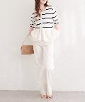 きれいめな着こなしには、フレアスカートやテーパードパンツと合わせて、オフィススタイルにも。