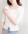 フロントの釦は、シンプルになりがちなニットにアクセントをプラス。
