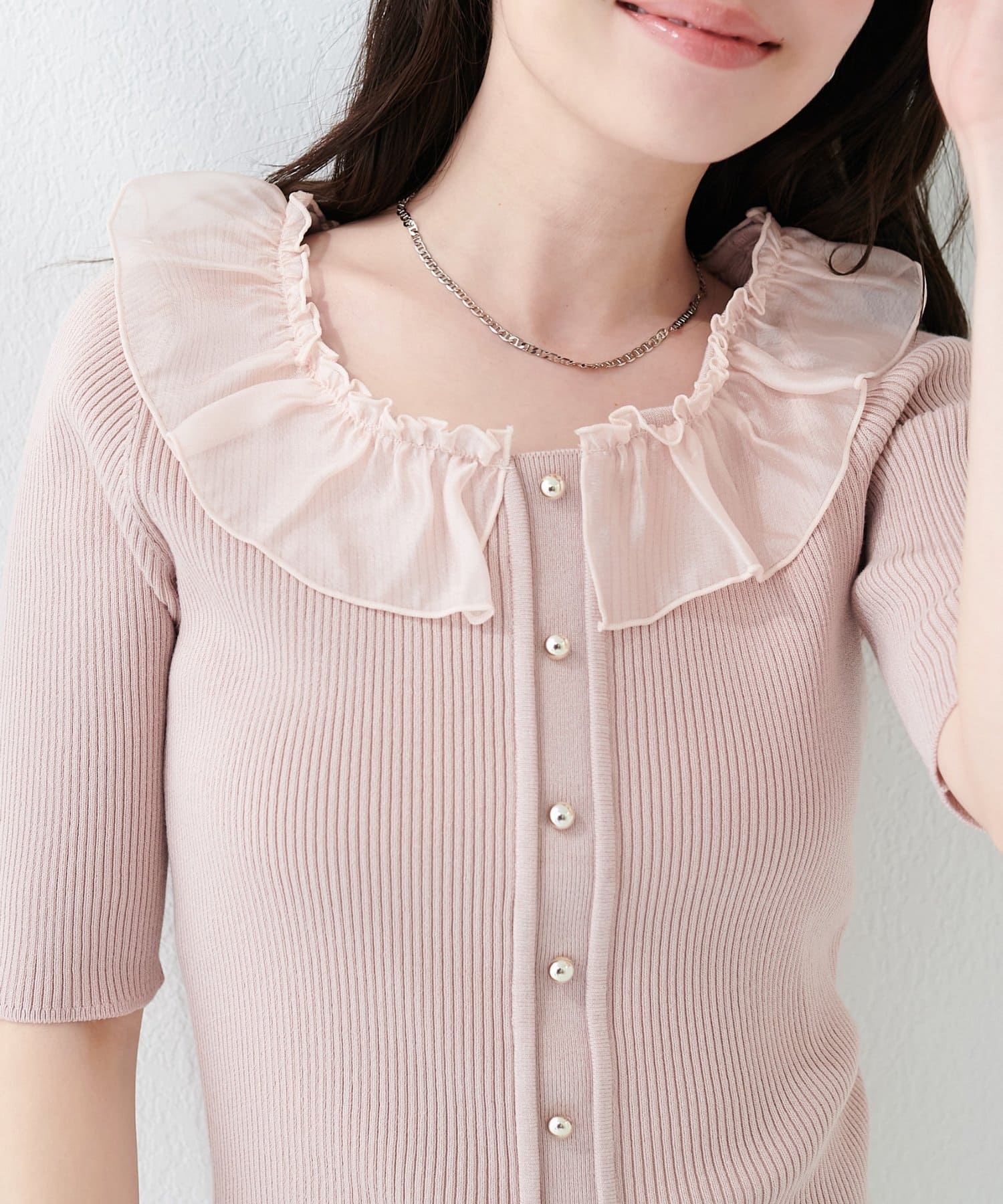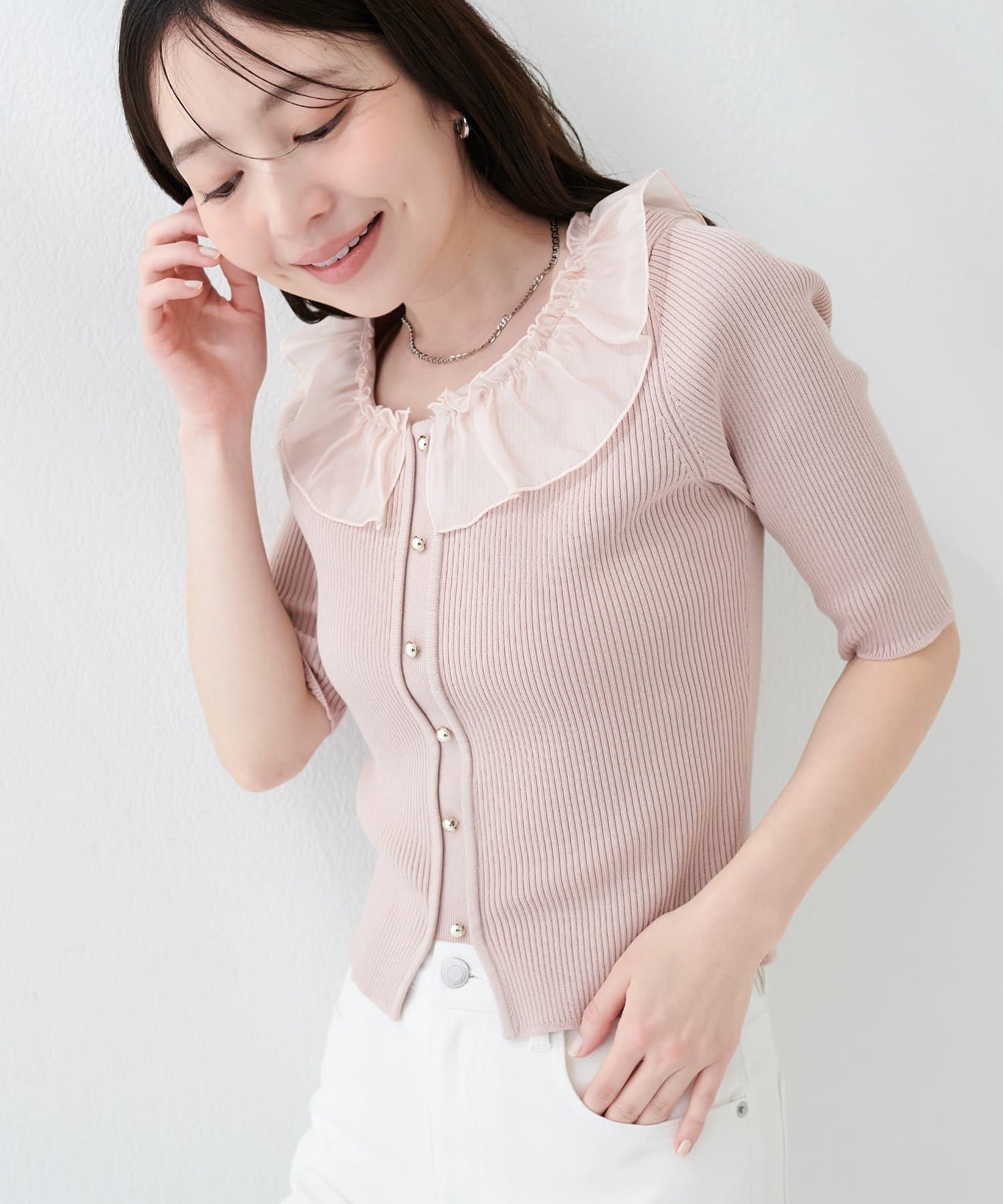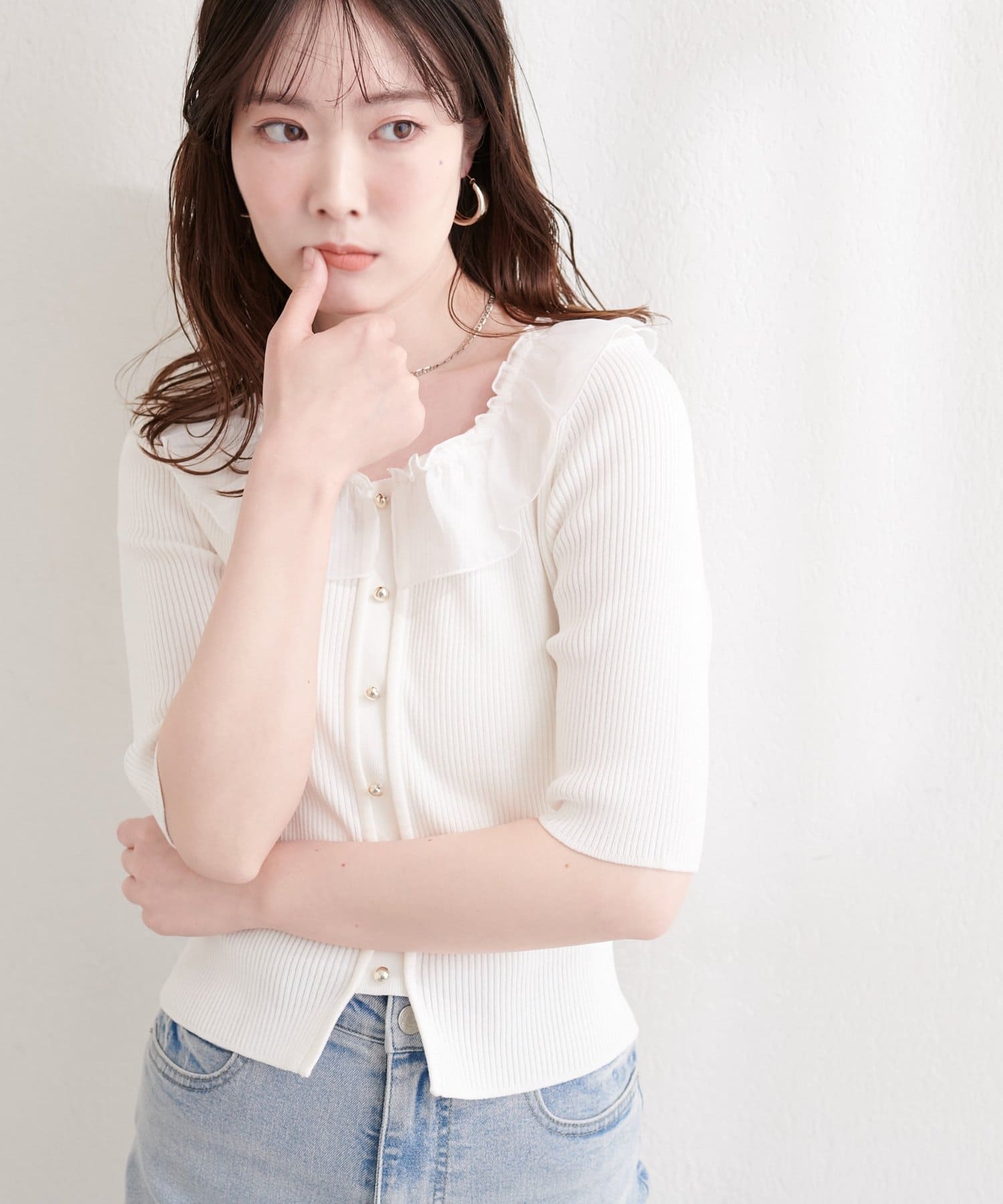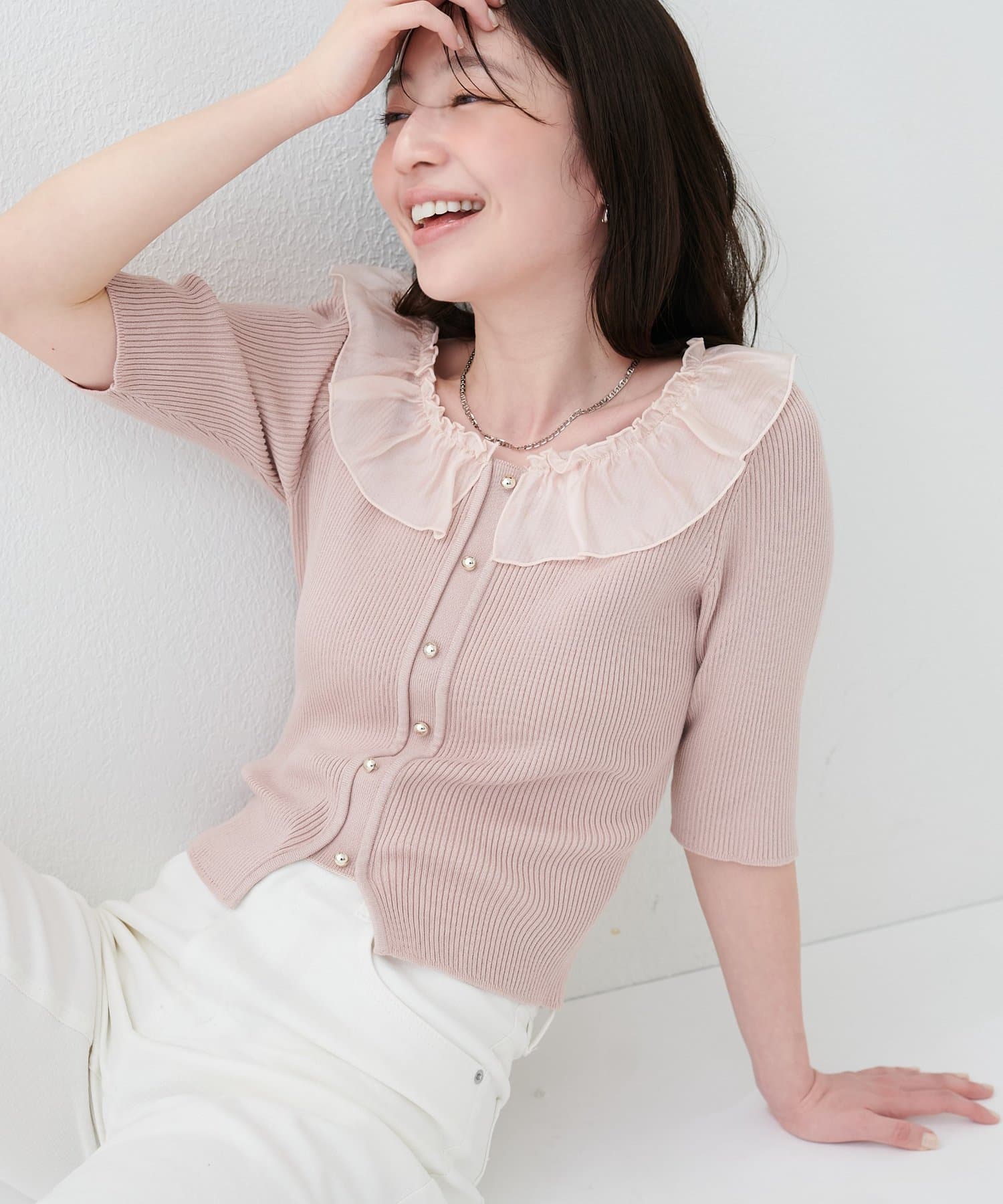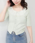 大人気の異素材フリルニットから春夏も着れる、半袖バージョンが登場。
