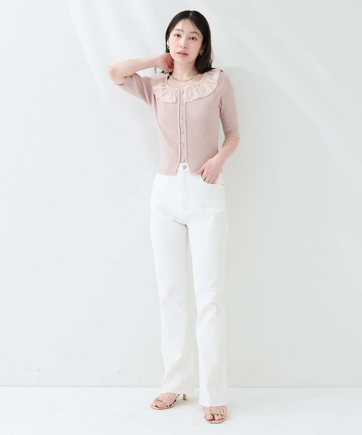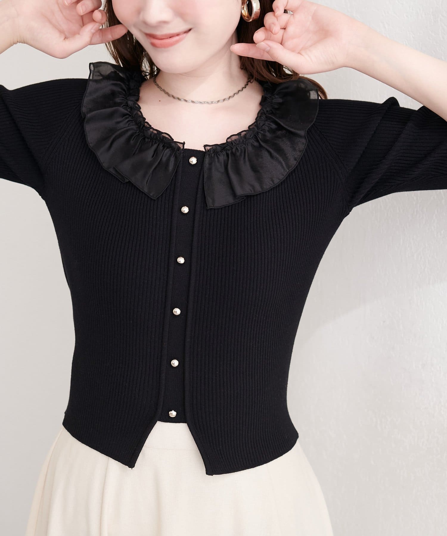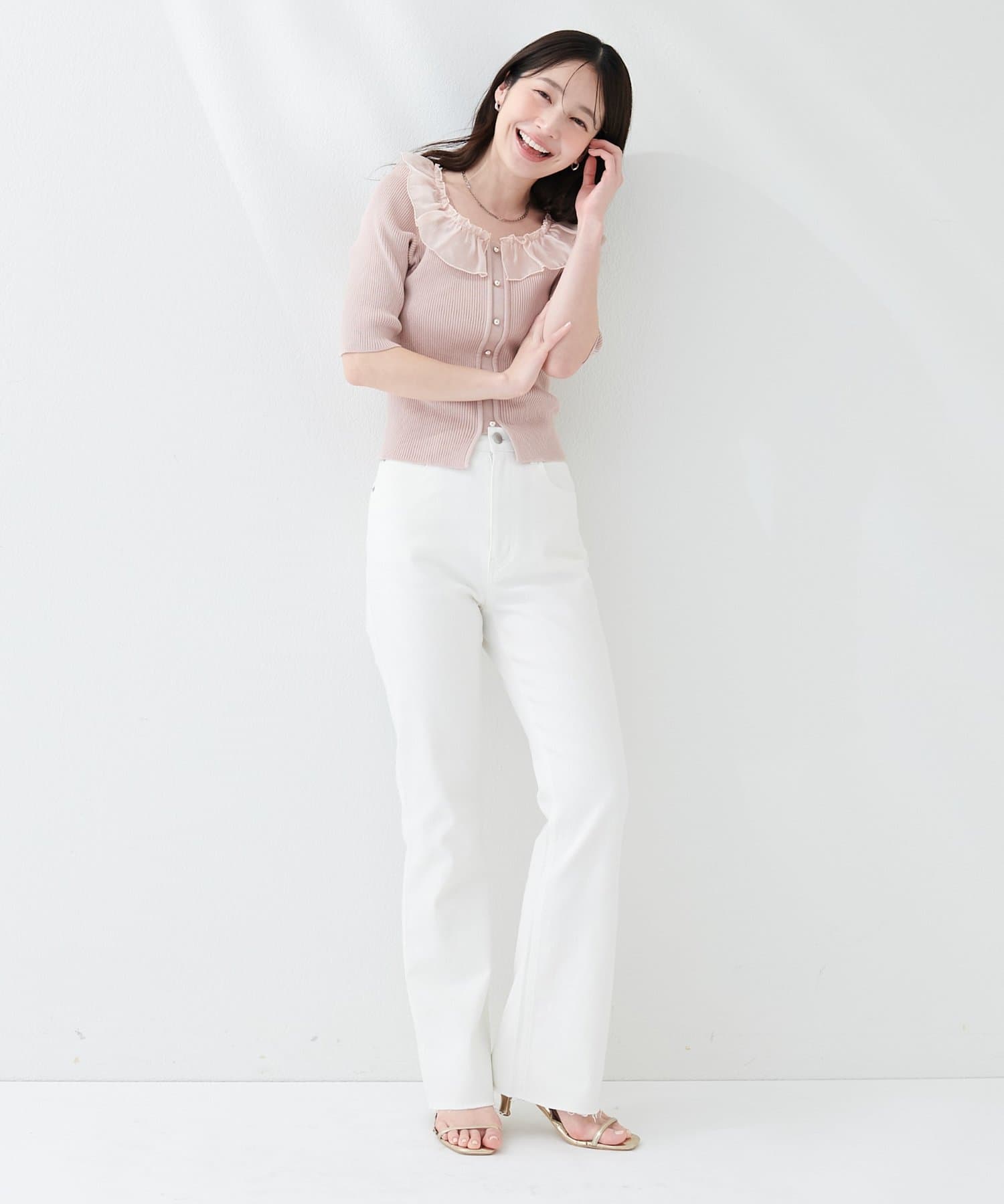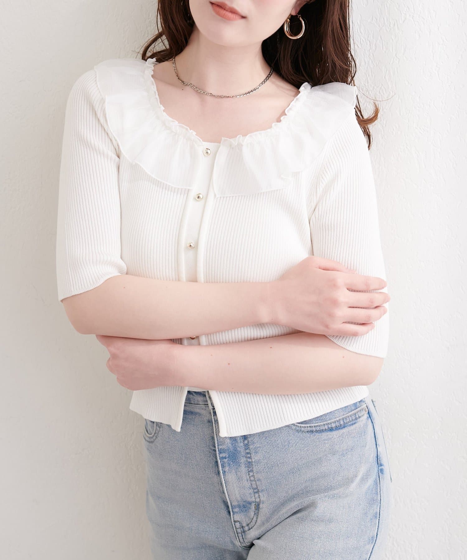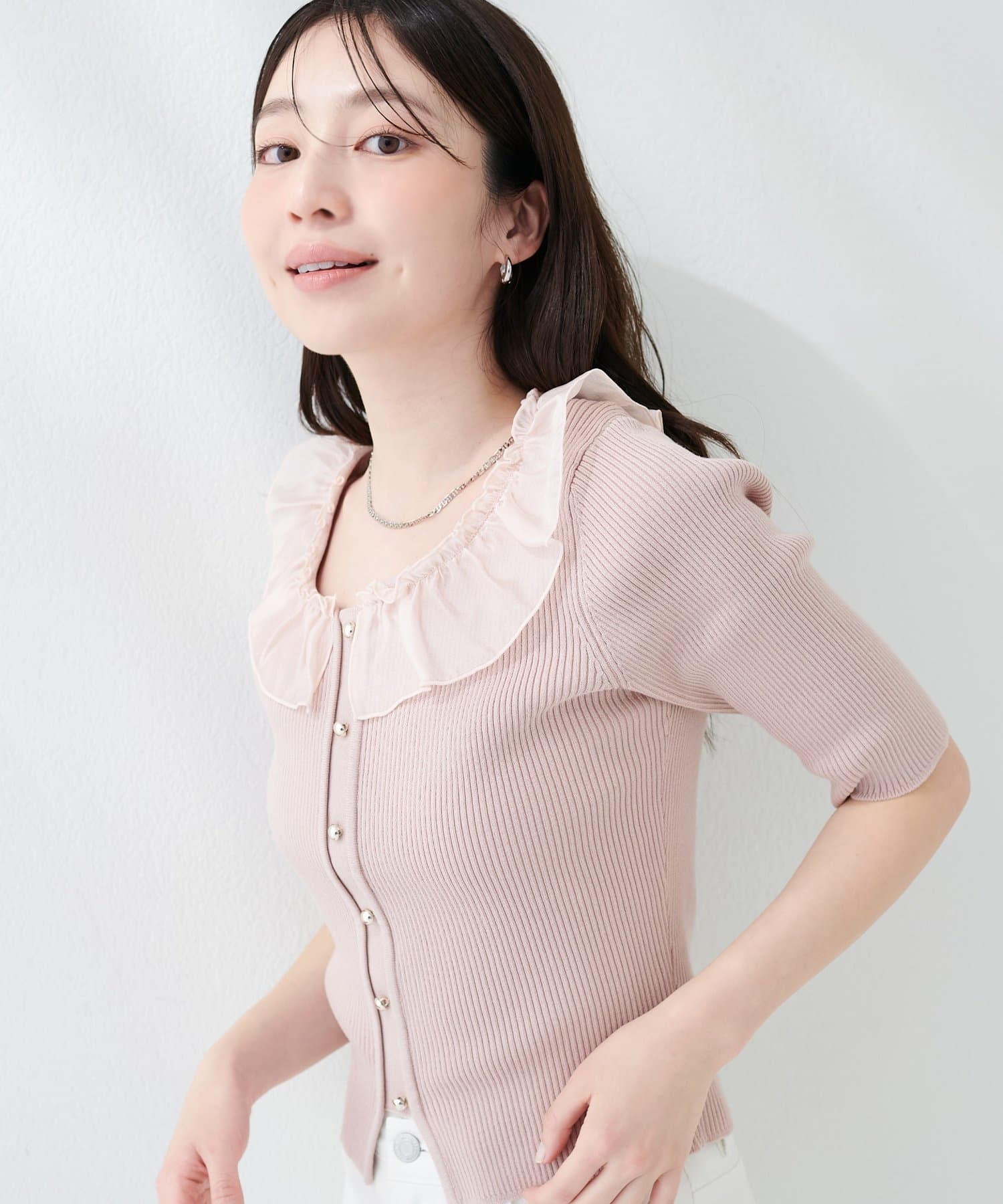 大人気の異素材フリルニットから春夏も着れる、半袖バージョンが登場。