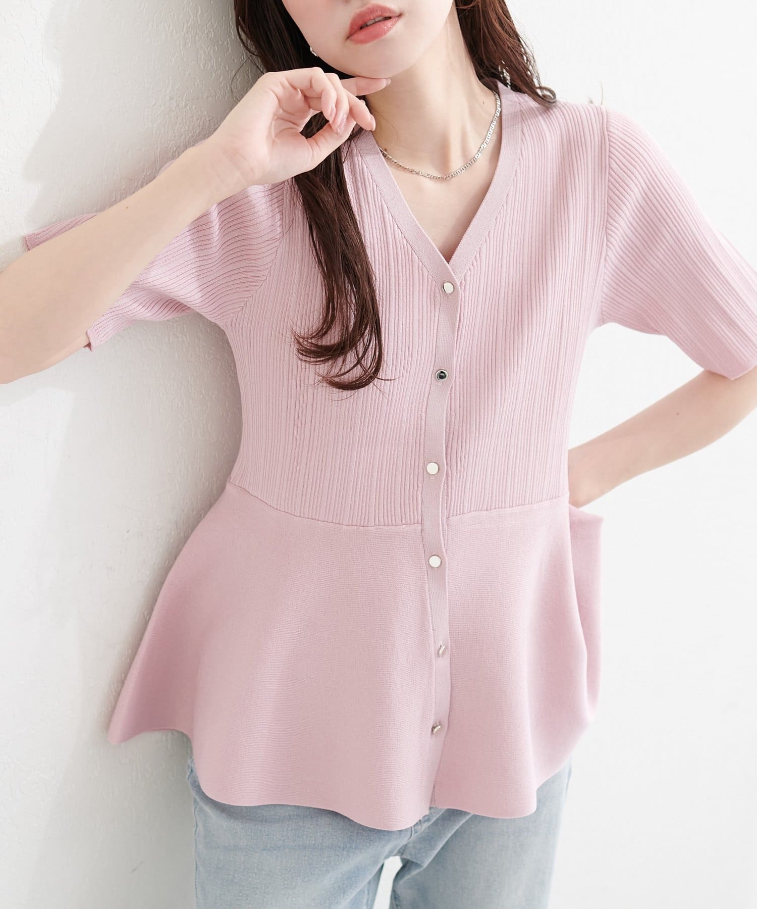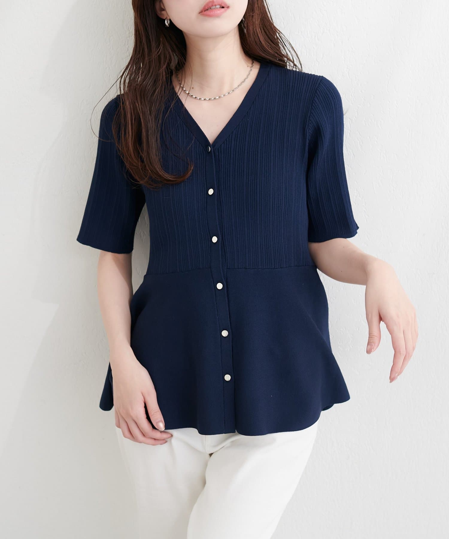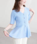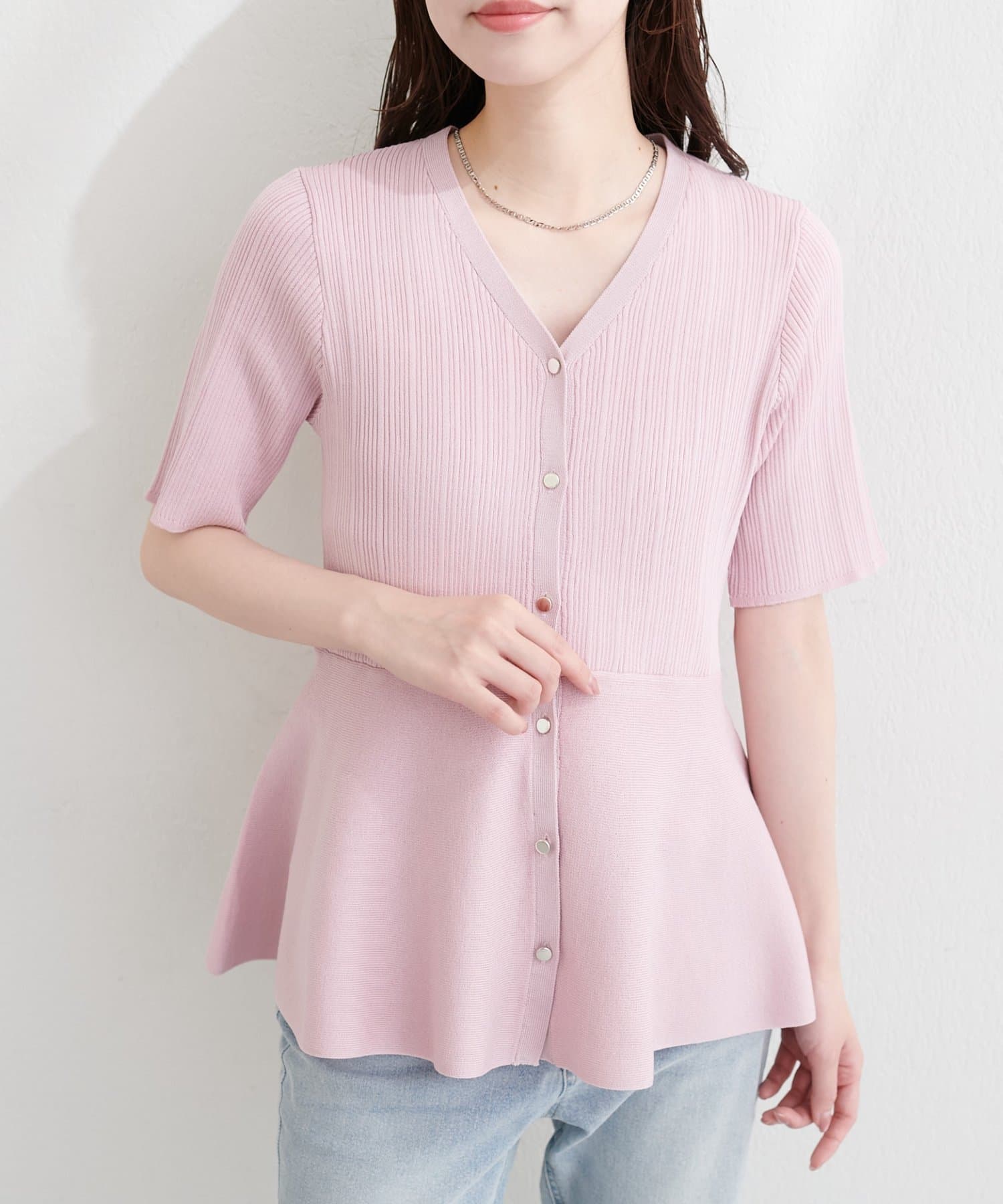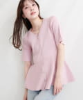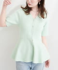 ランダムリブ5分袖ペプラムニットカーディガン