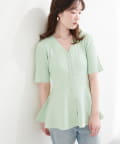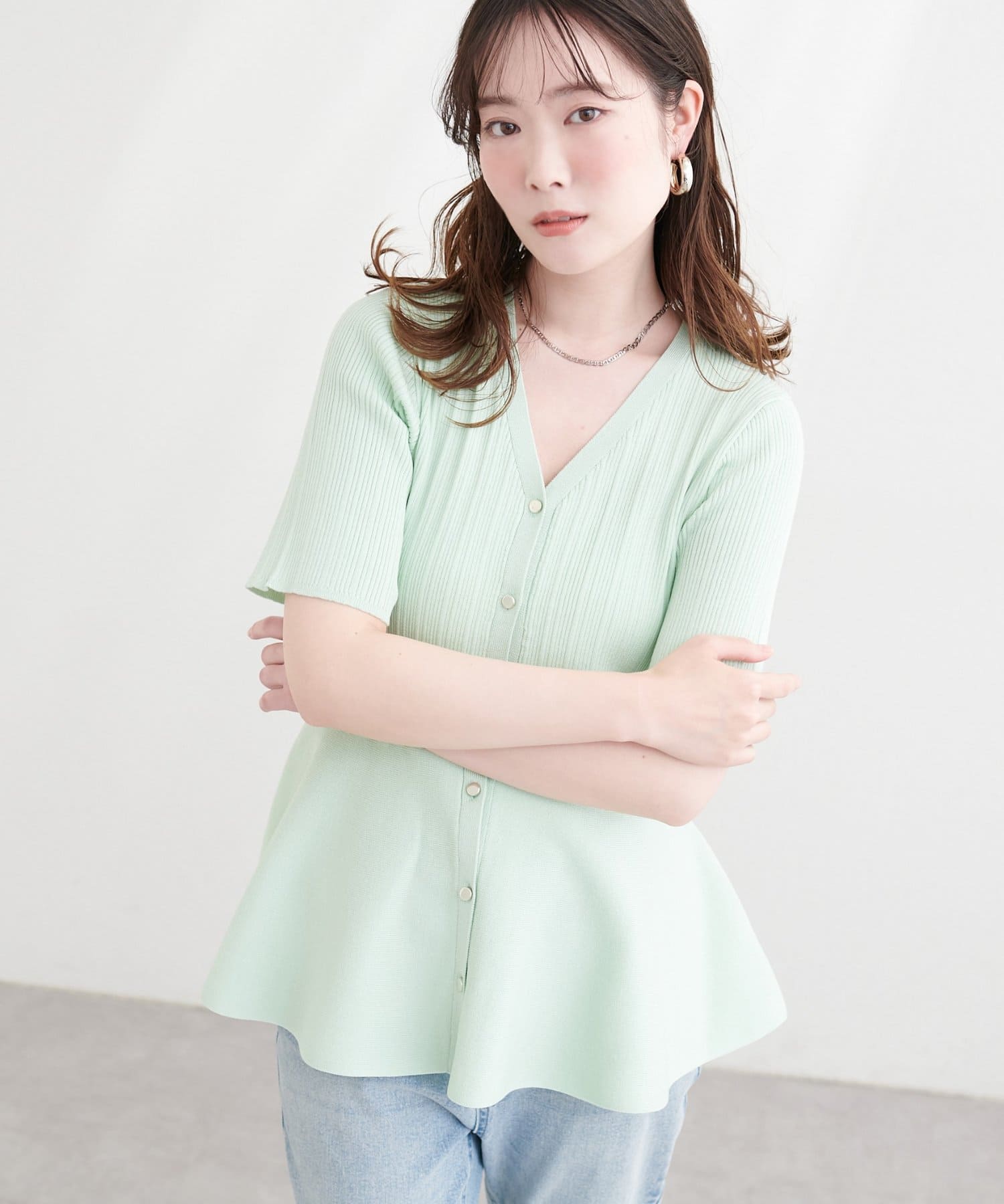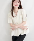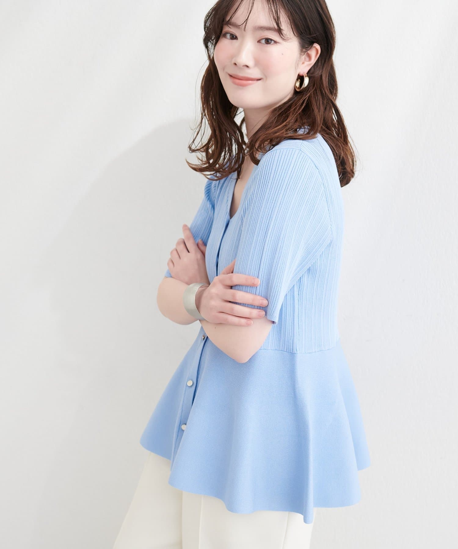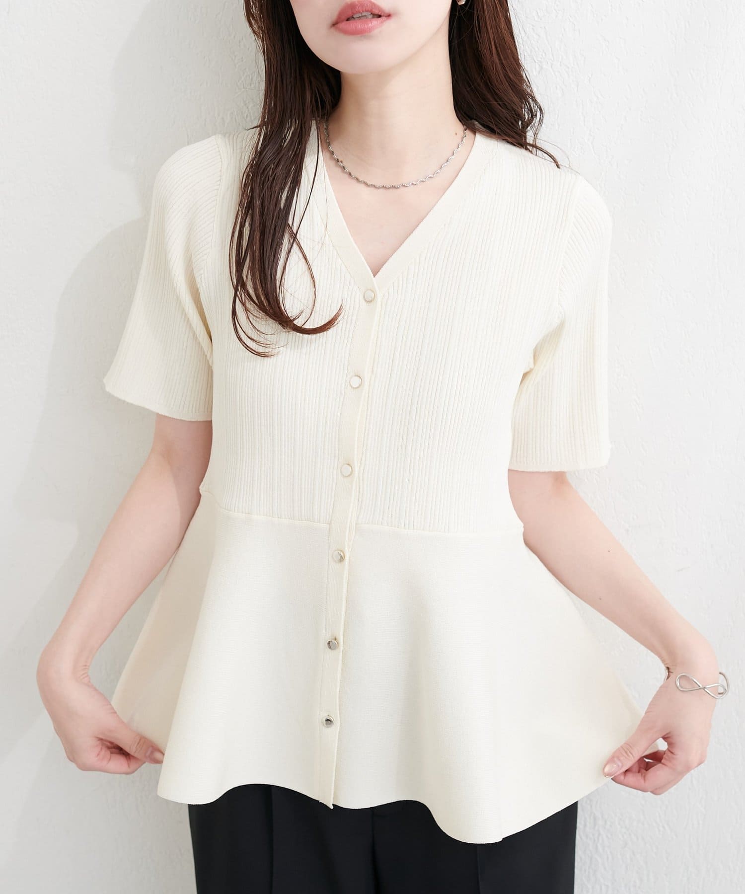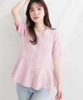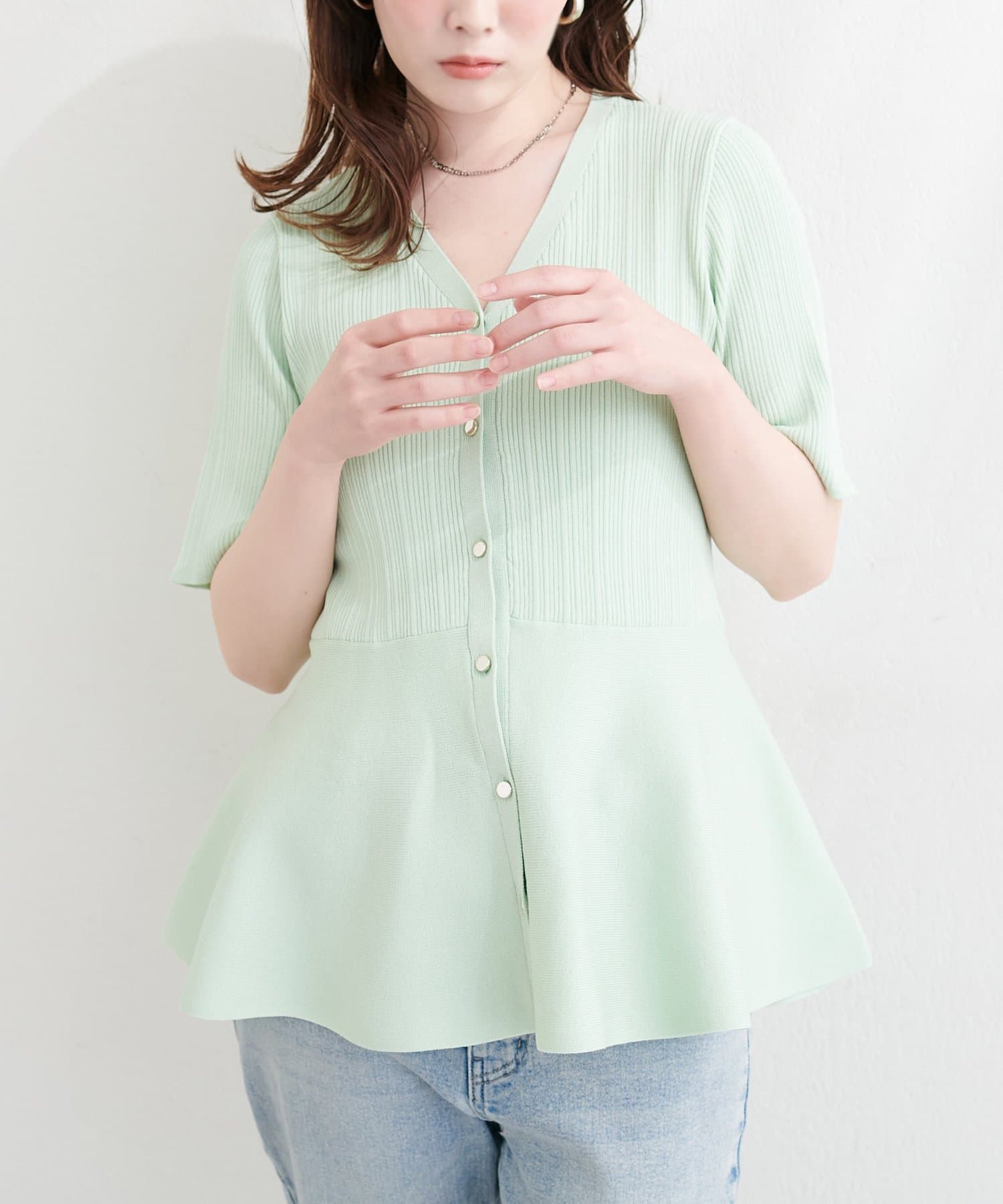 ランダムリブ5分袖ペプラムニットカーディガン