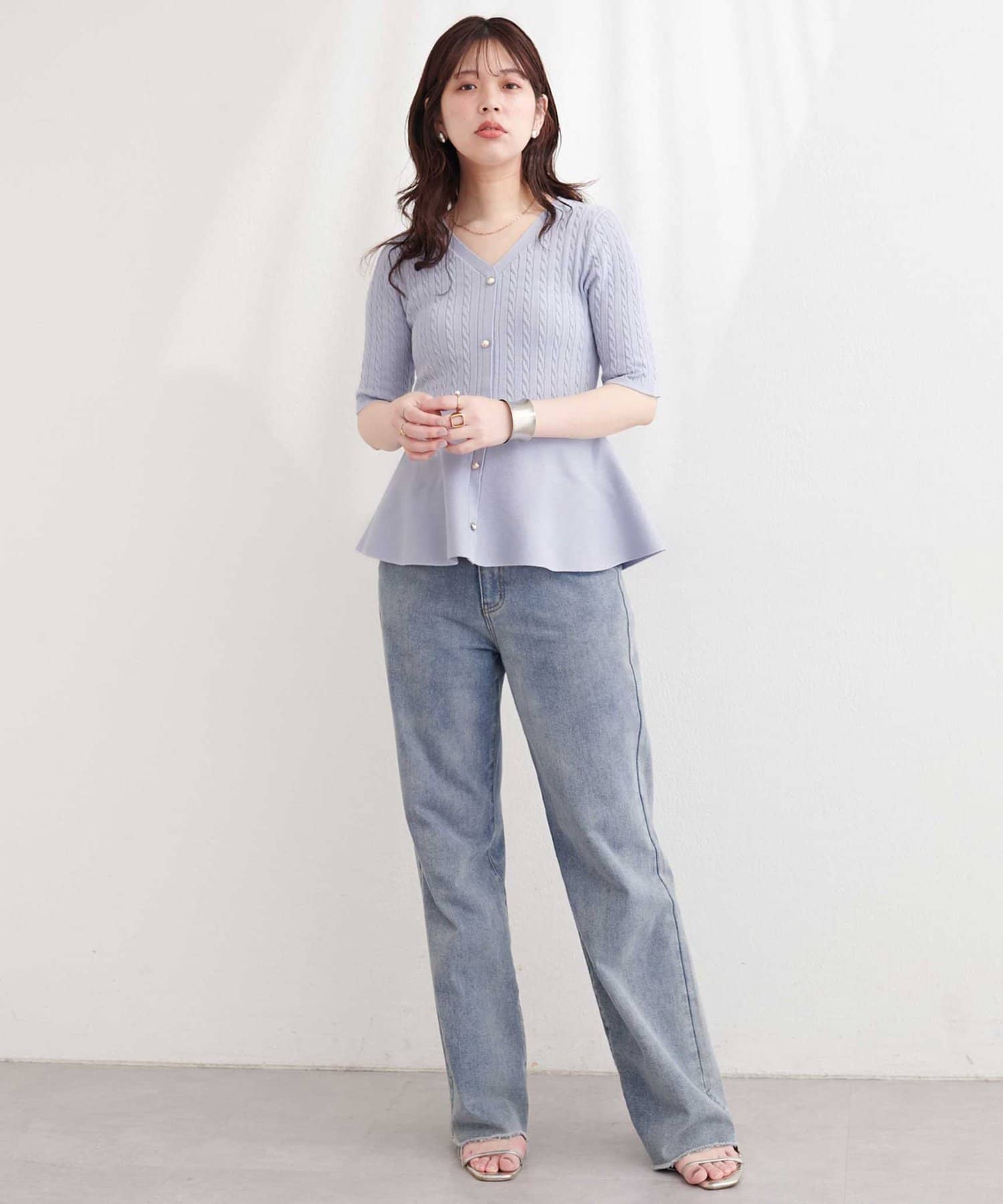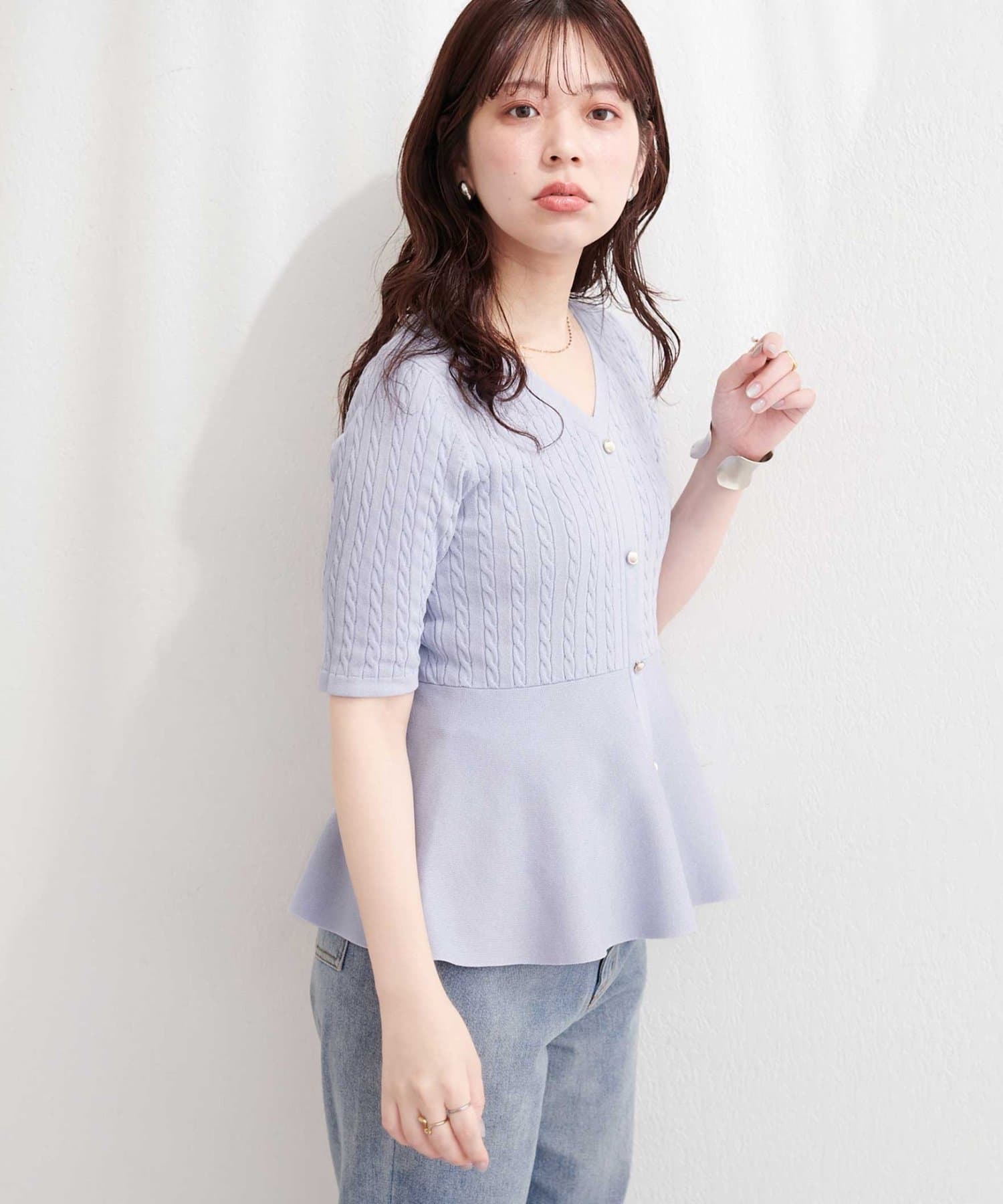 • natural couture(ナチュラルクチュール) ケーブル編みペプラムニット