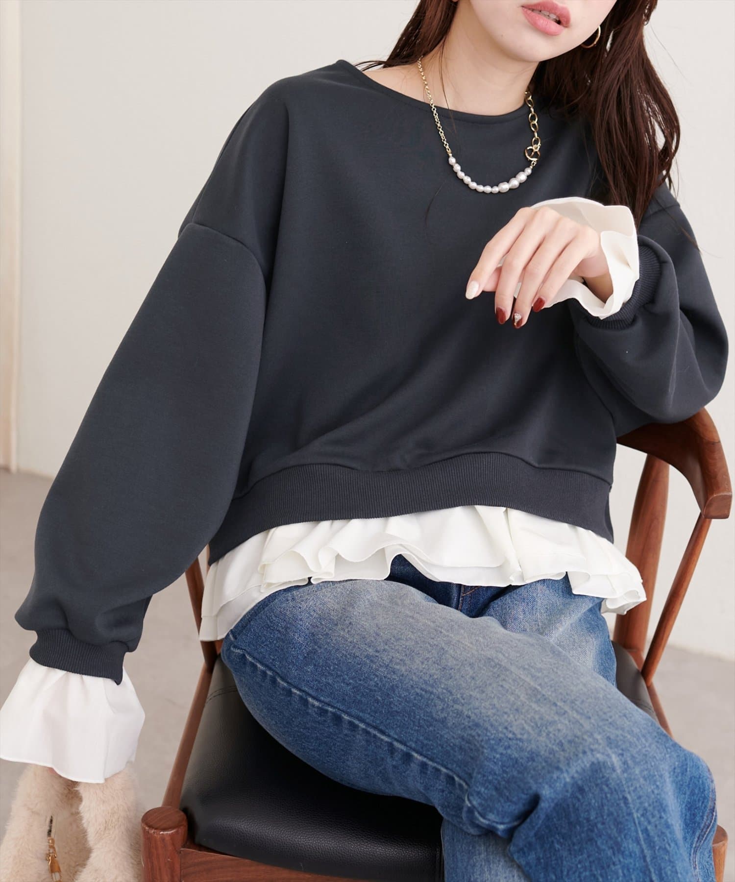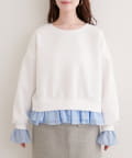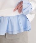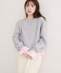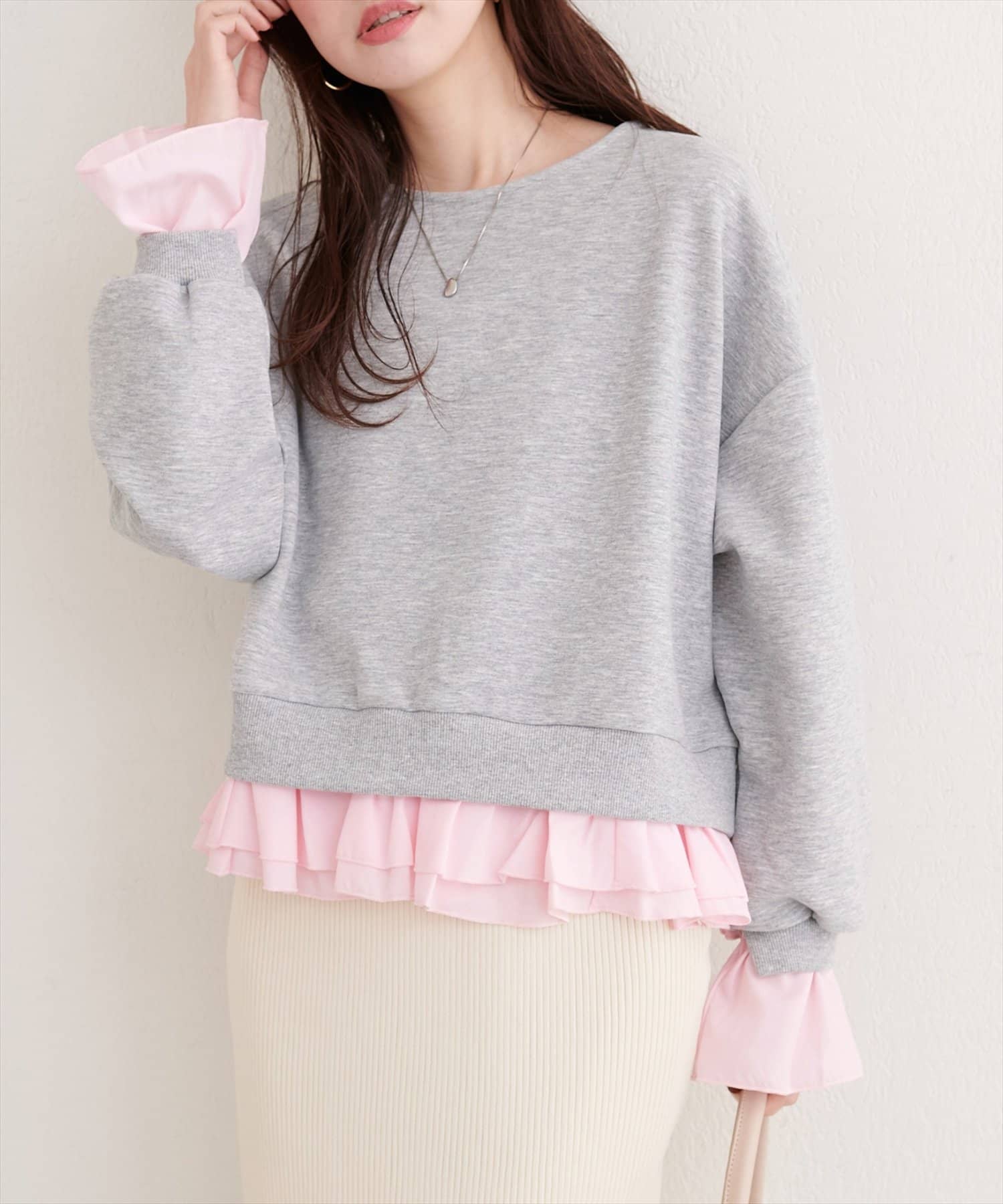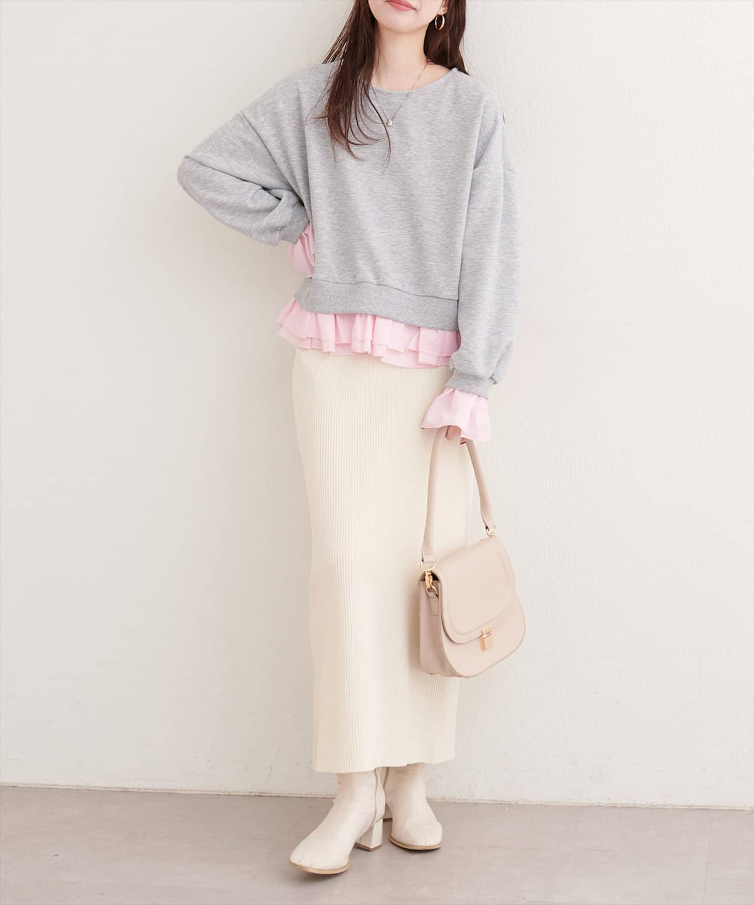フリルの甘さと、プルオーバーの持つカジュアルさのバランスが絶妙で、甘すぎない大人の可愛らしさを演出します。