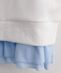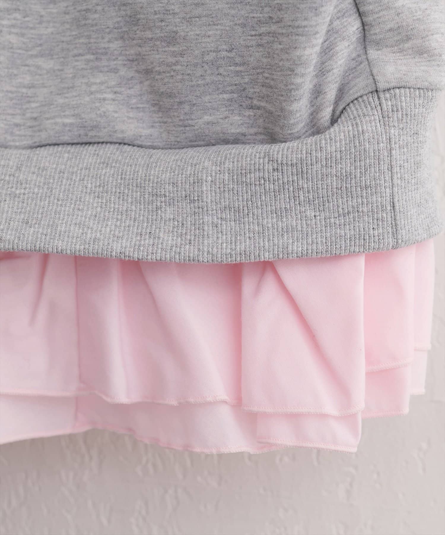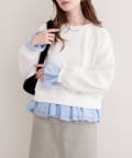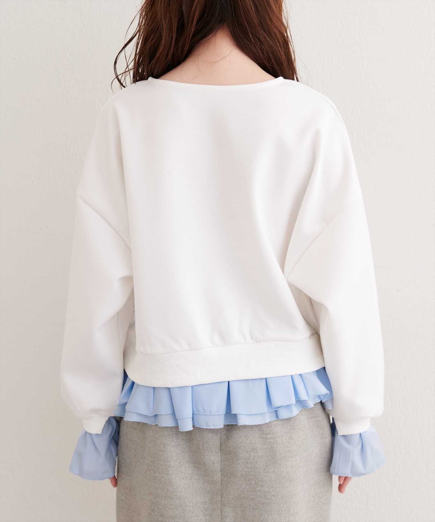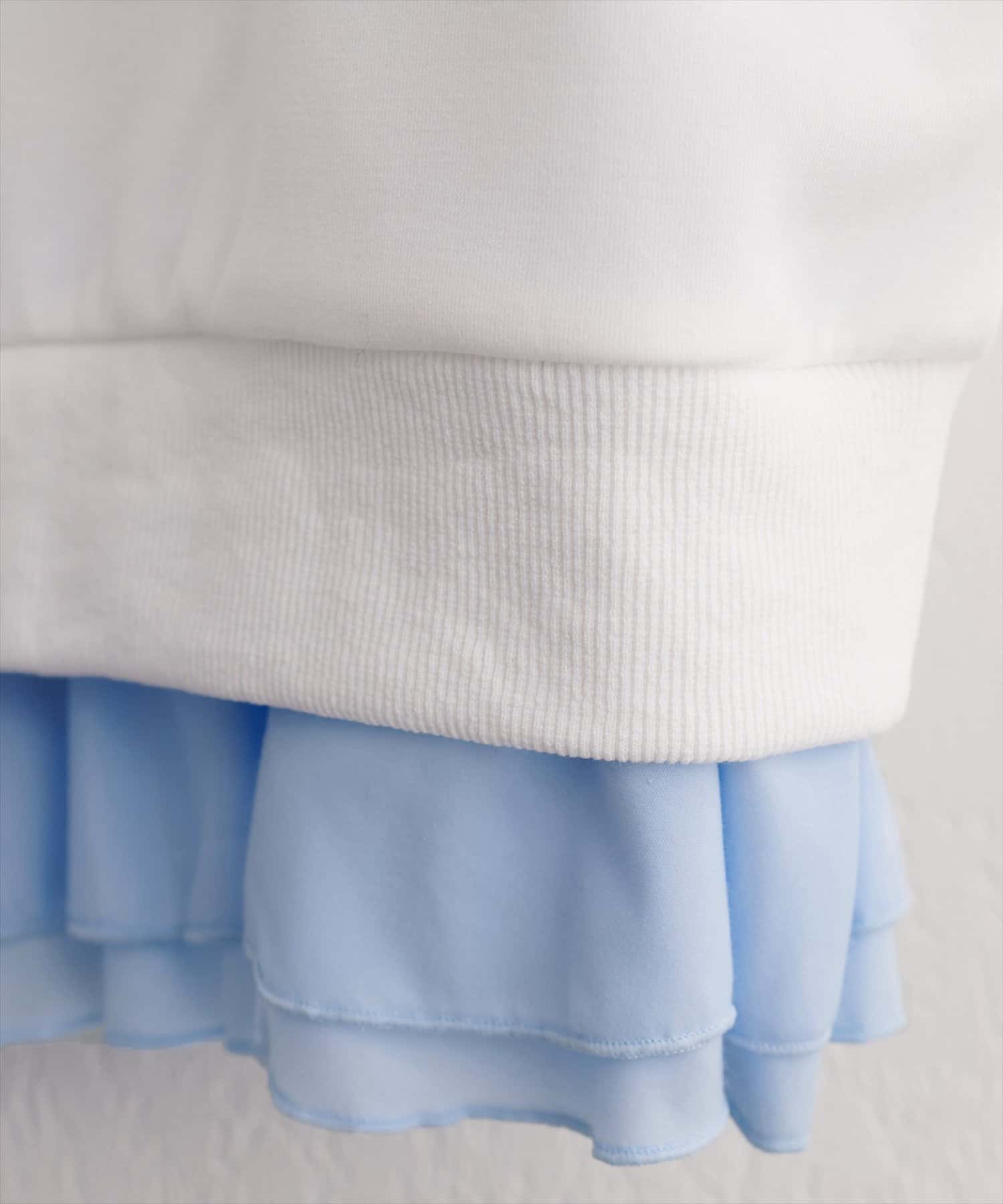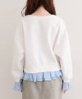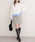 フリルの甘さと、プルオーバーの持つカジュアルさのバランスが絶妙で、甘すぎない大人の可愛らしさを演出します。