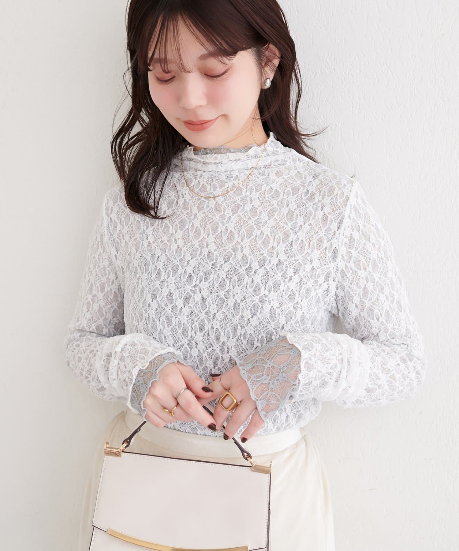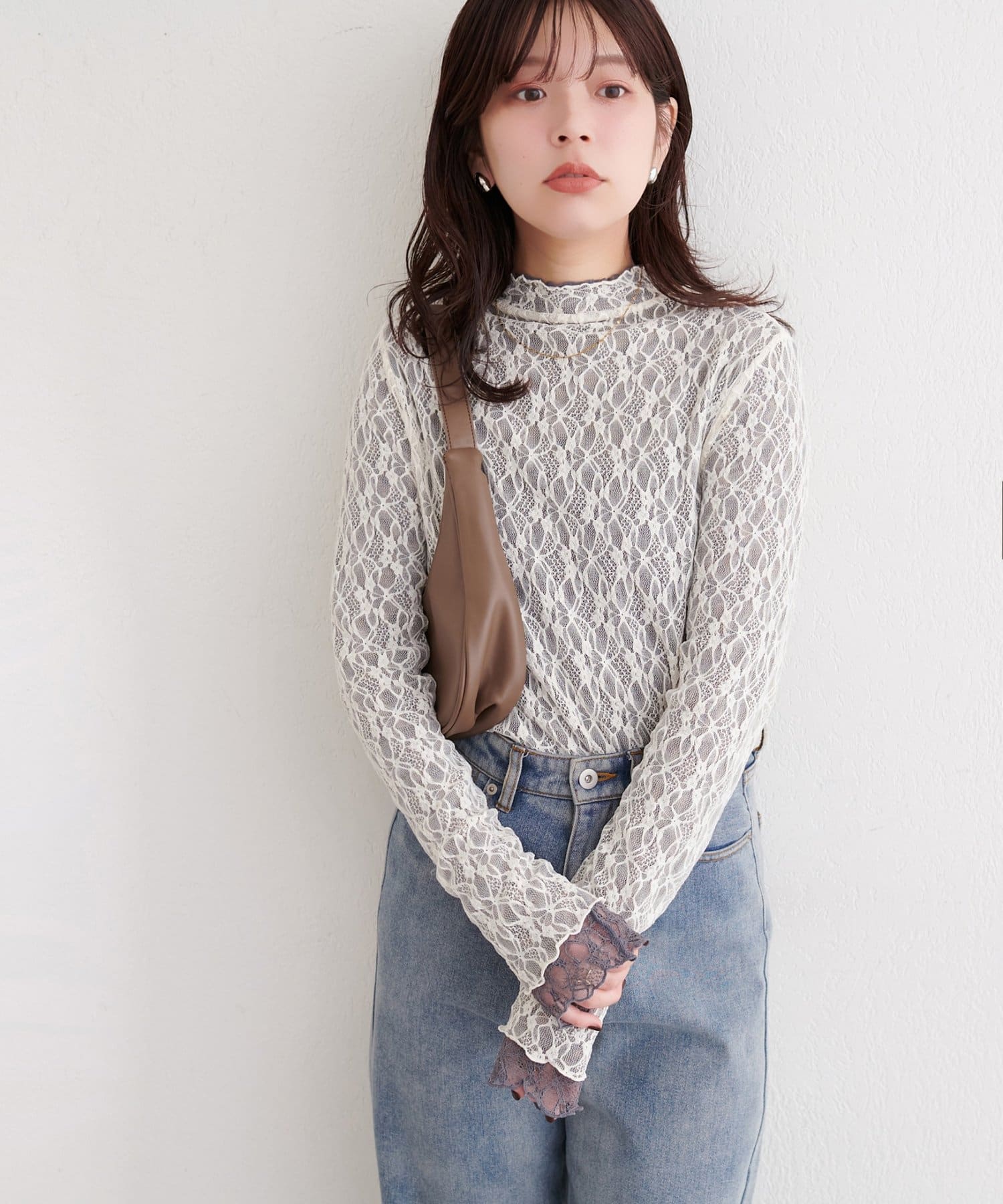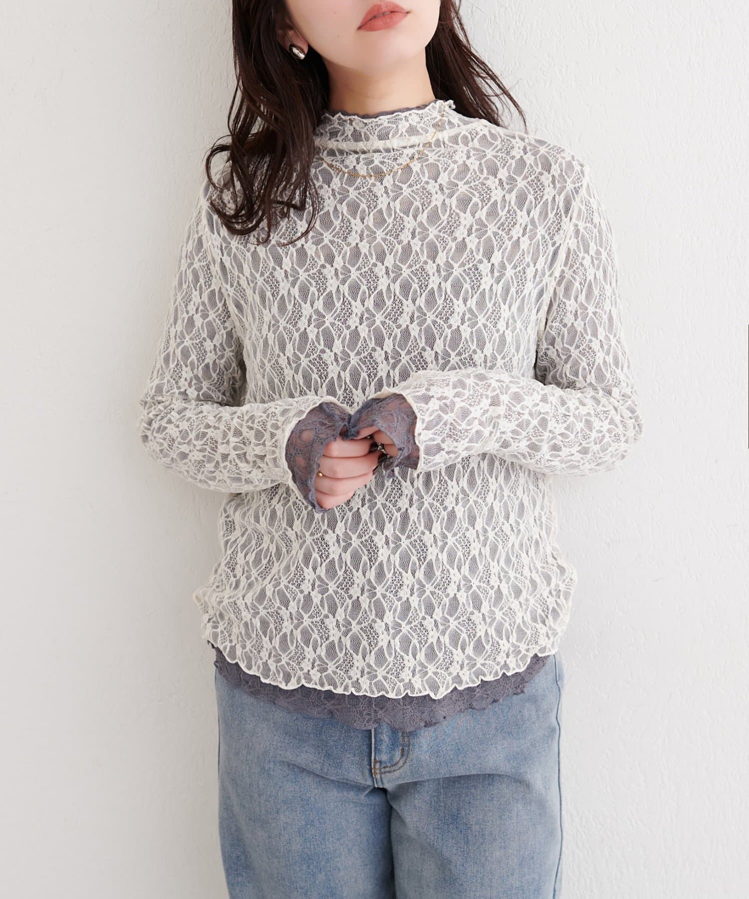 タートルネックなので、首元からレースを覗かせたり、袖口からフリルを見せたりと、様々なレイヤードスタイルを楽しめます。