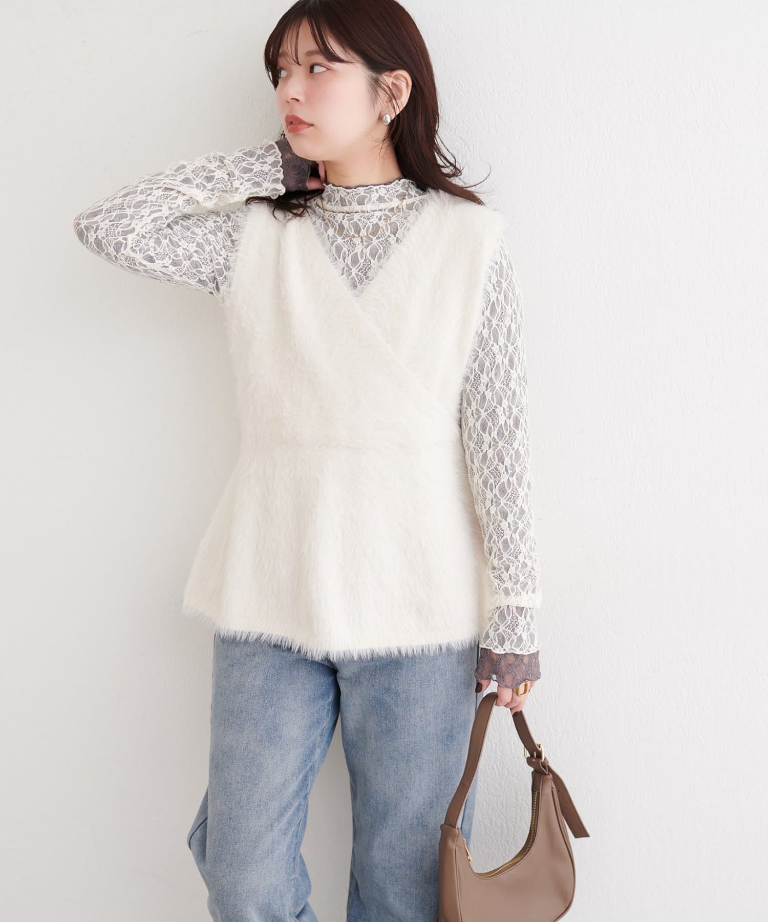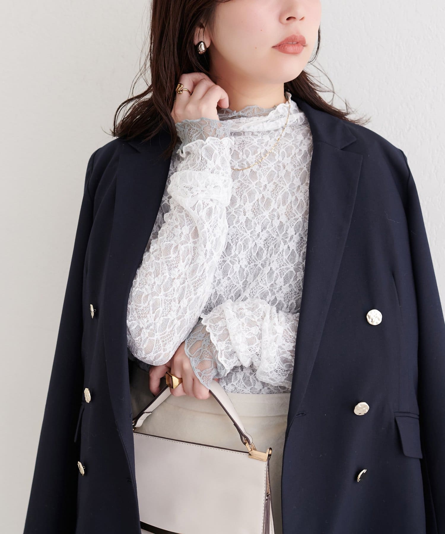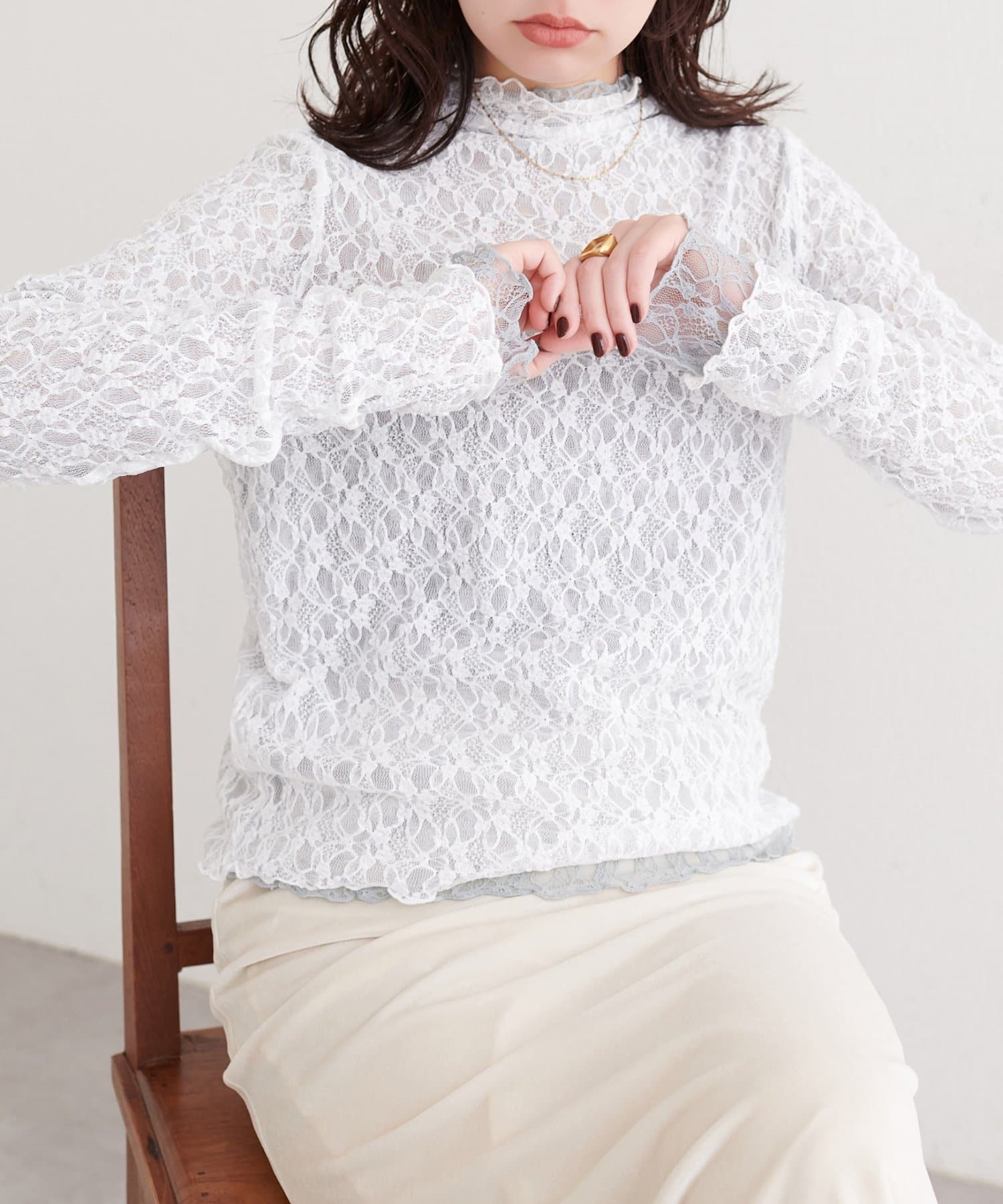 タートルネックなので、首元からレースを覗かせたり、袖口からフリルを見せたりと、様々なレイヤードスタイルを楽しめます。