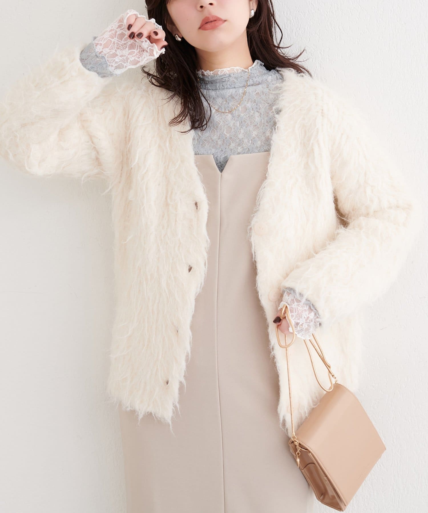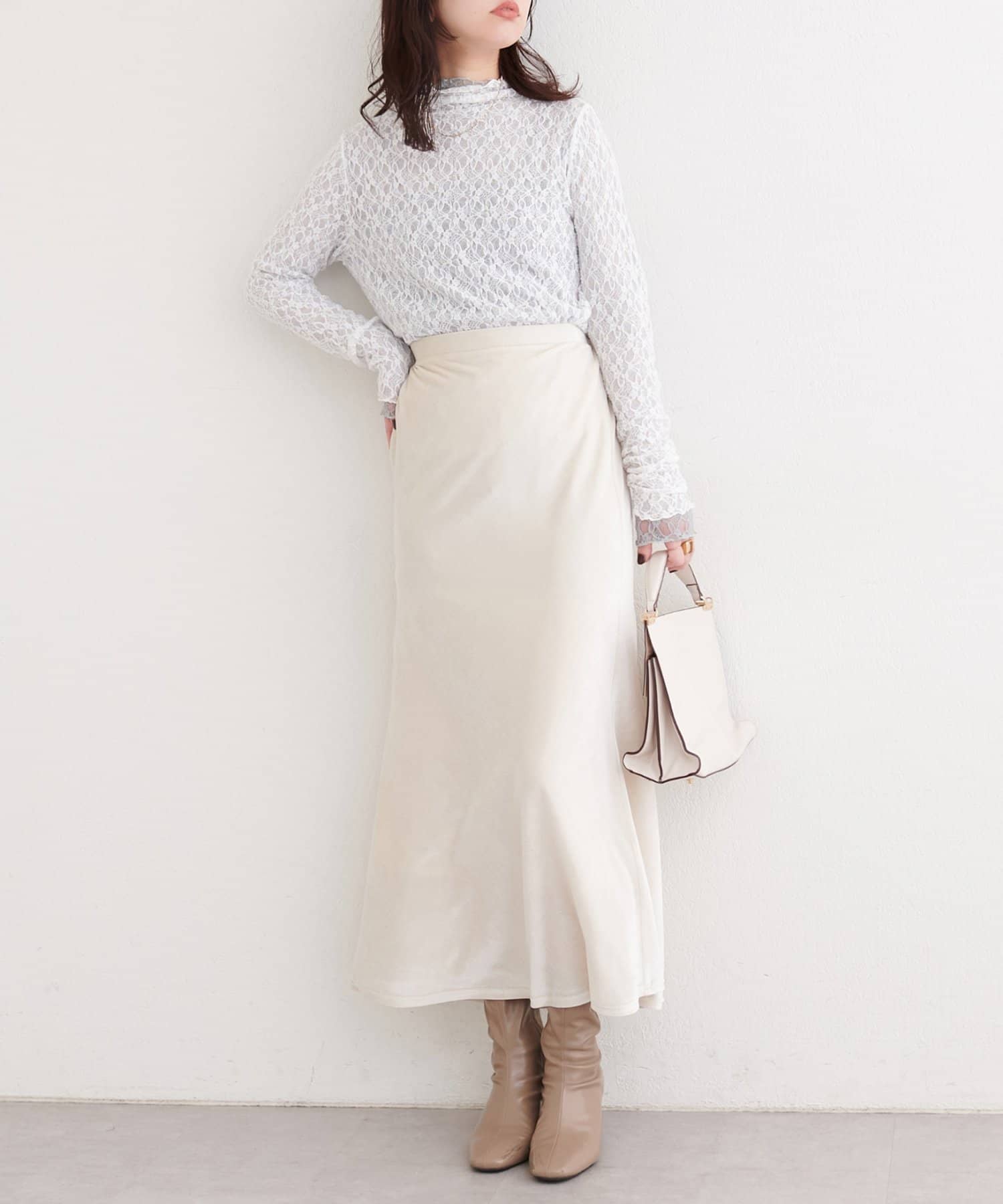 スカートやワンピースと合わせれば、ドレッシーでフェミニンな印象に。