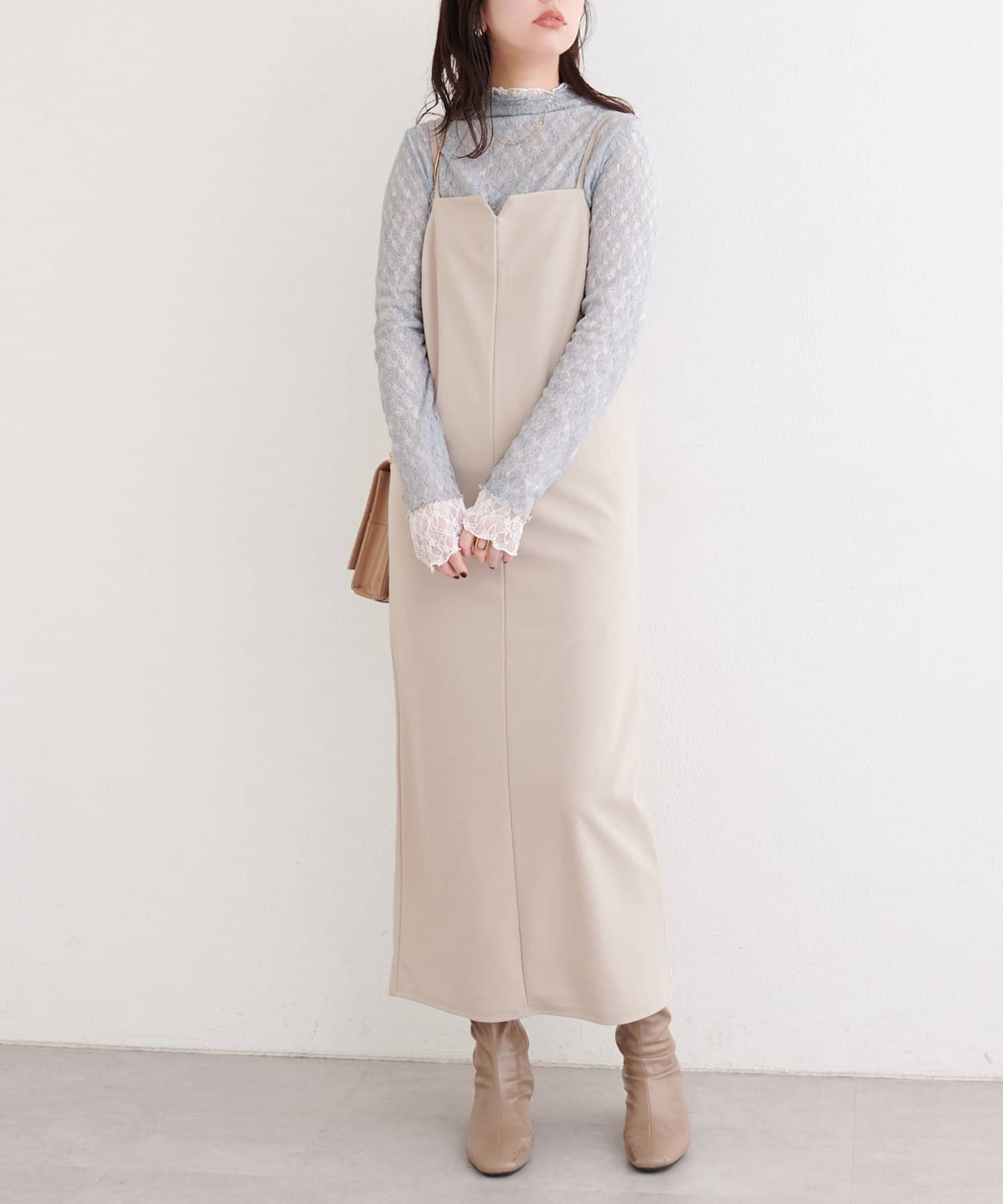 インナーを仕込んで1枚で着るのはもちろん、ニットやスウェット、ワンピースとのレイヤードもおすすめです。