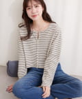 カーディガンとして羽織れば、カジュアルな印象になります。短めの丈感は、スタイルアップ効果も期待できます。