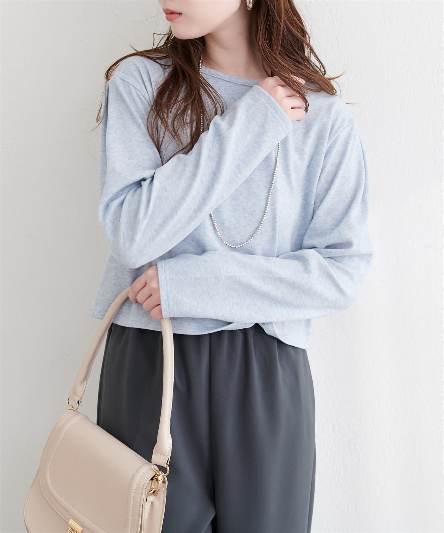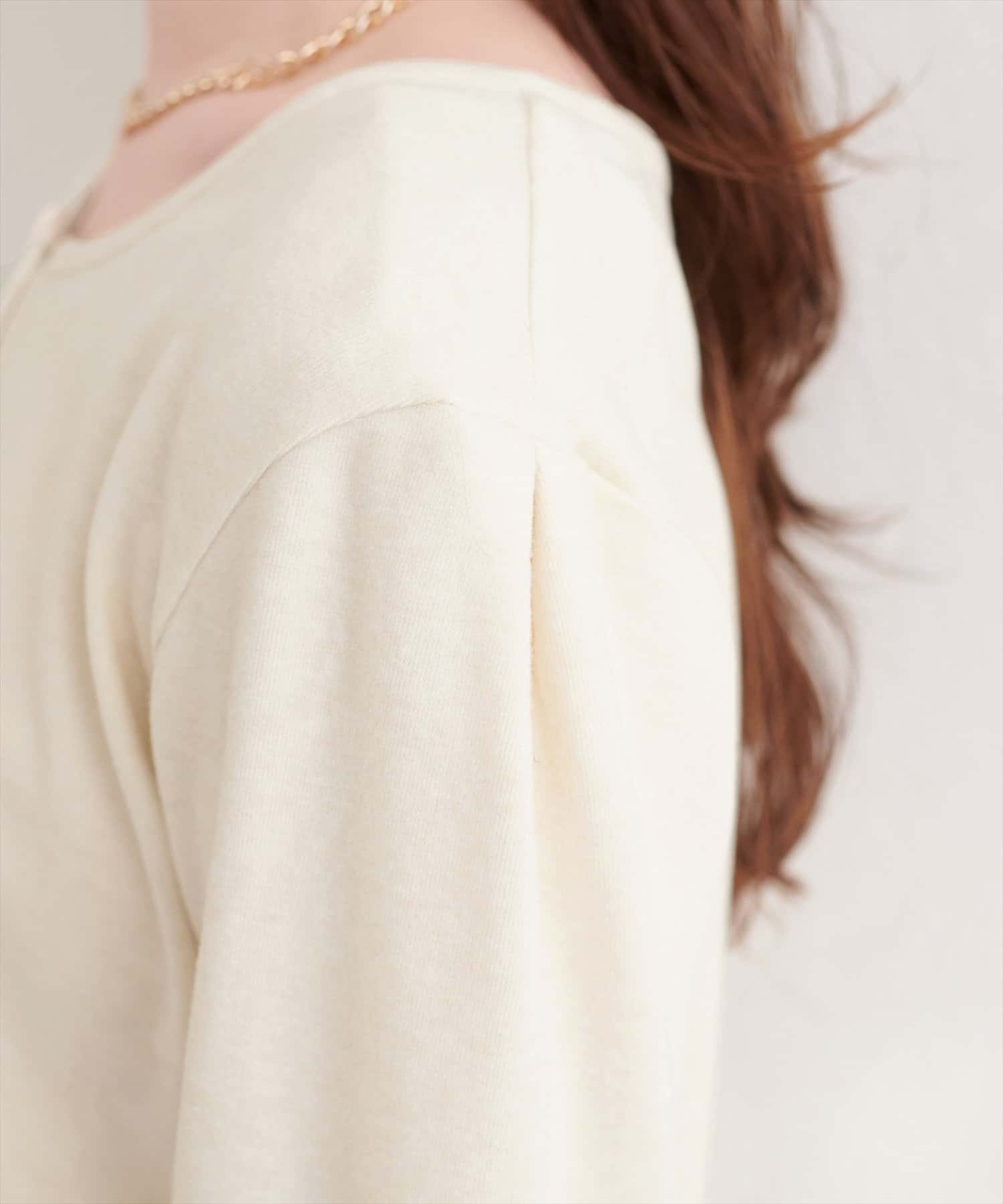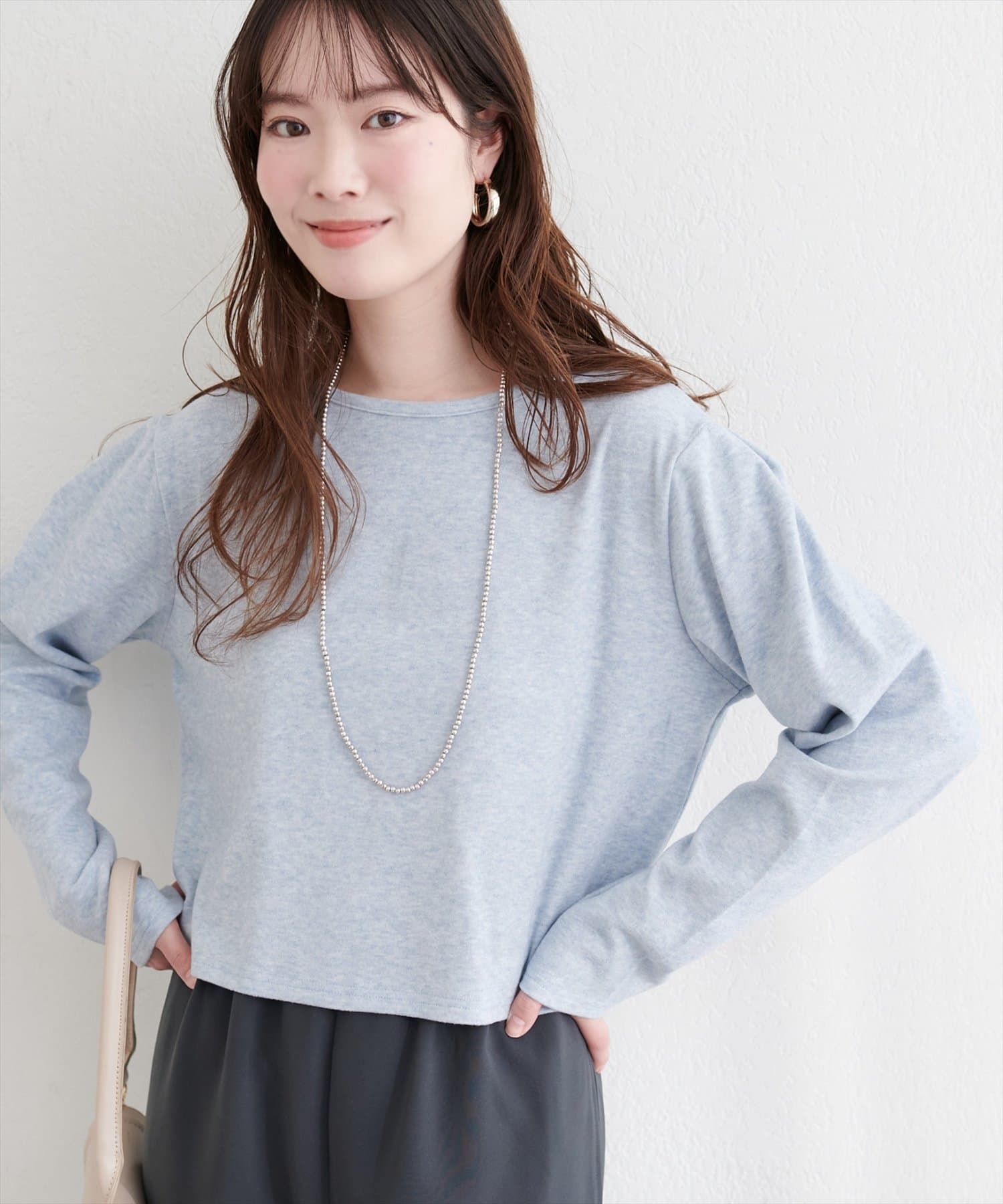 綿毛のような触り心地で、着ていてつい触れたくなる素材感。