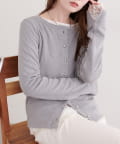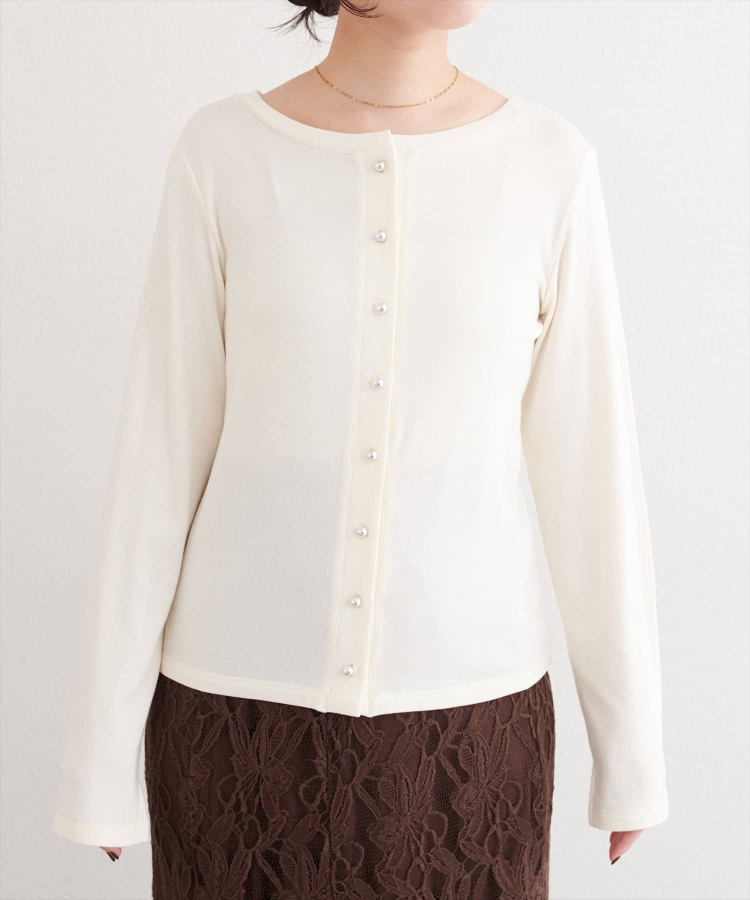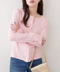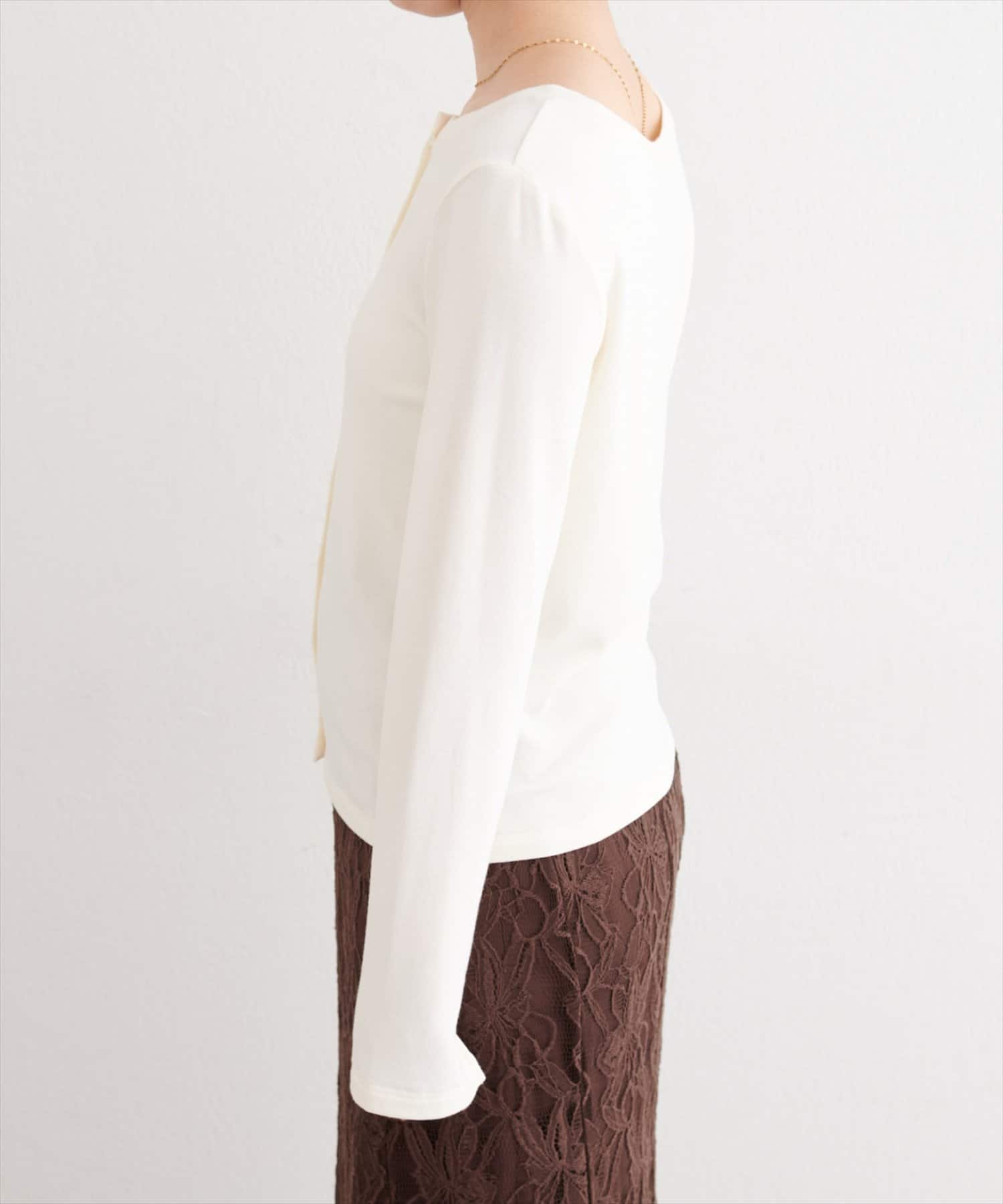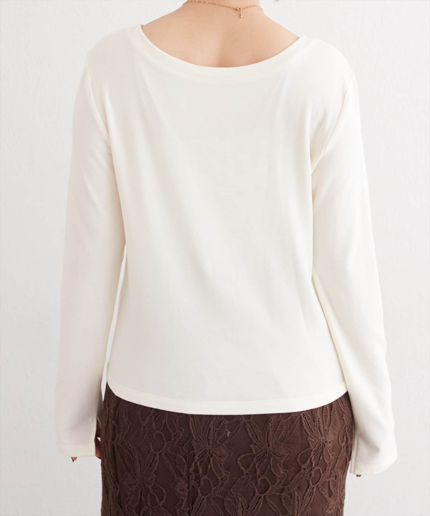 程よく開いたネックラインは、デコルテをすっきりと見せ、顔周りを明るく演出。