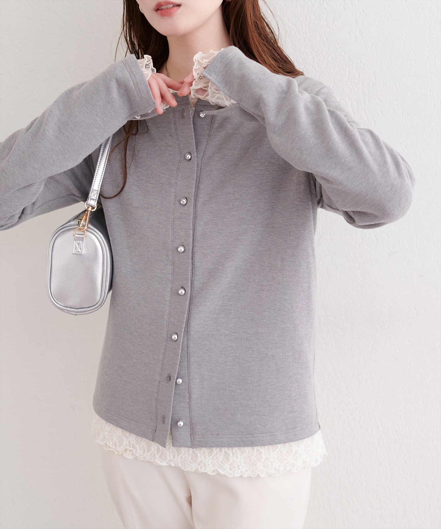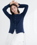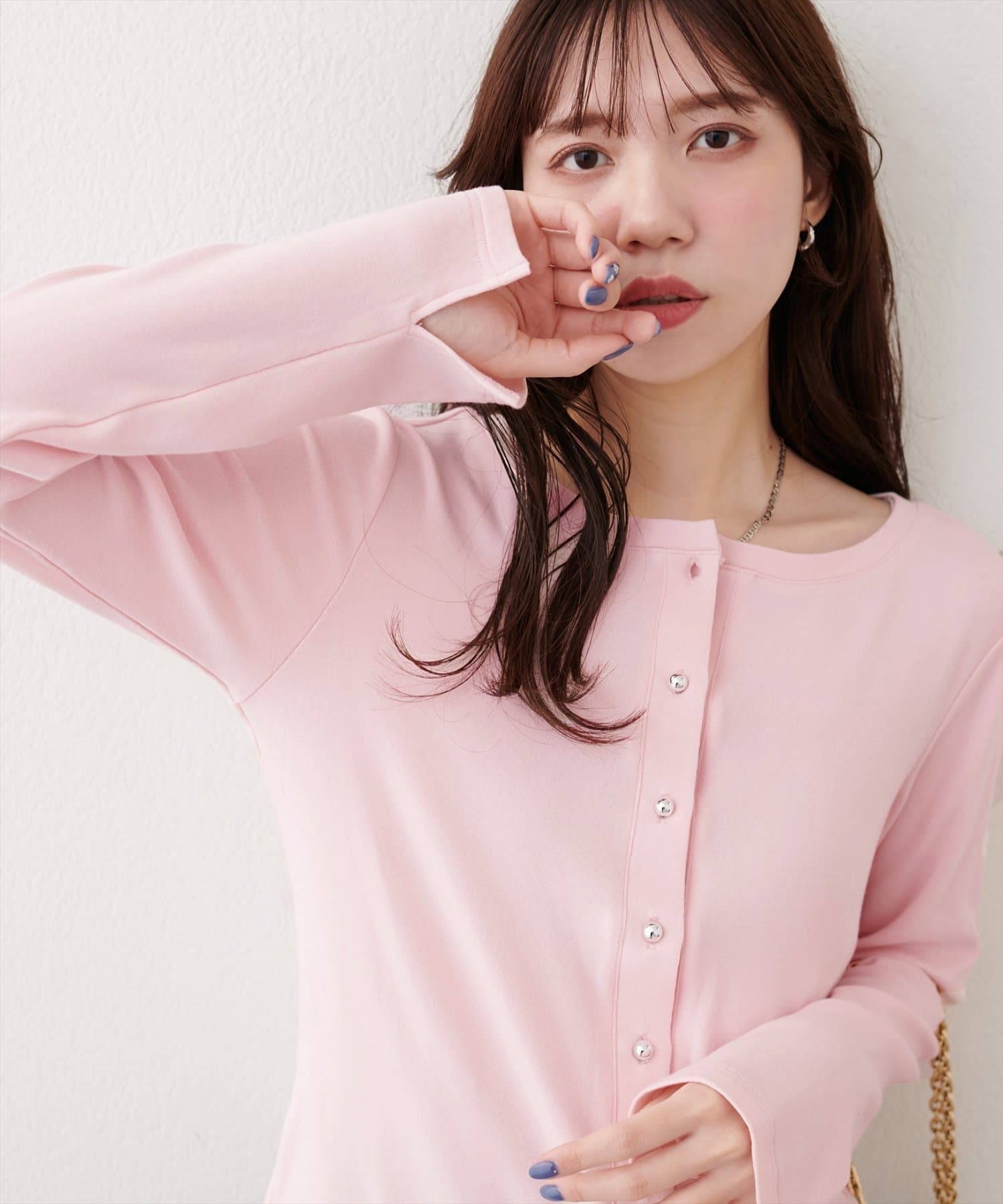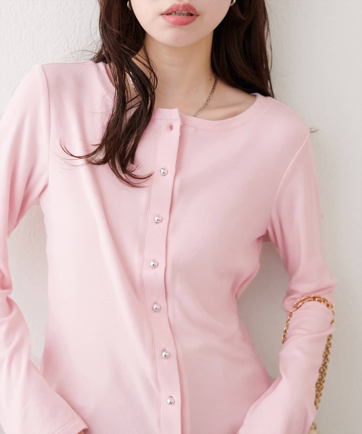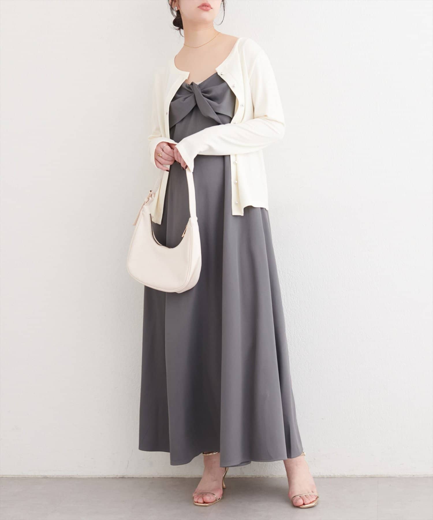 フロントに並んだシルバーボタンが、さりげないアクセントとなり、シンプルなデザインに華やかさを添えます。