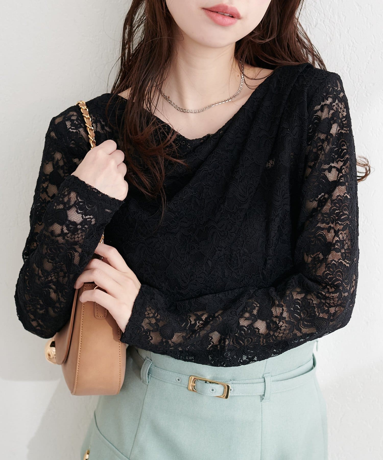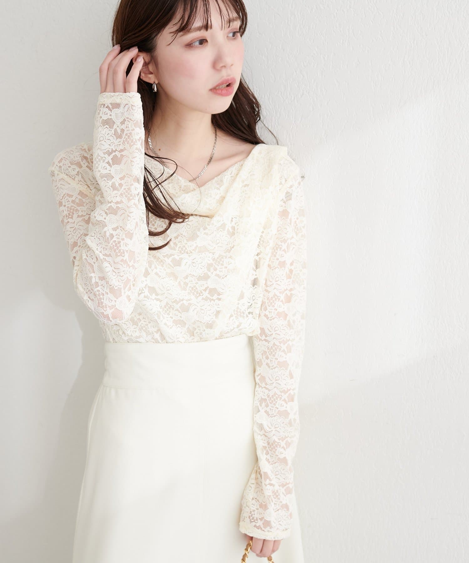 • natural couture(ナチュラルクチュール) ドレープレースプルオーバー