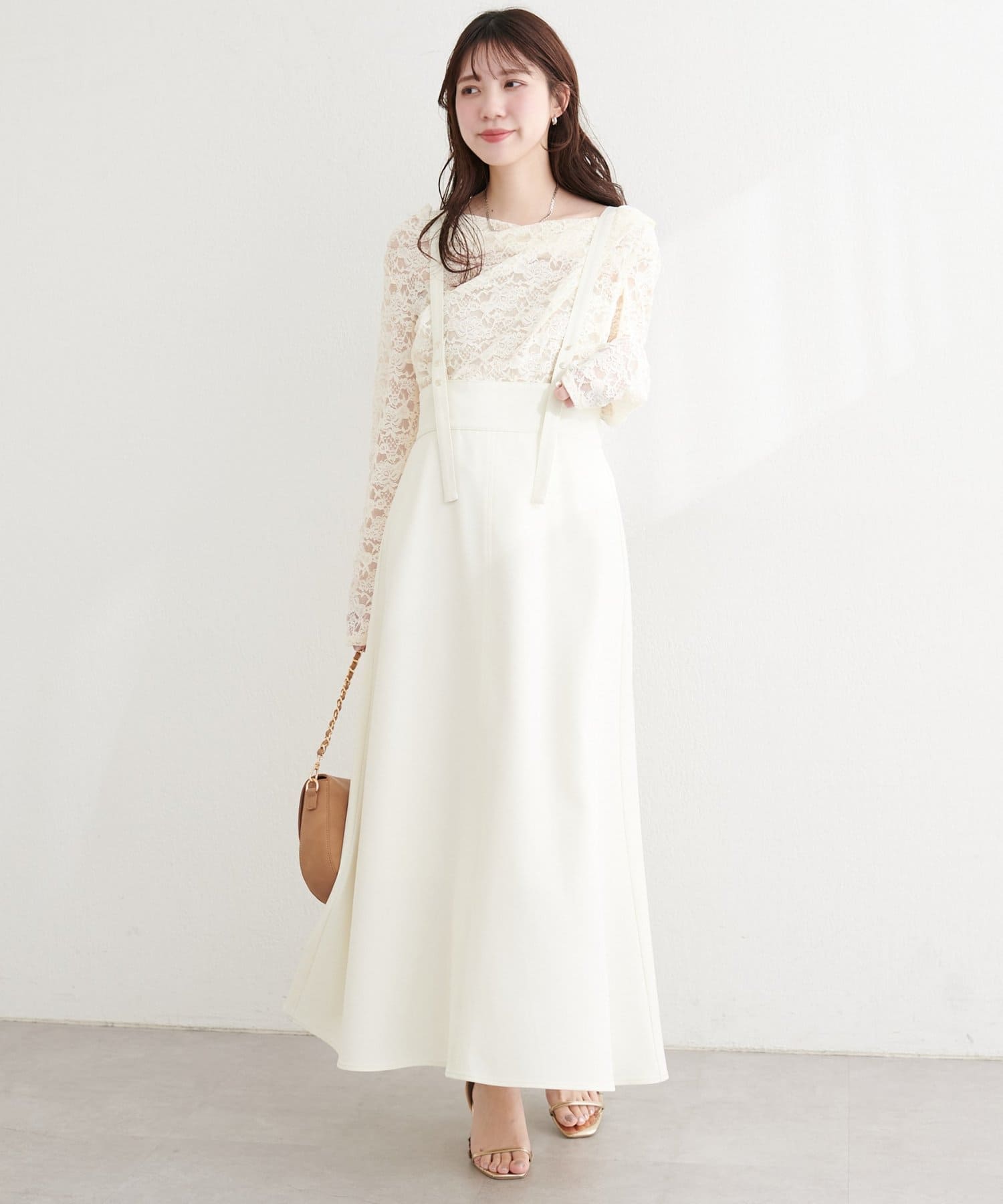 デコルテ部分に施されたドレープデザインが、上品な肌見せを叶えます。