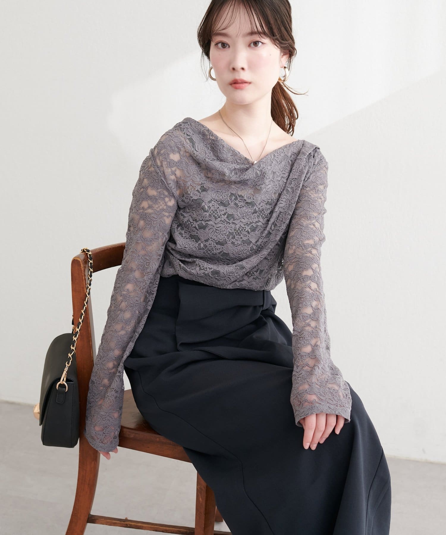 ふわりと軽やかなドレープと、繊細なレースを贅沢にあしらったプルオーバー。