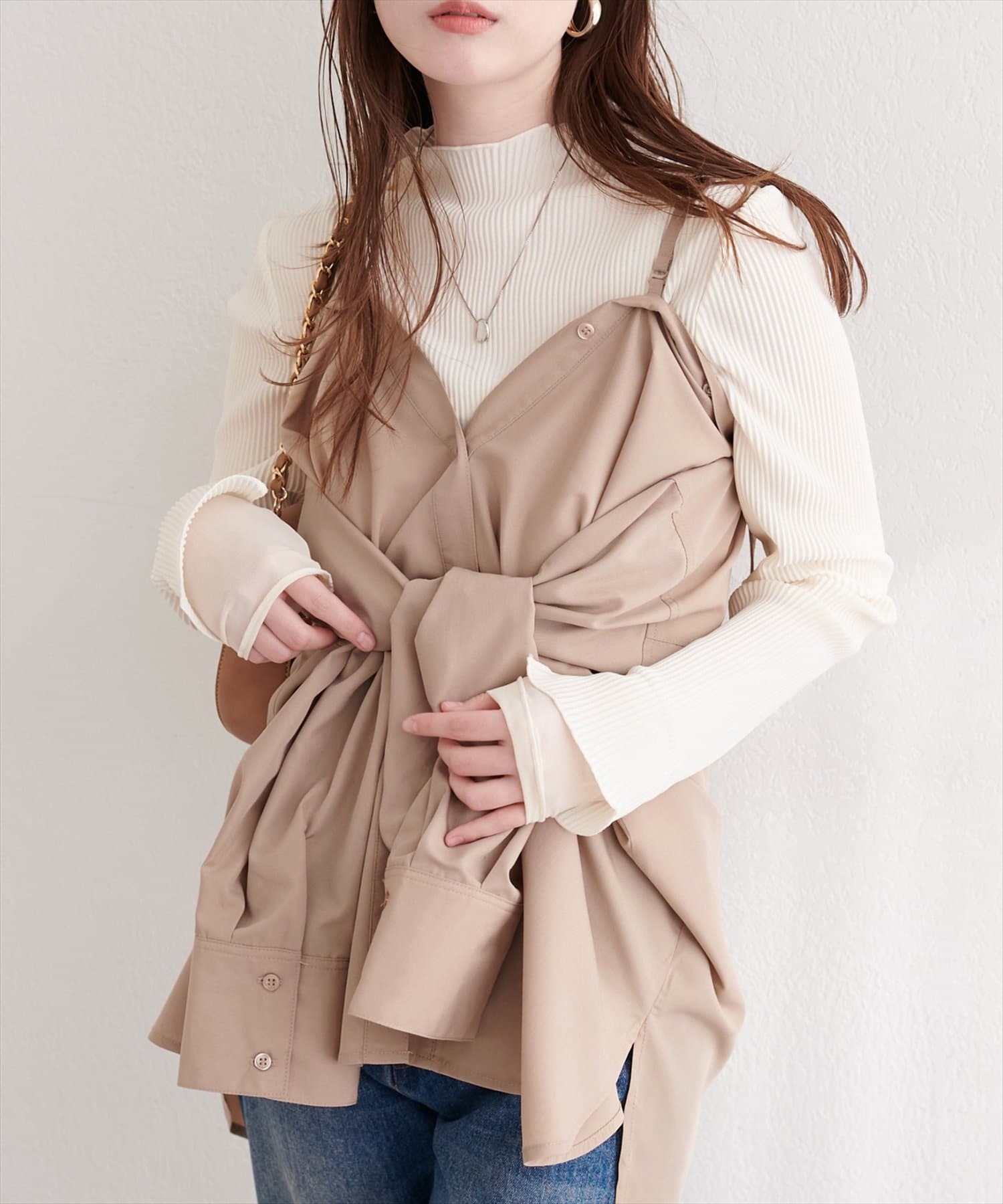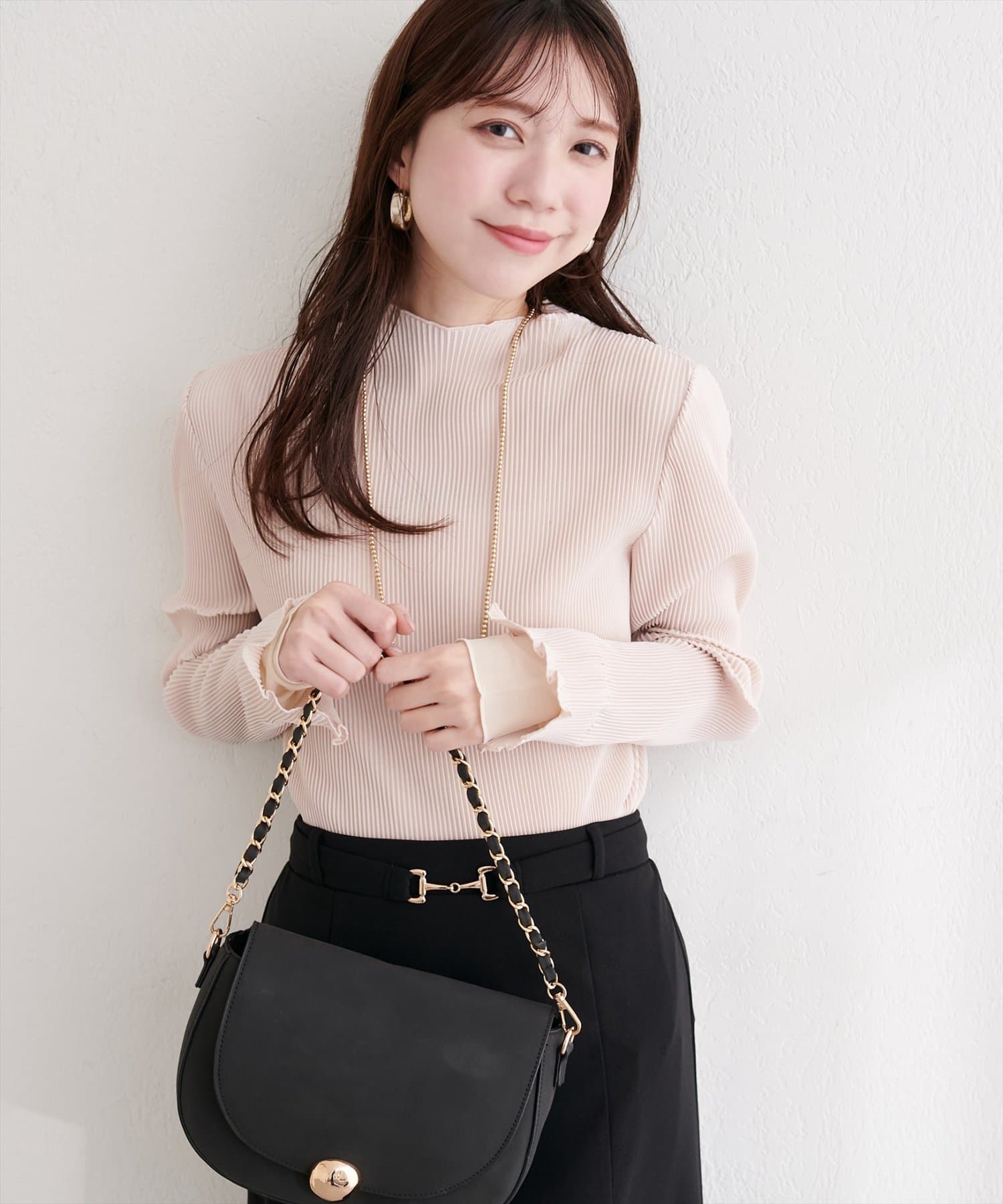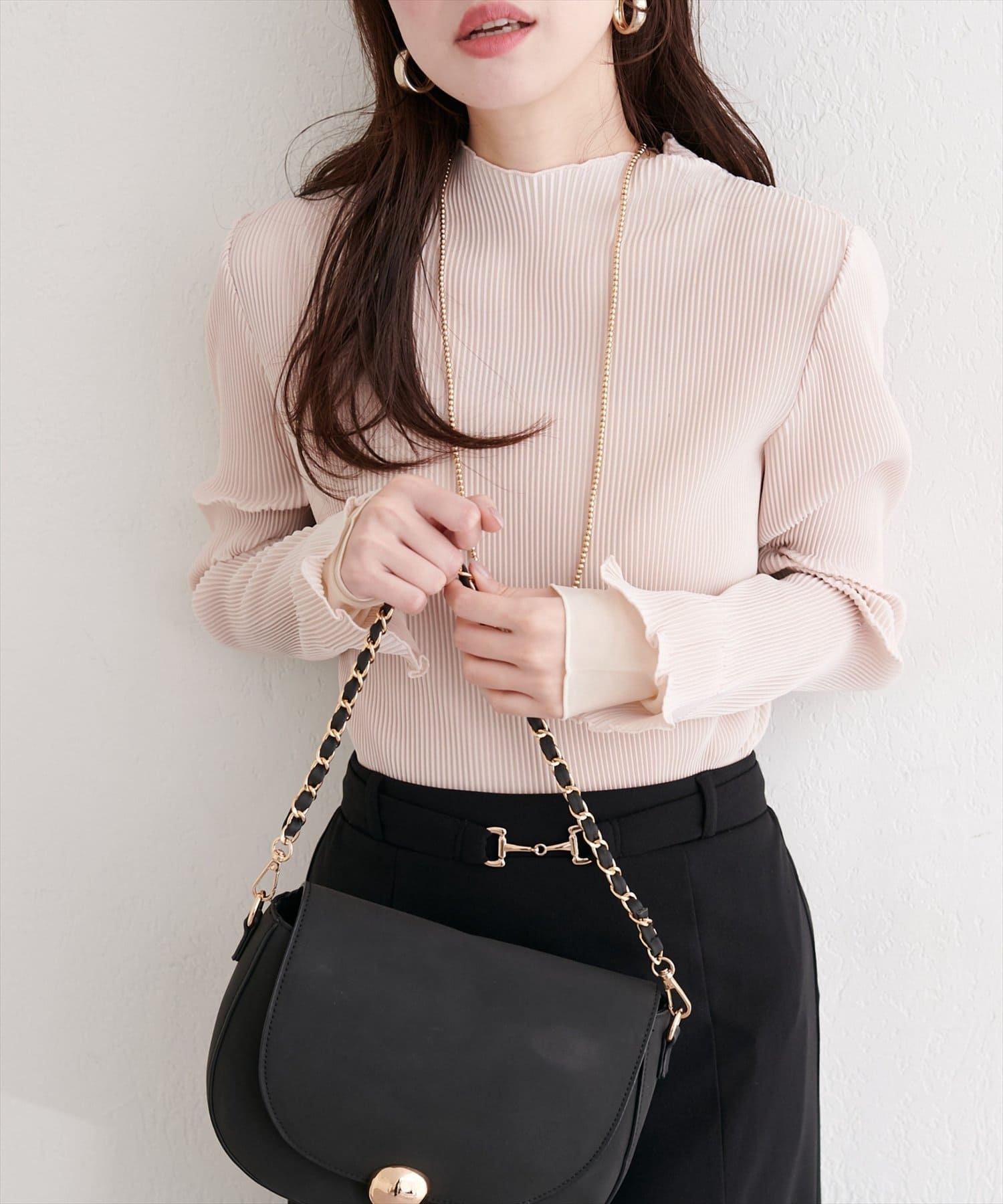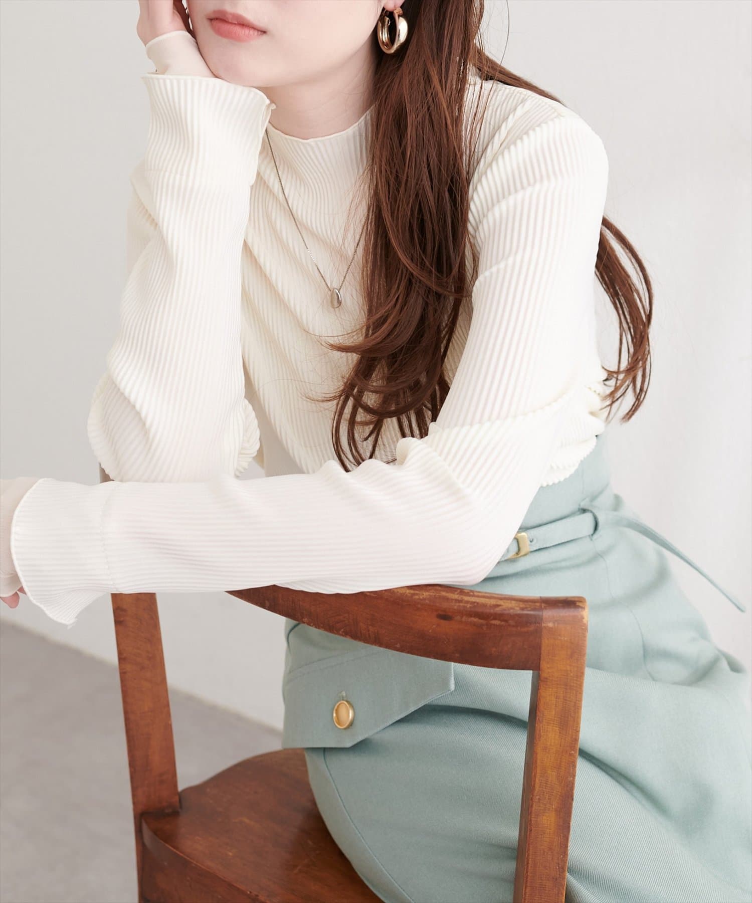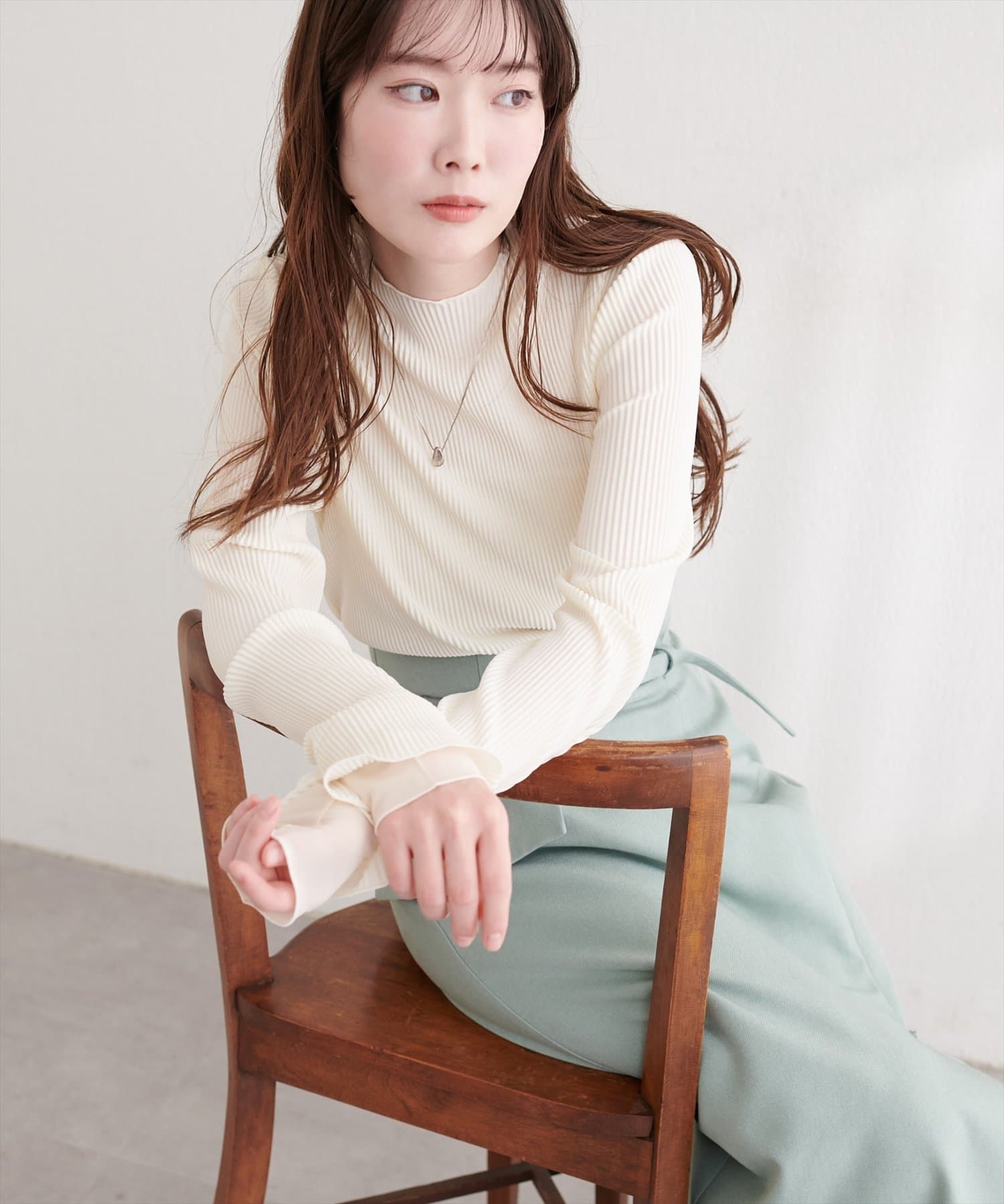 春や秋には、一枚でさらっと着こなして、プリーツと袖口の美しさを際立たせるのがおすすめ。