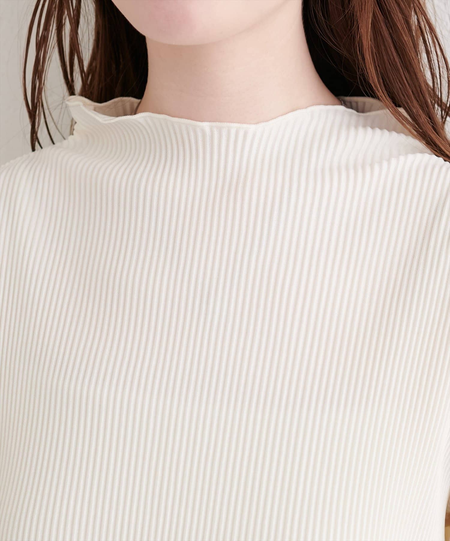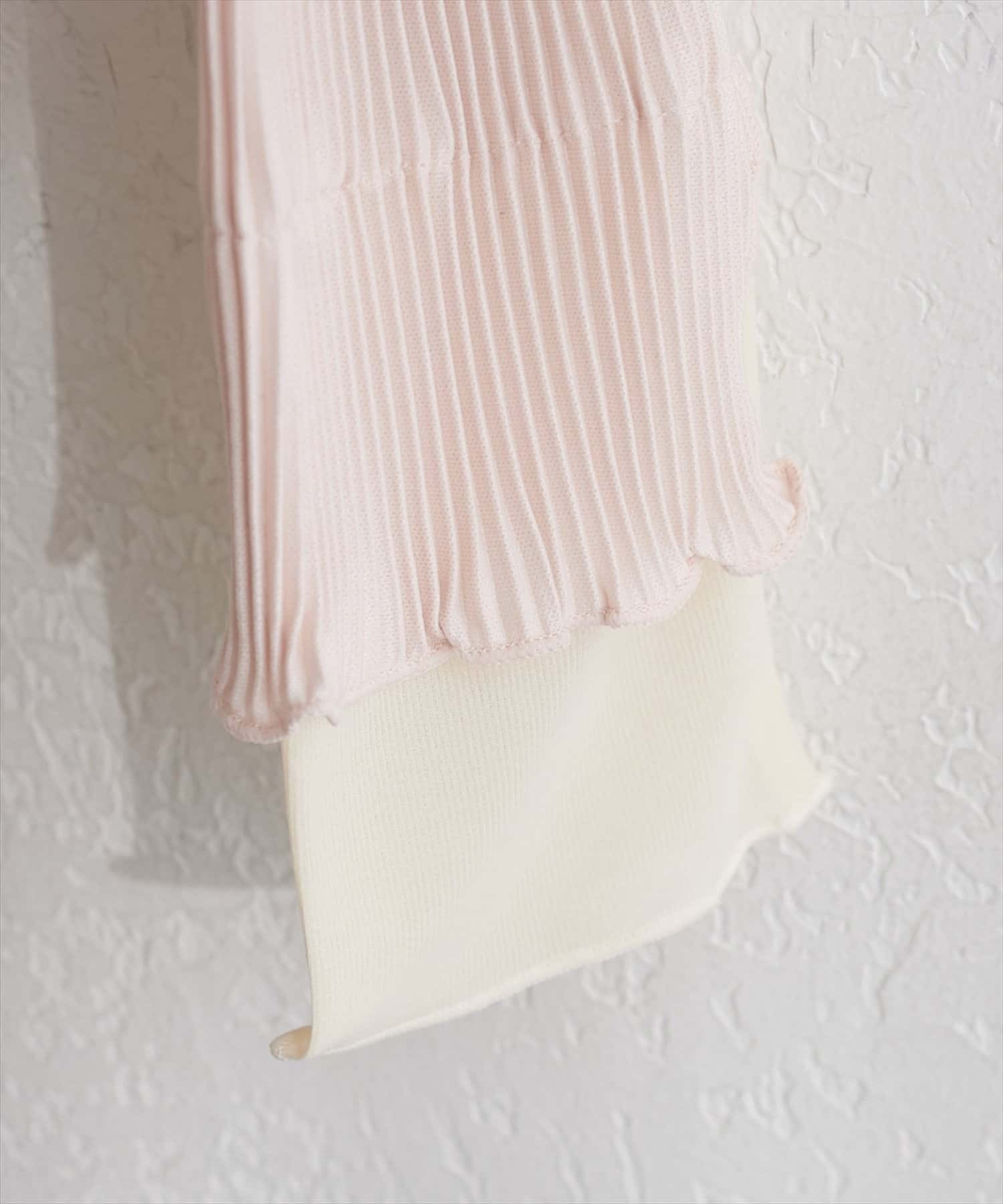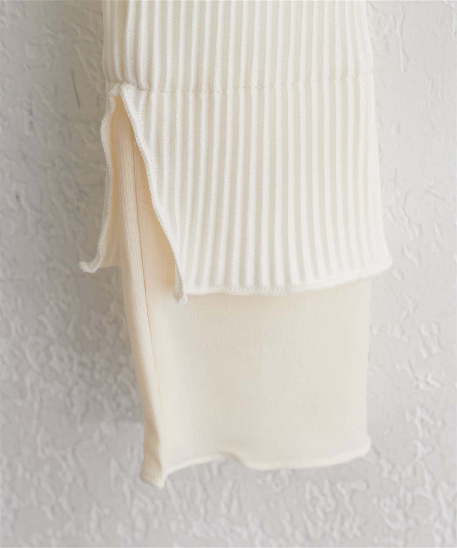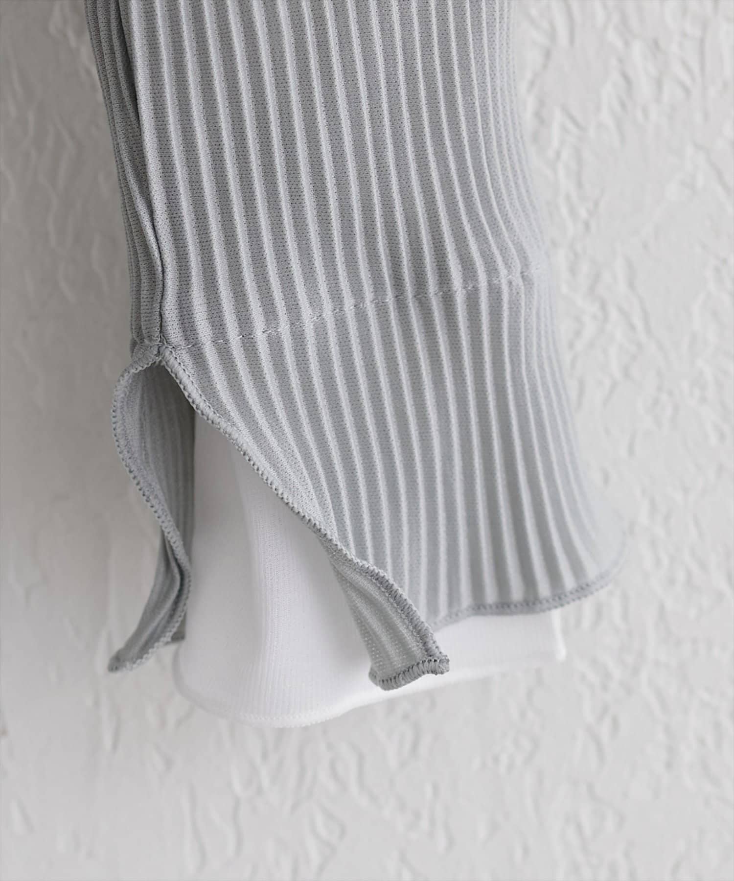 身頃は縦のリブで仕立てられており、すっきりとしたシルエットを演出。