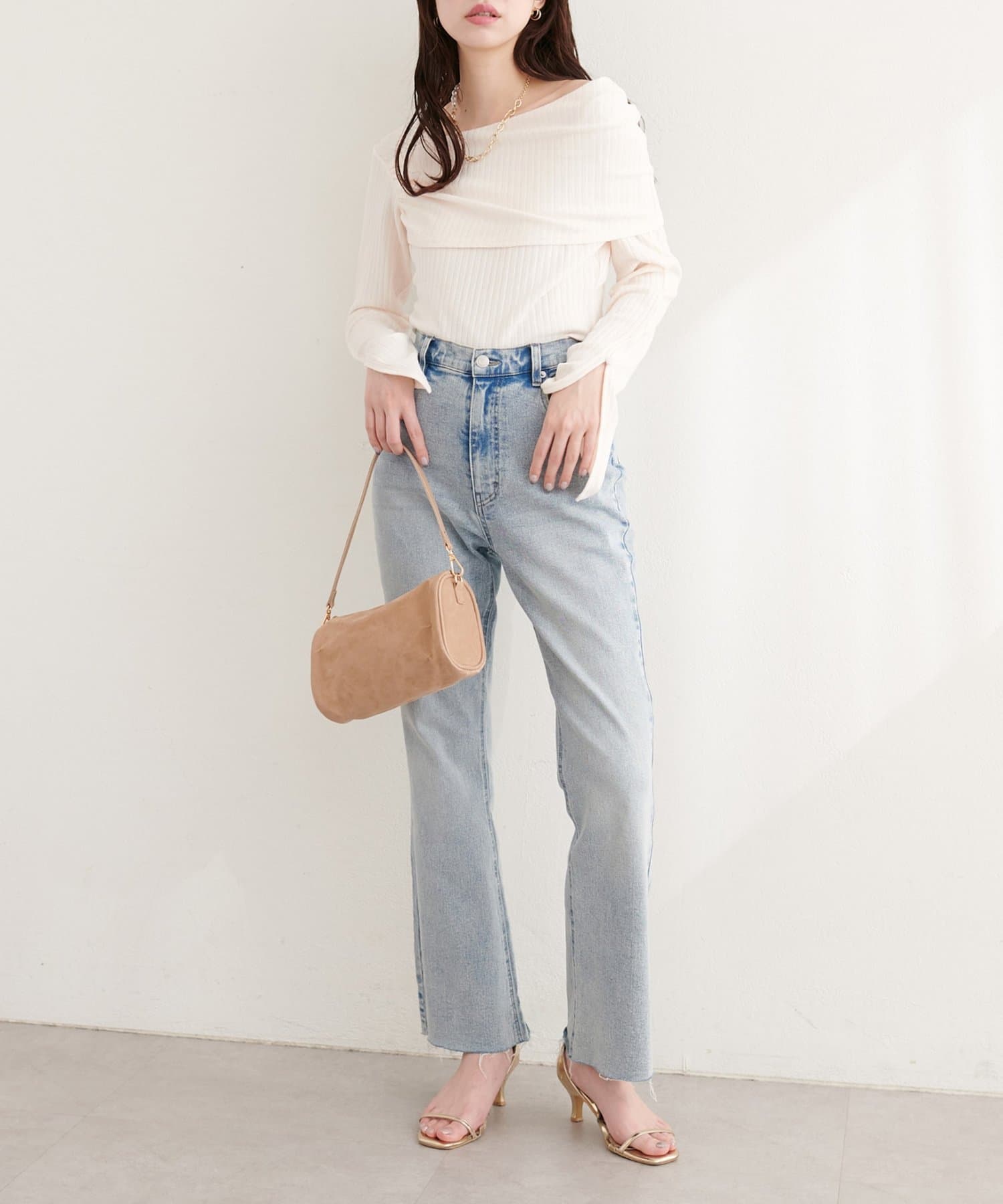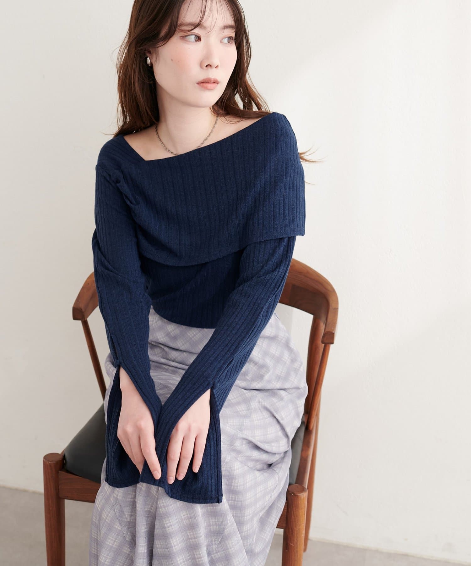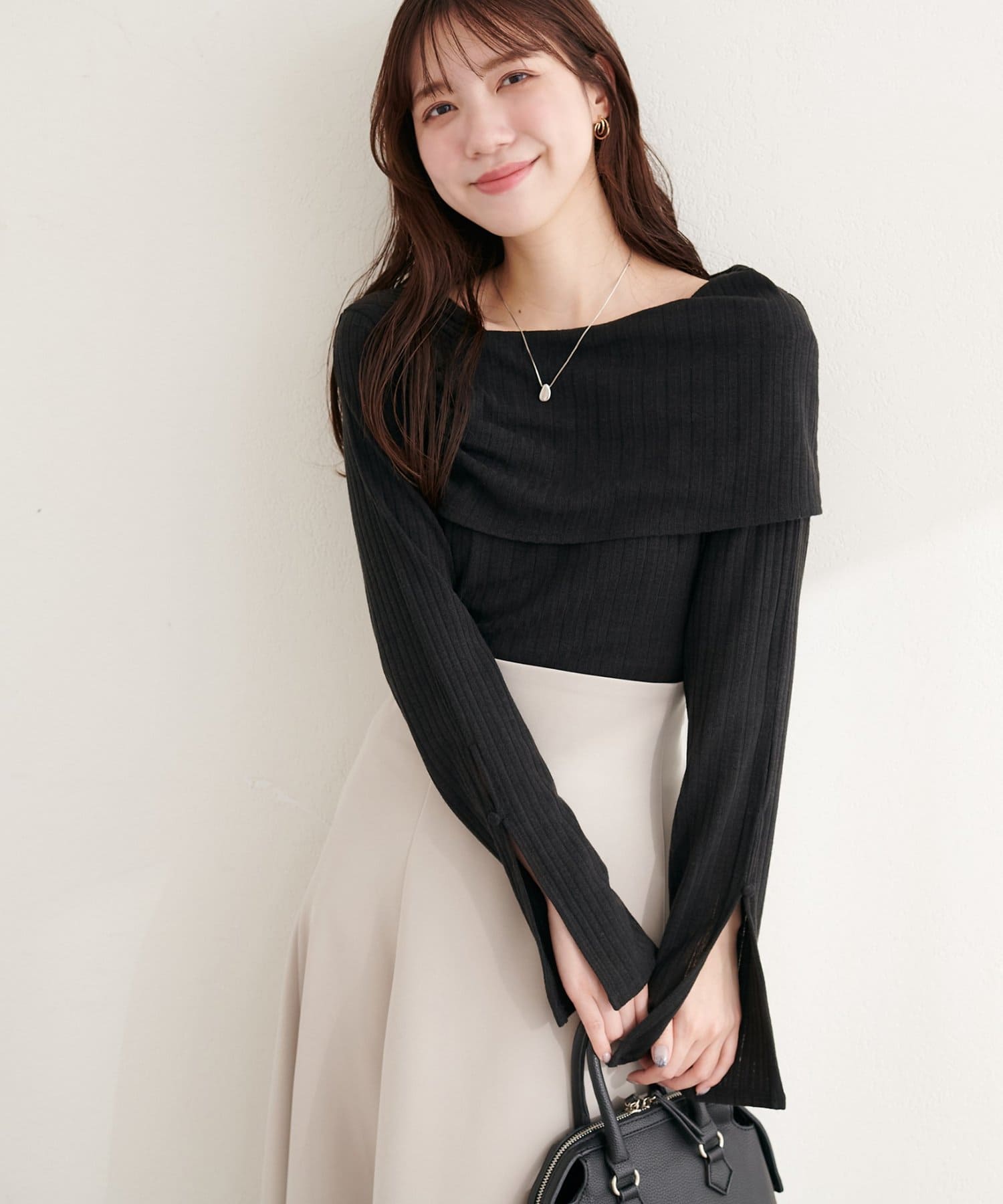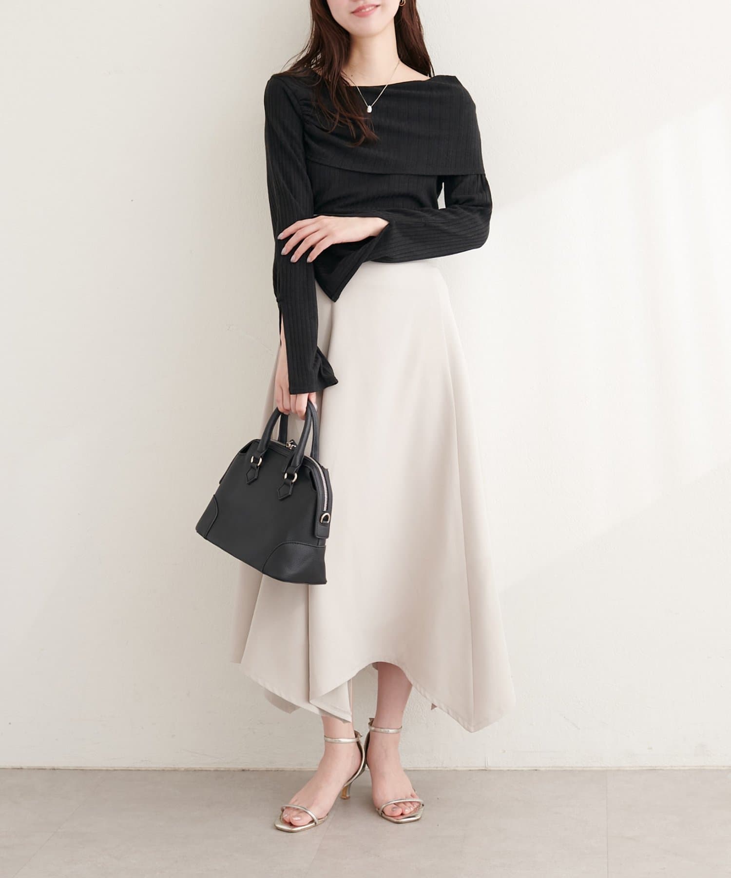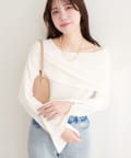 上品な肌見せと、優雅なシルエットで、カジュアルながらも女性らしさを演出します。