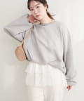 襟元のリブがシルエットにメリハリを与え、カジュアルになりすぎない、上品な印象をプラス。