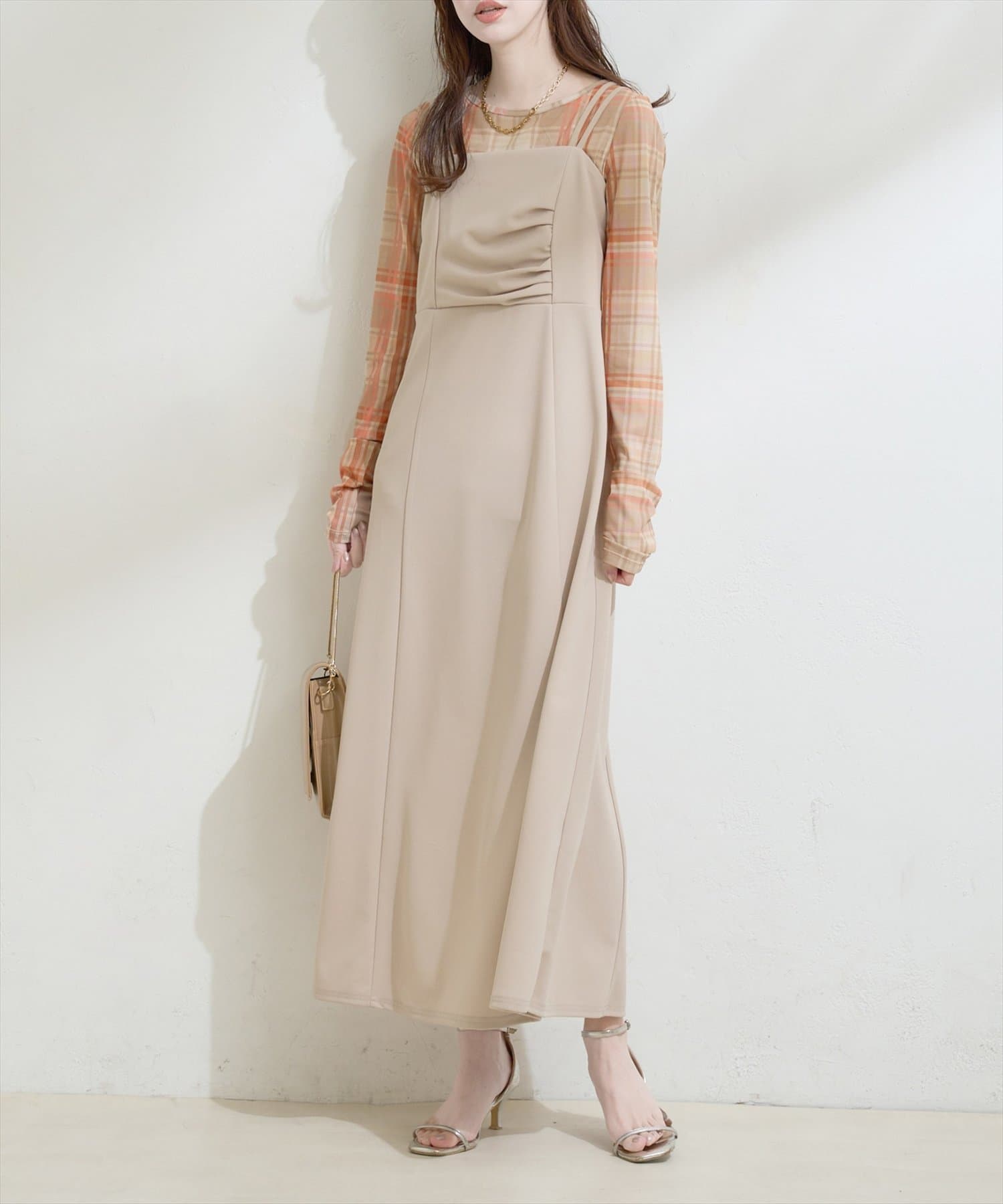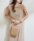 シアートップスの上からビスチェやキャミワンピースをレイヤードして、トレンド感のある着こなしも◎。