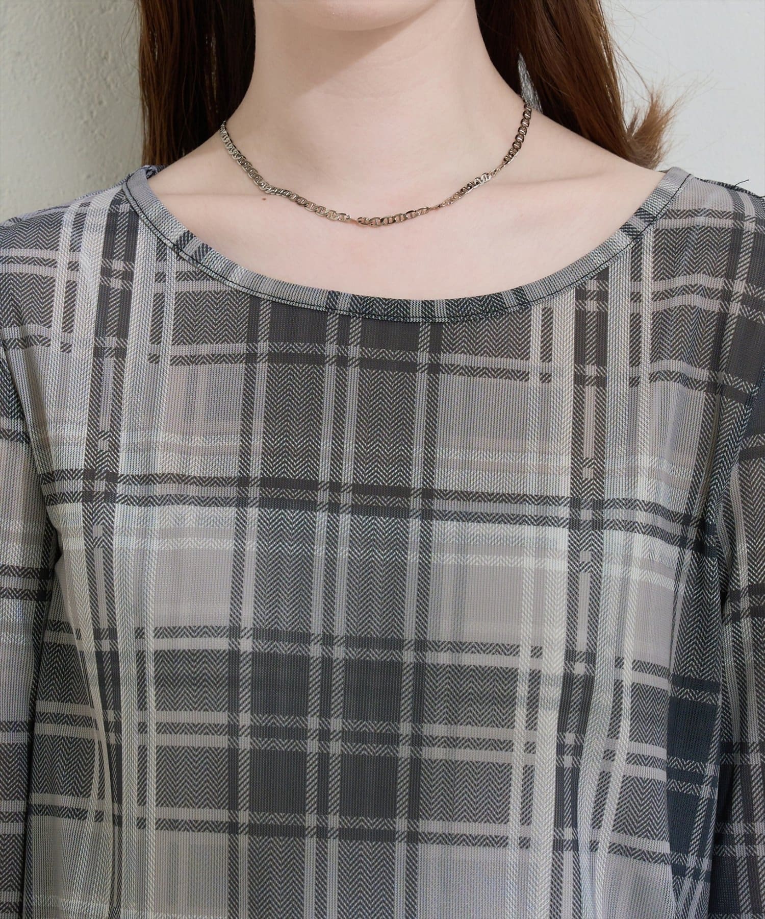 チュールチェックトップス
