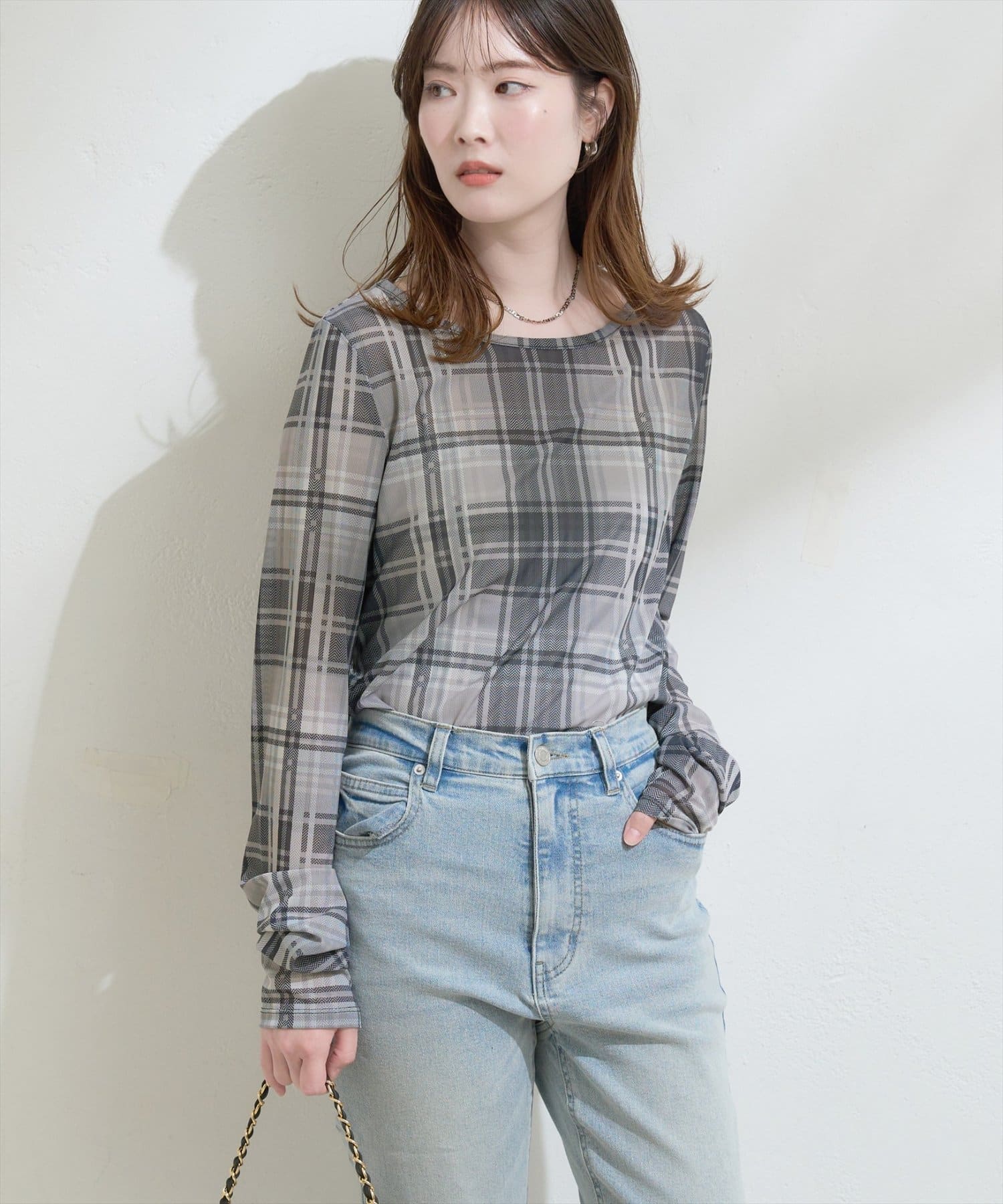 ジャケットやカーディガンのインナーとして、チェック柄をちらりと覗かせれば、コーディネートのアクセントになります。