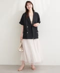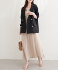 ダブルブレストのデザインが、上品で洗練された雰囲気を演出。