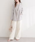 タイトなボトムスと合わせて、ジャケットとのバランスを