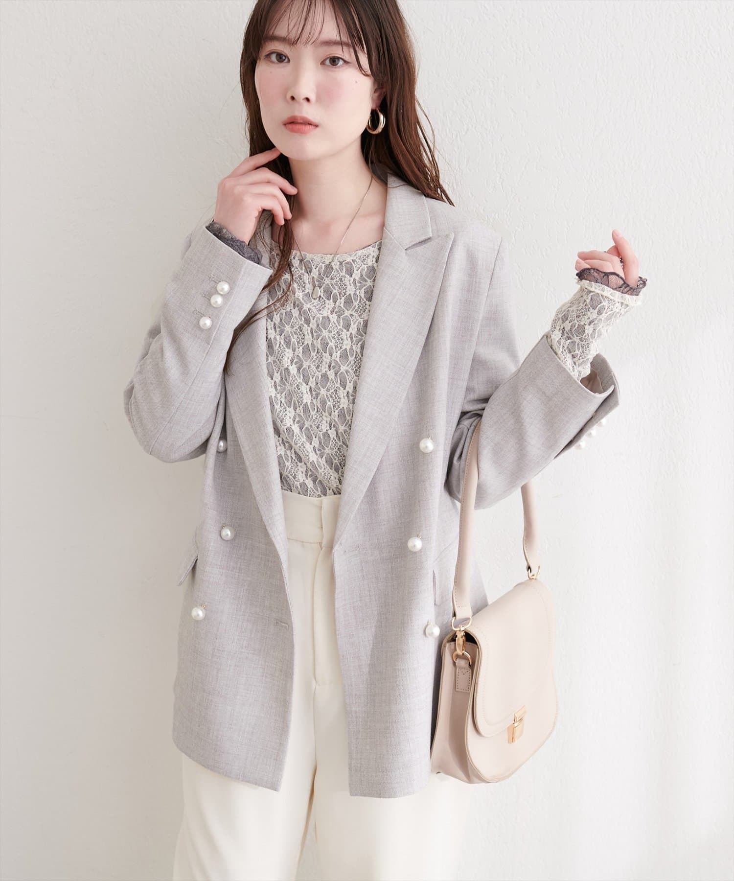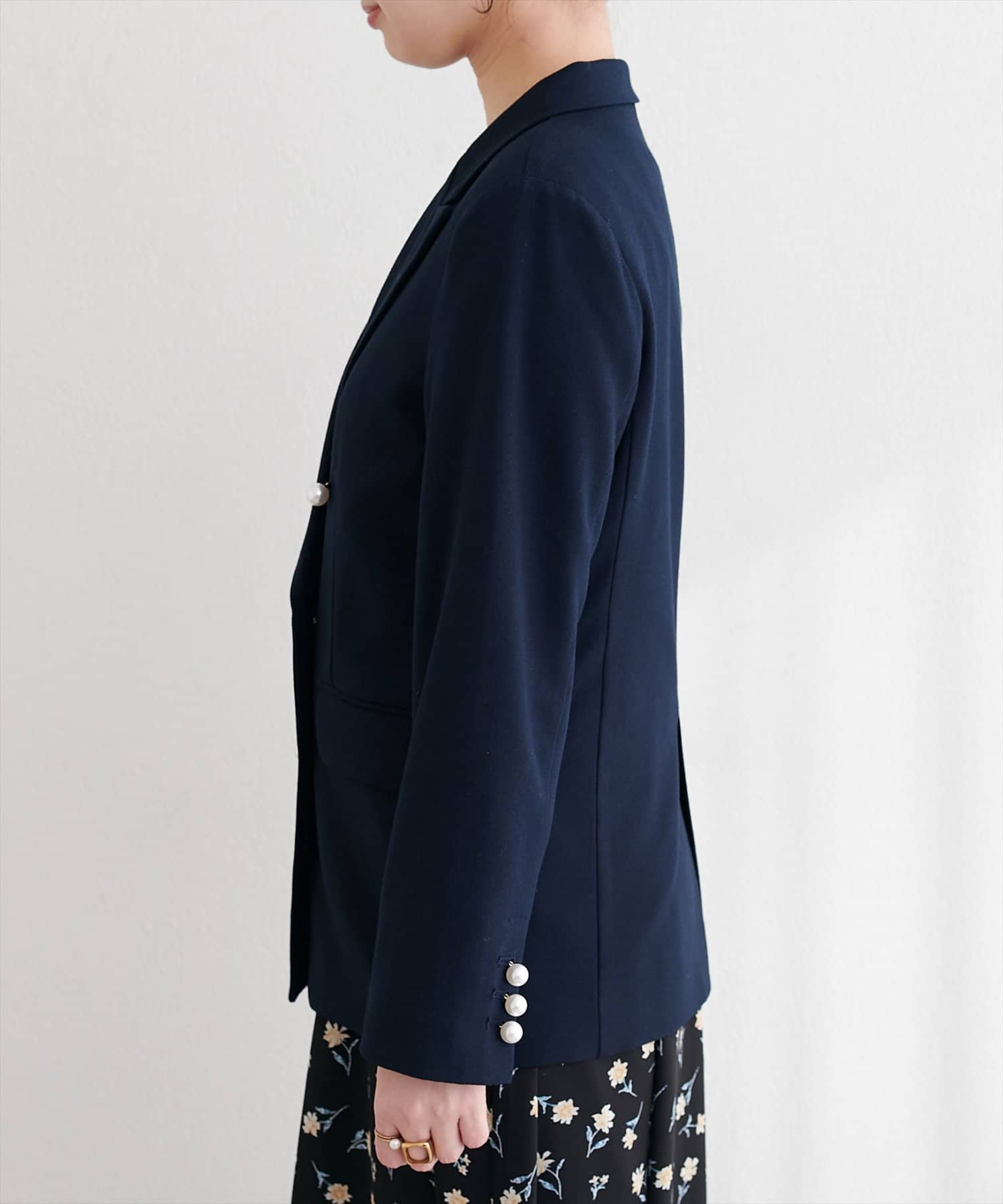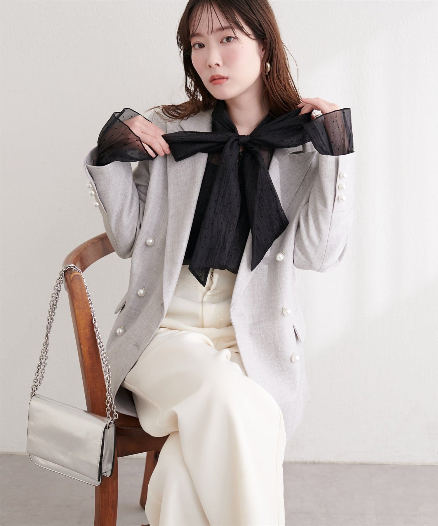 アクセントのパールのボタンがレディな雰囲気を演出。