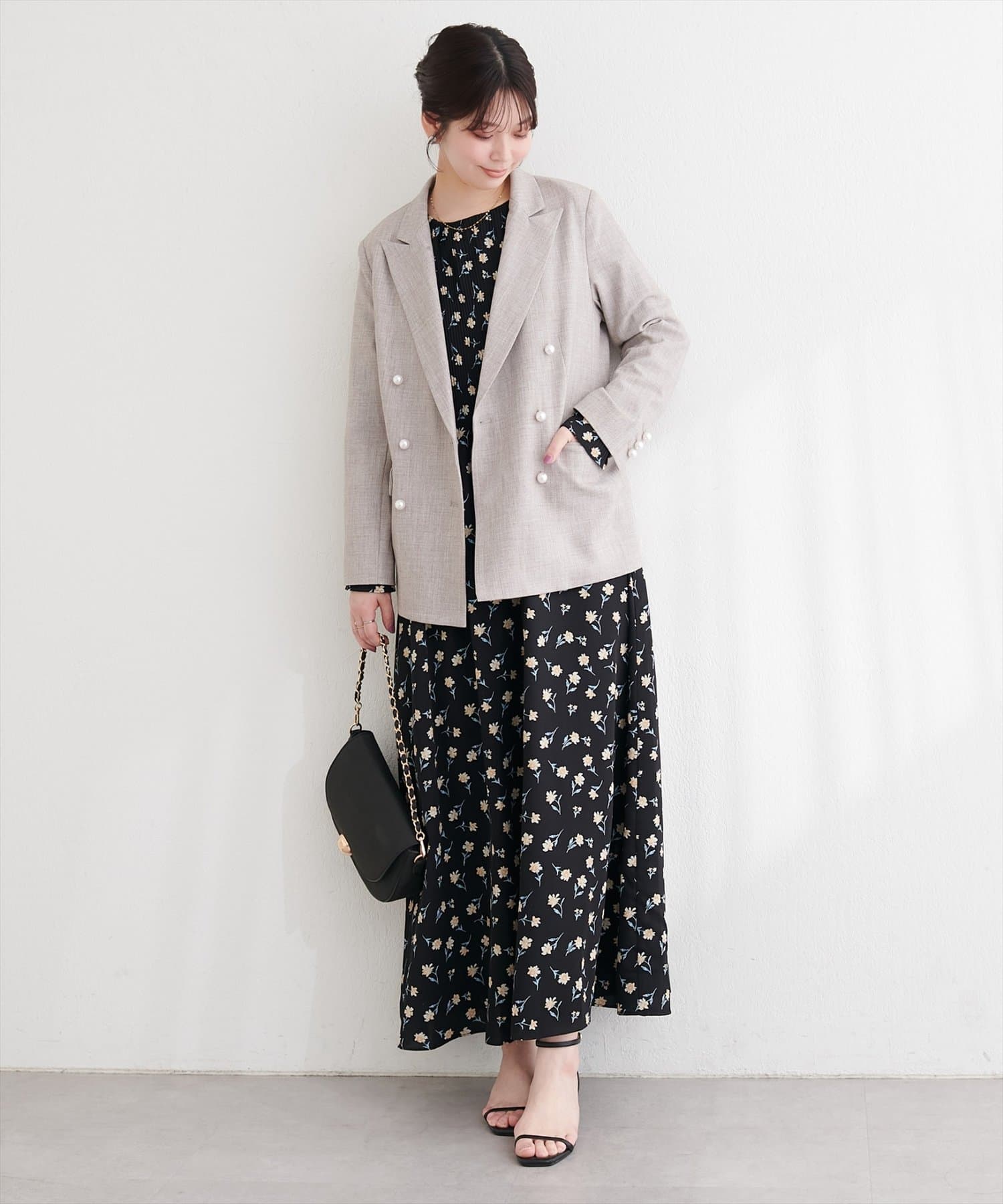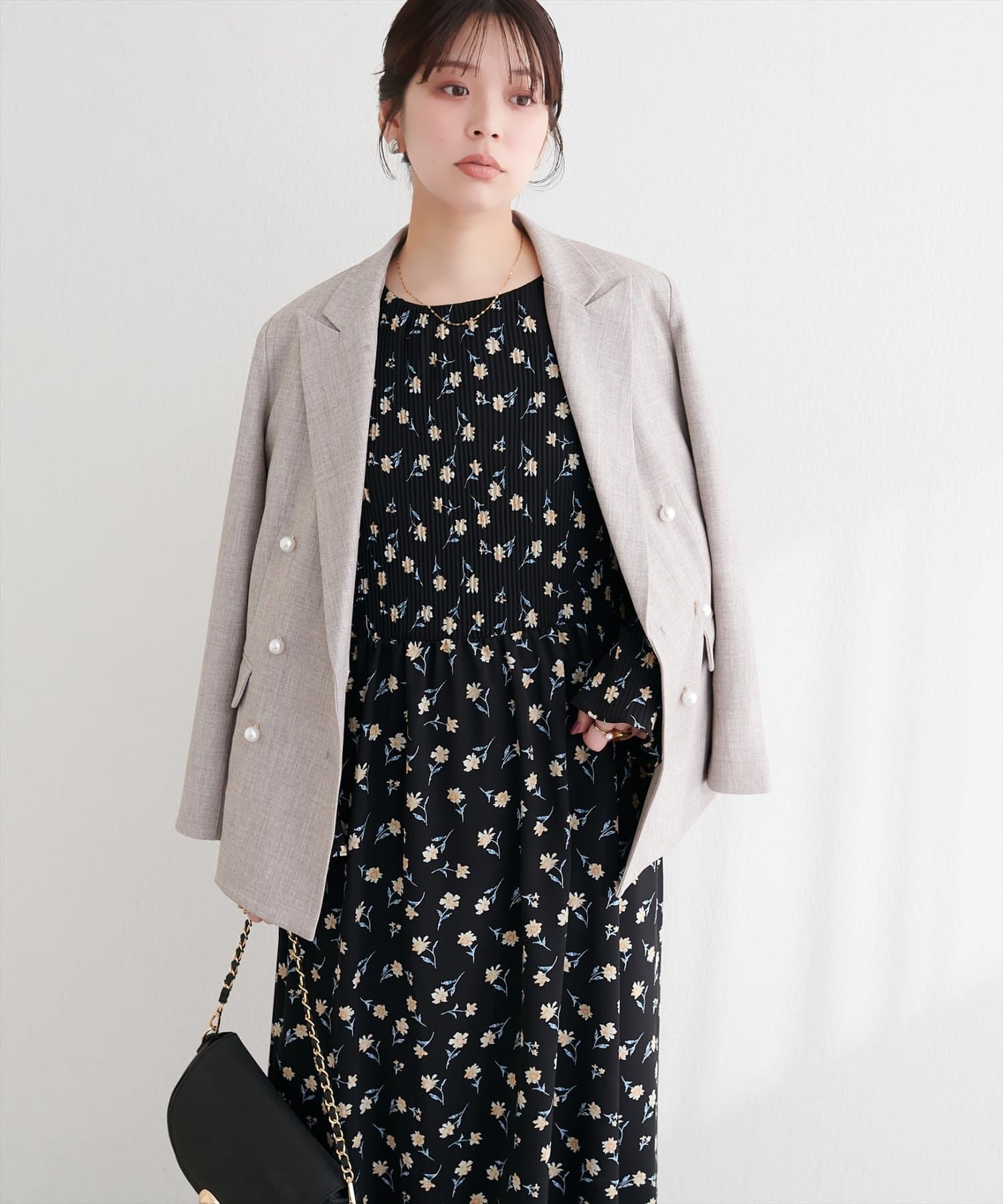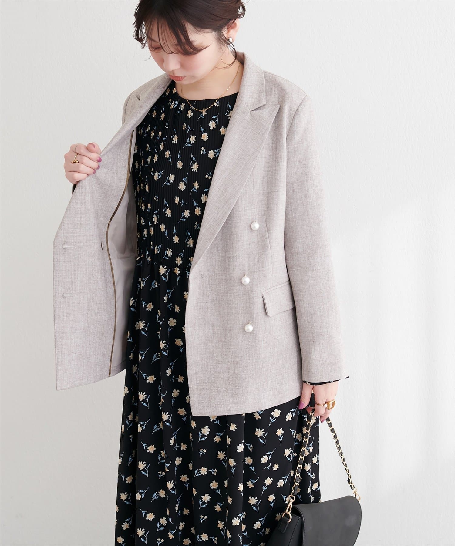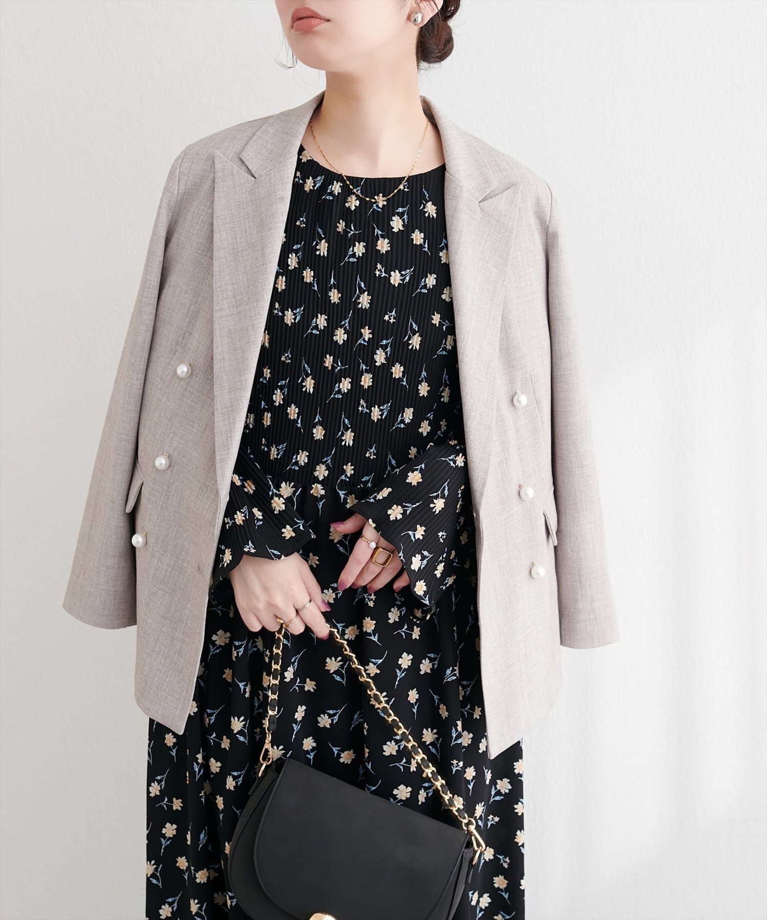 アクセントのパールのボタンがレディな雰囲気を演出。