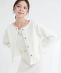フロントにあしらわれたボタンが、さりげないアクセントをプラス。裾にあしらわれたフリルが、フェミニンな印象を演出します。