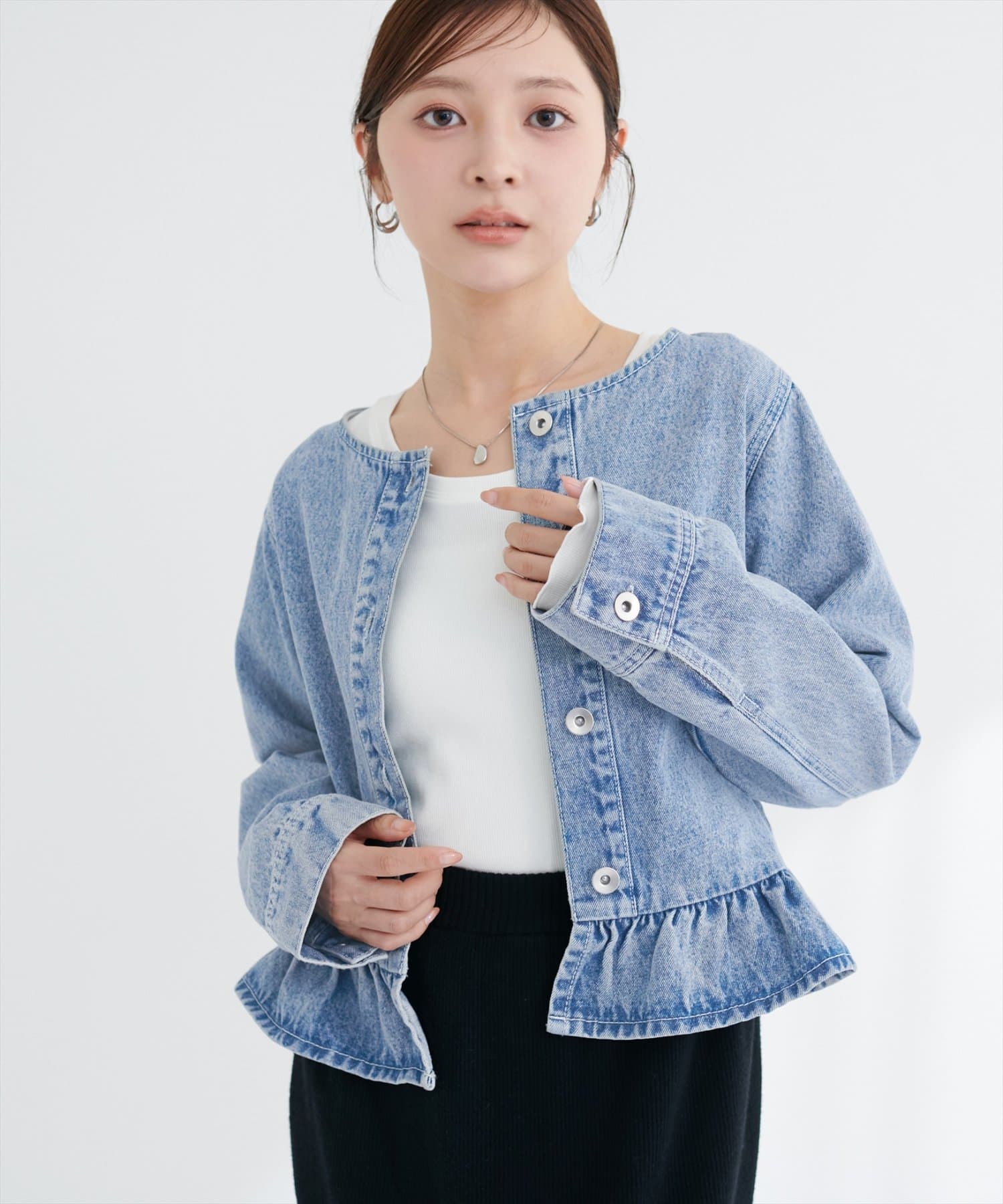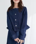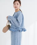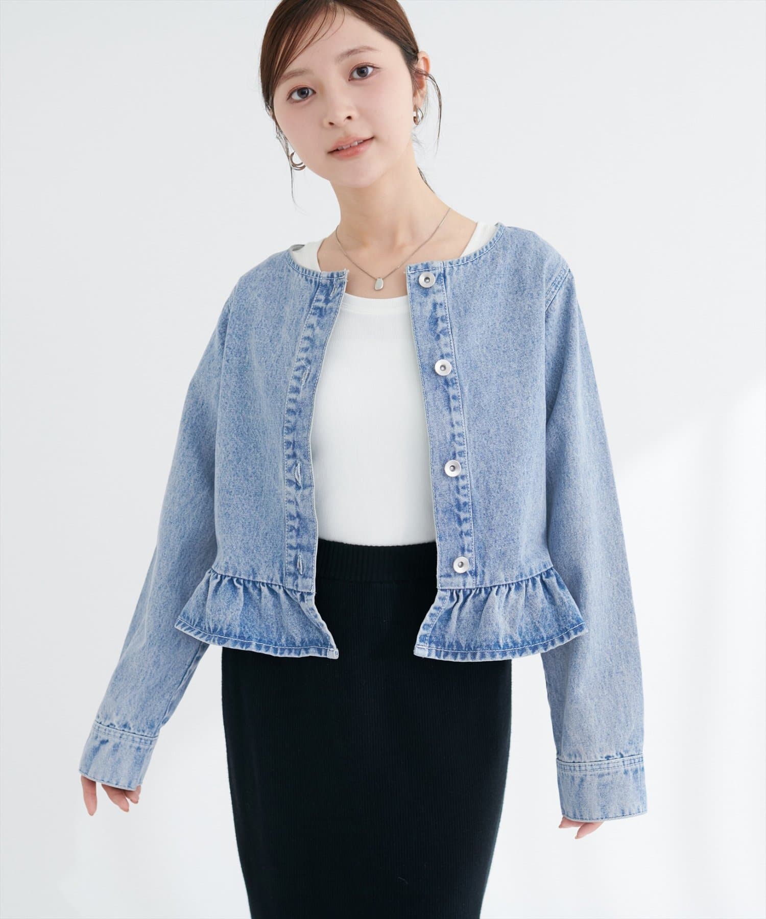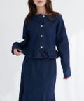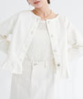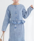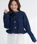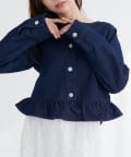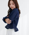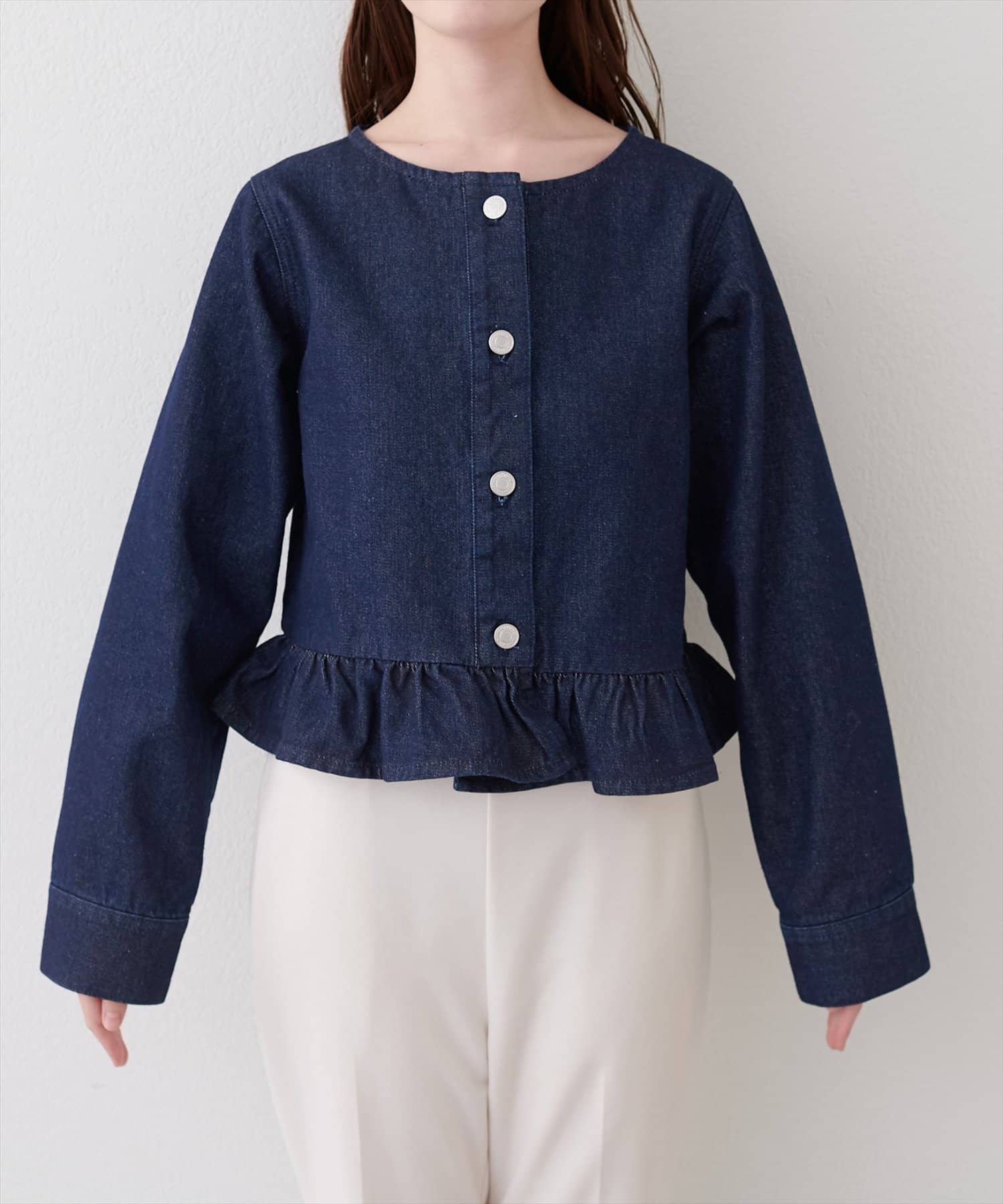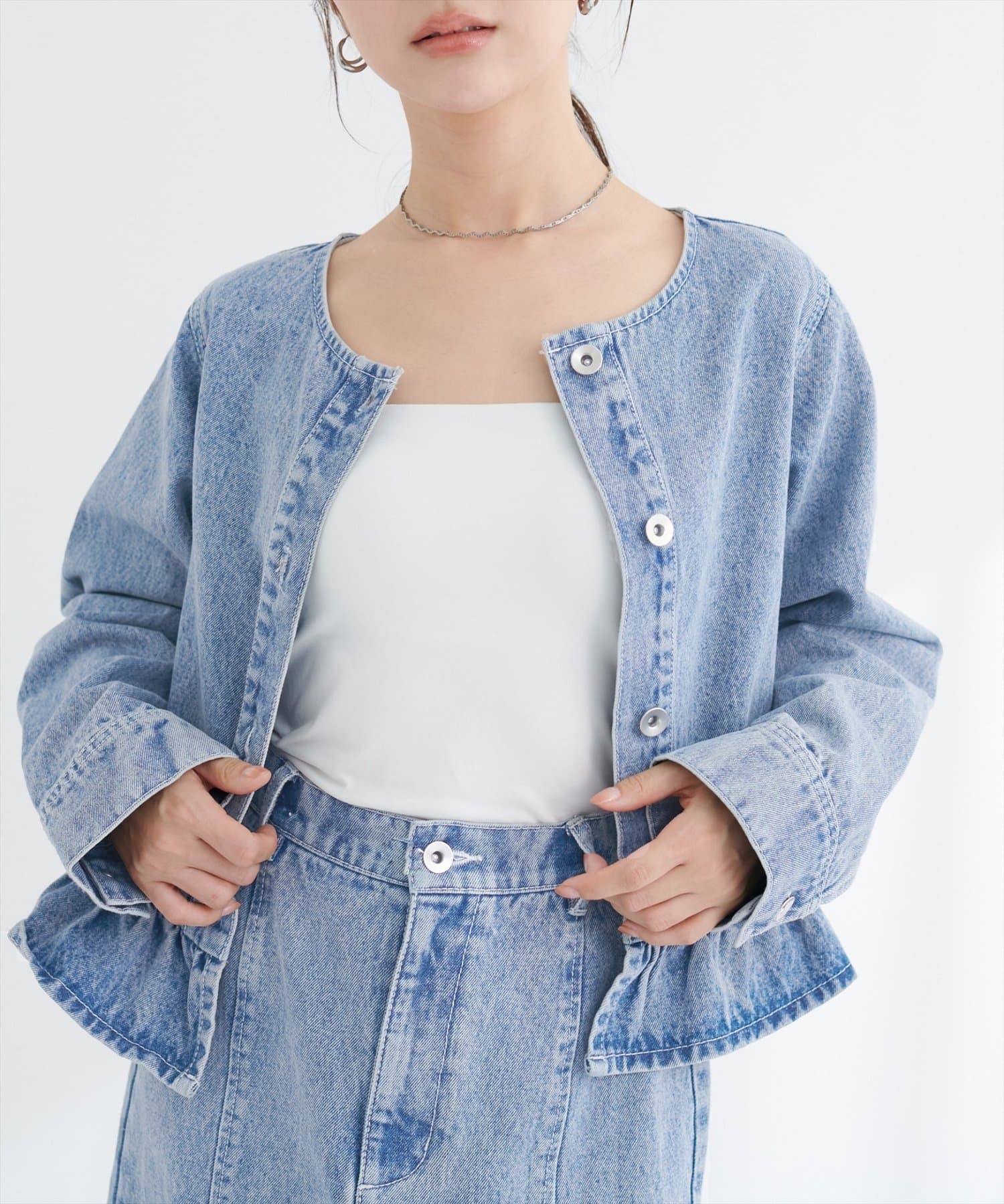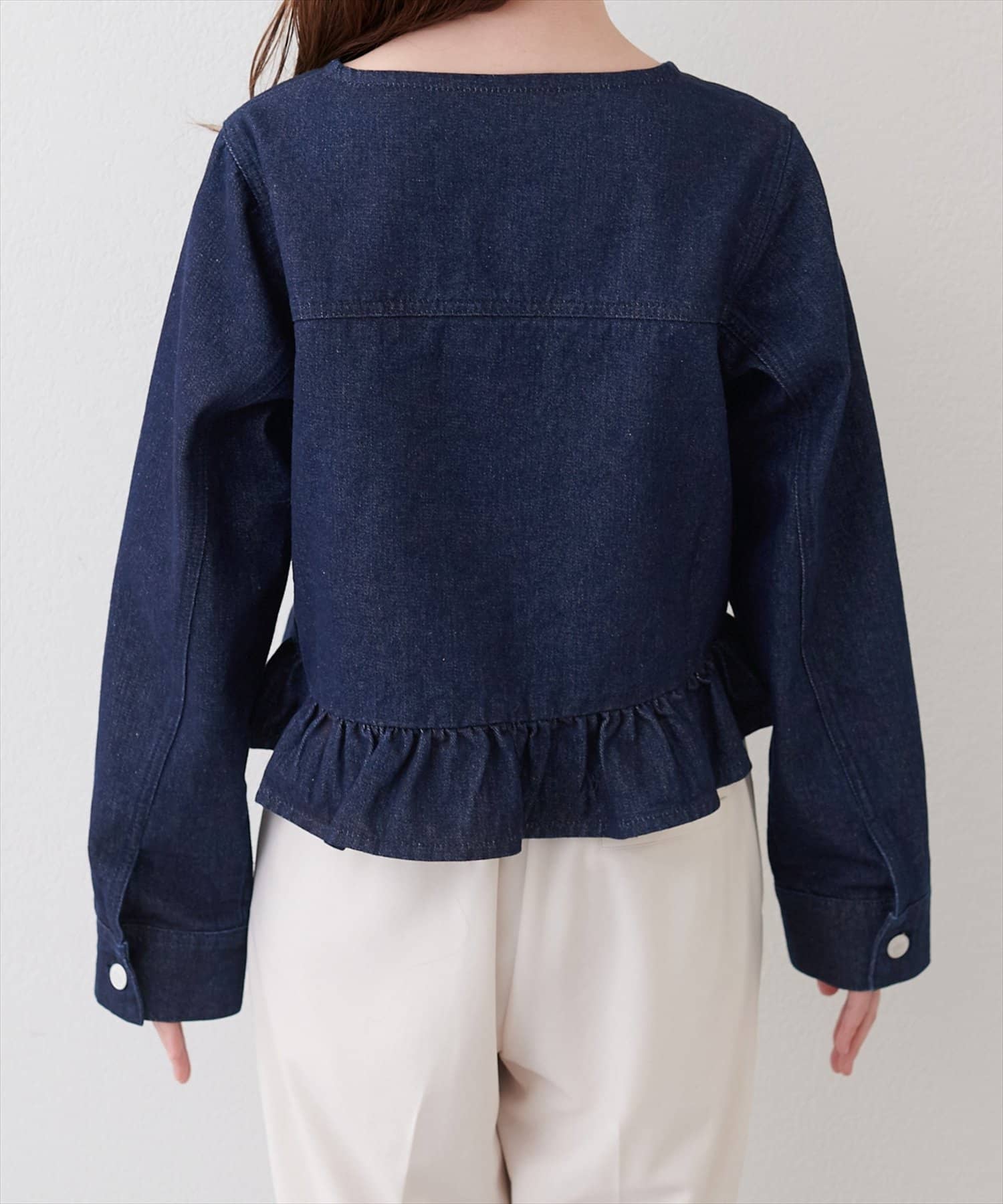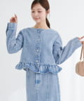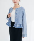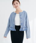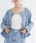 ノーカラーペプラムデニムジャケット