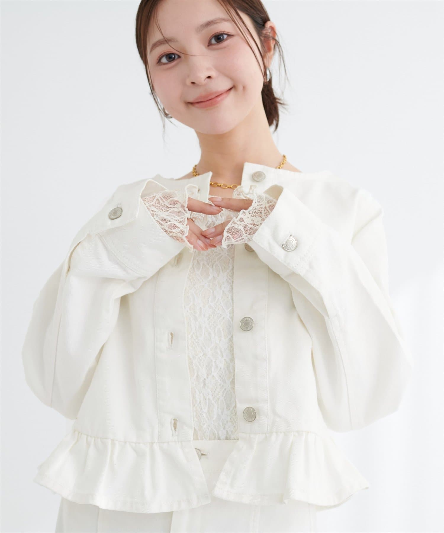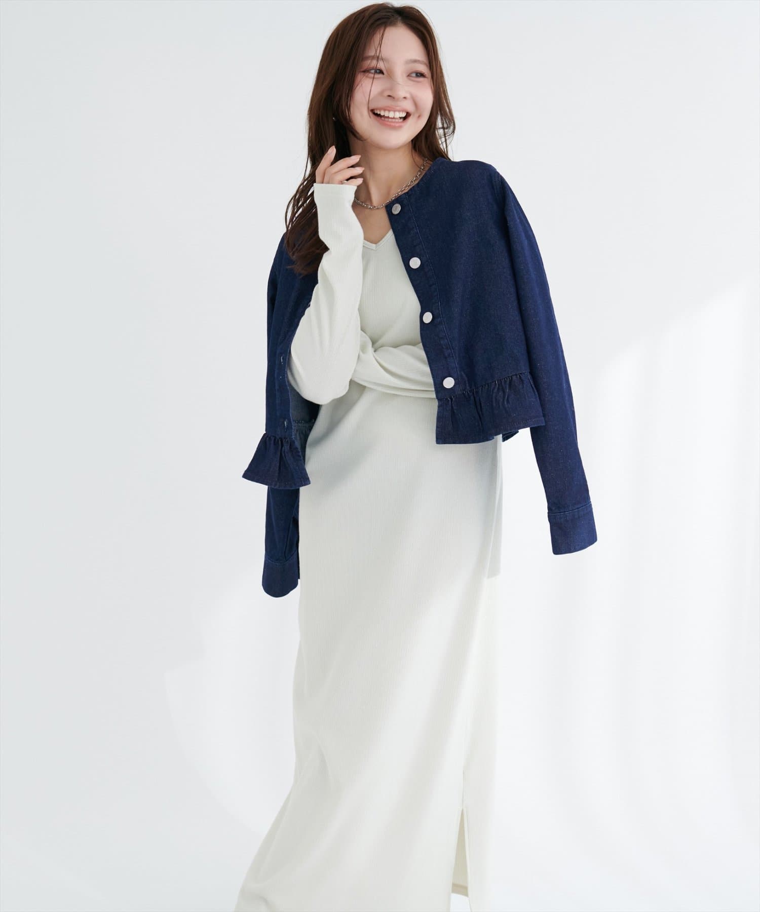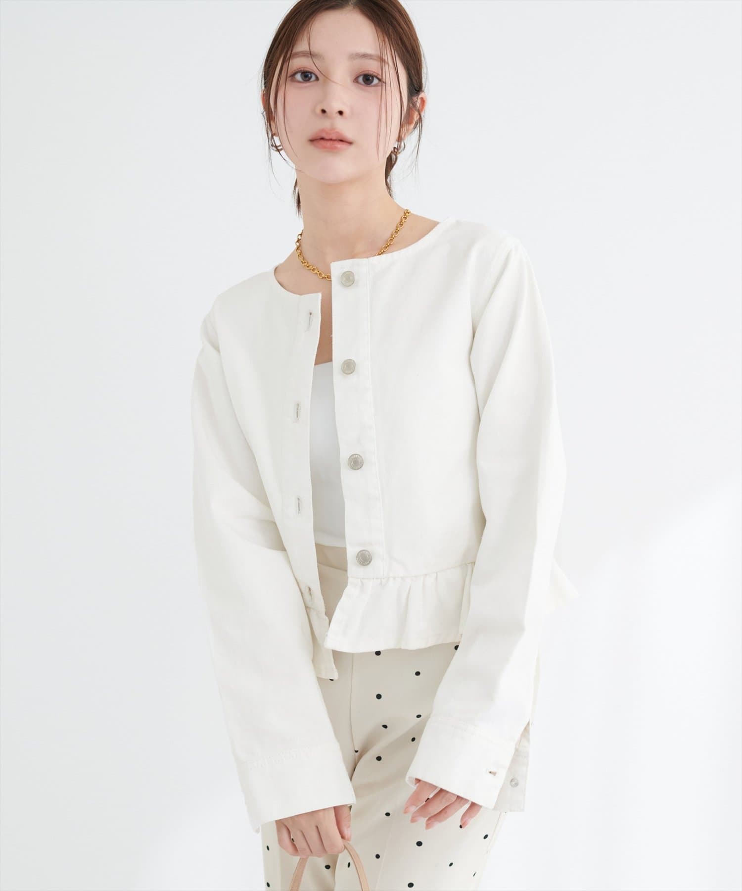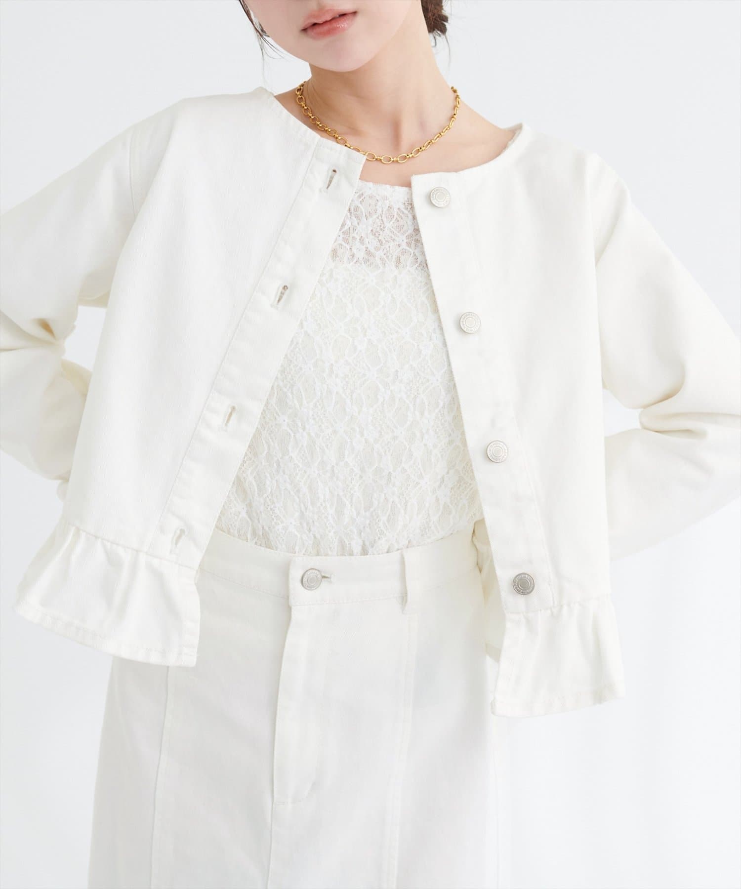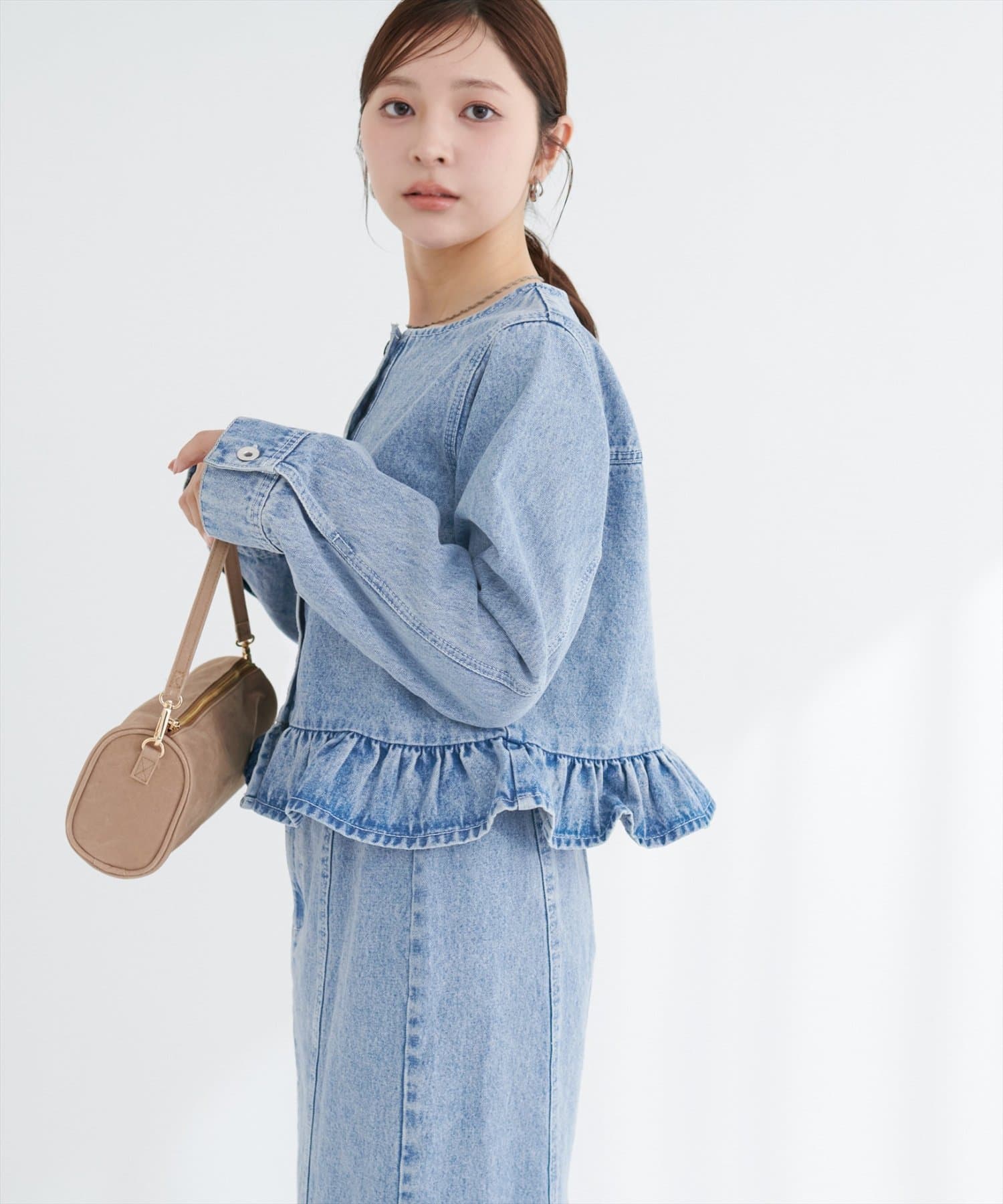 ノーカラーペプラムデニムジャケット