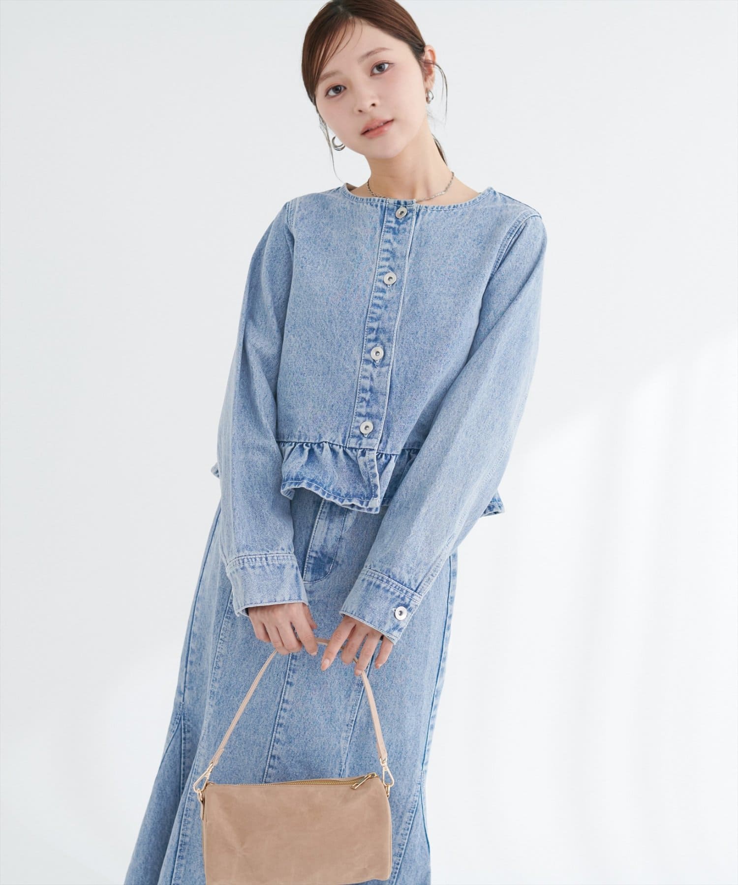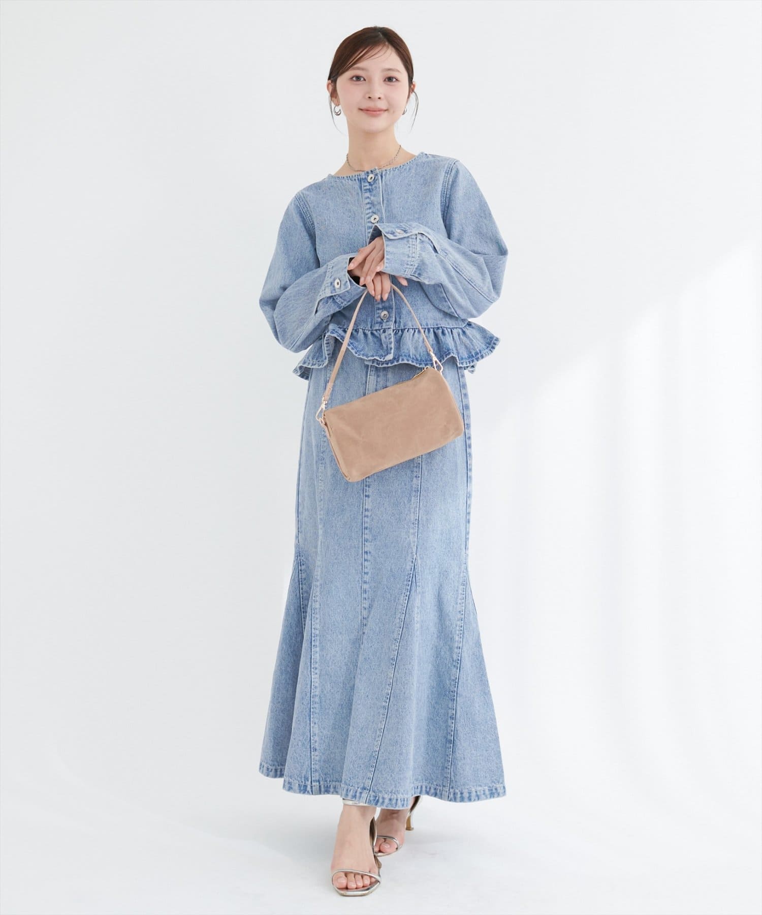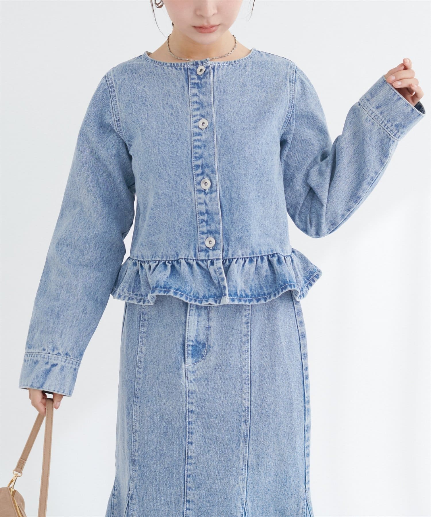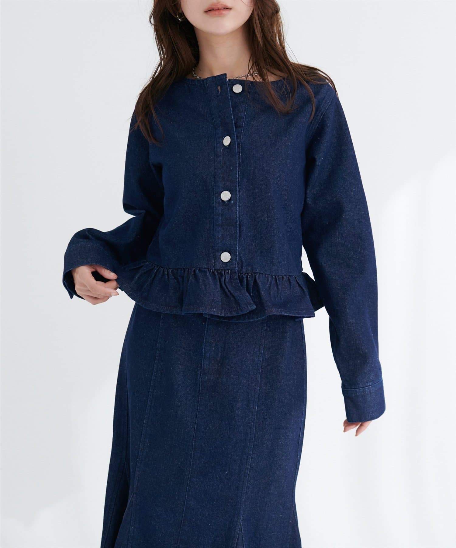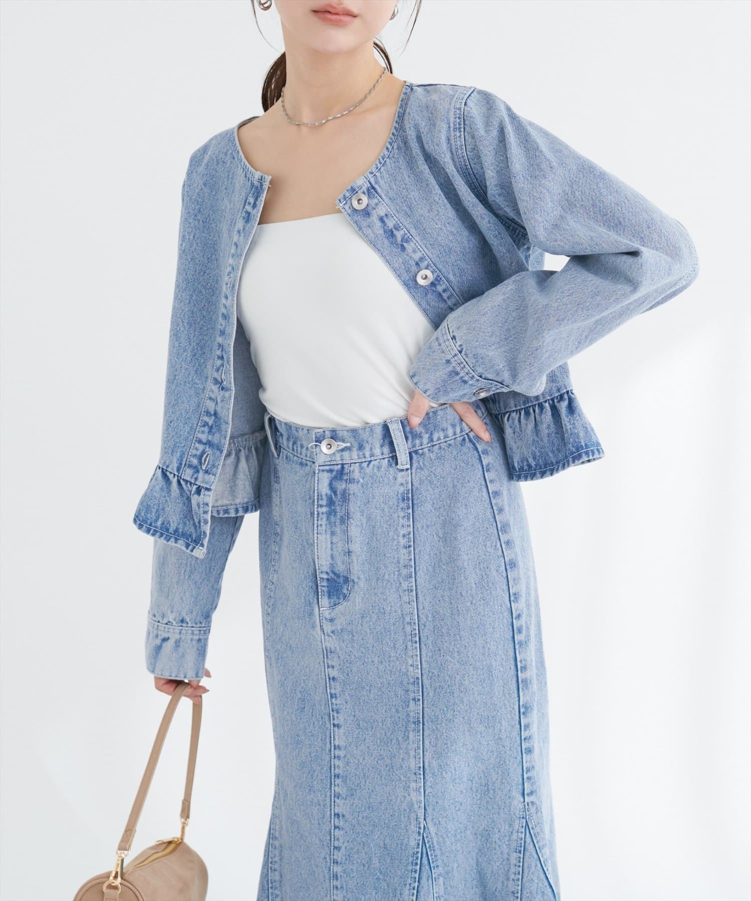 0361010150 マーメイドデニムスカートと合わせれば同素材のセットアップ風コーデに♪