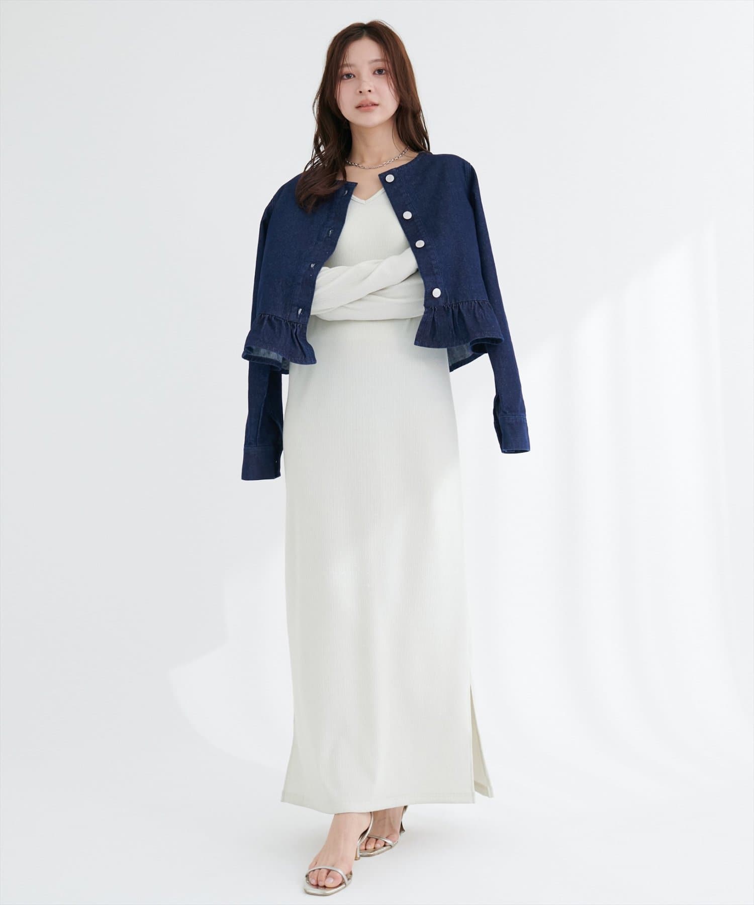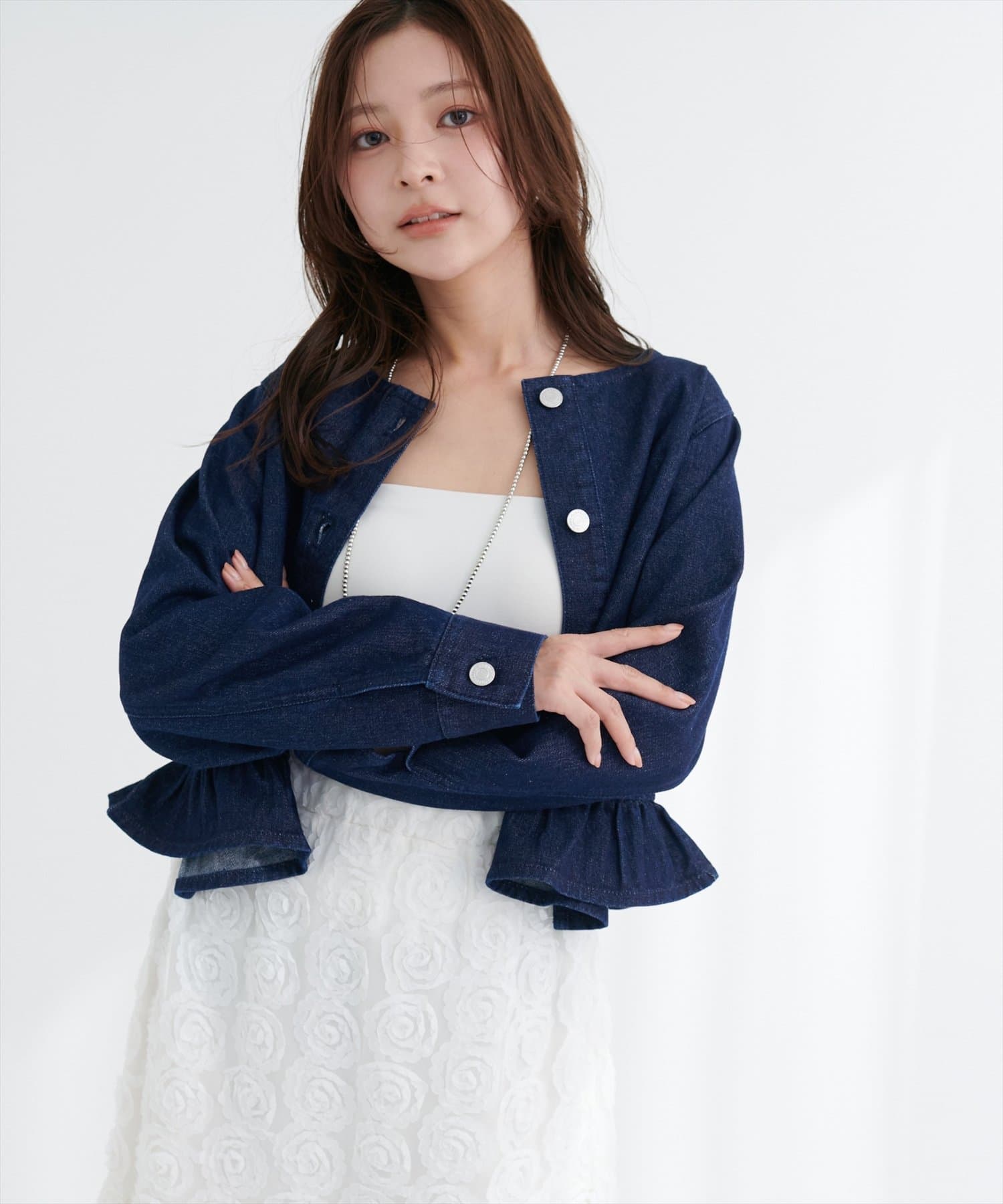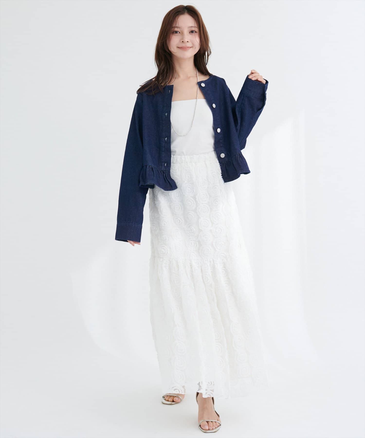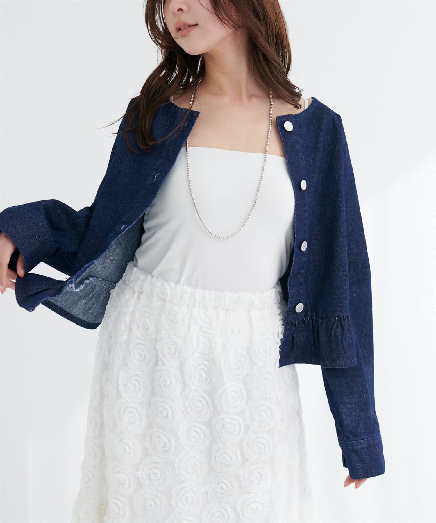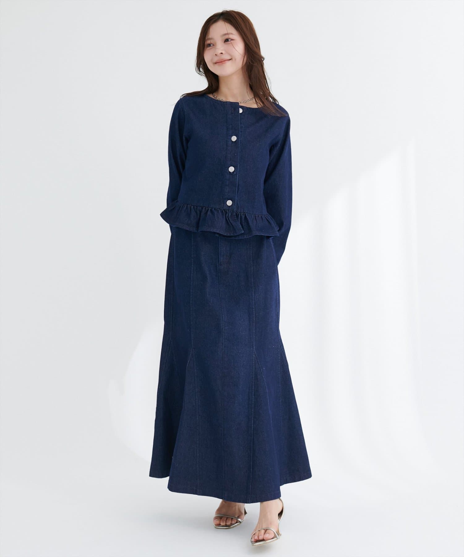0361010150 マーメイドデニムスカートと合わせれば同素材のセットアップ風コーデに♪