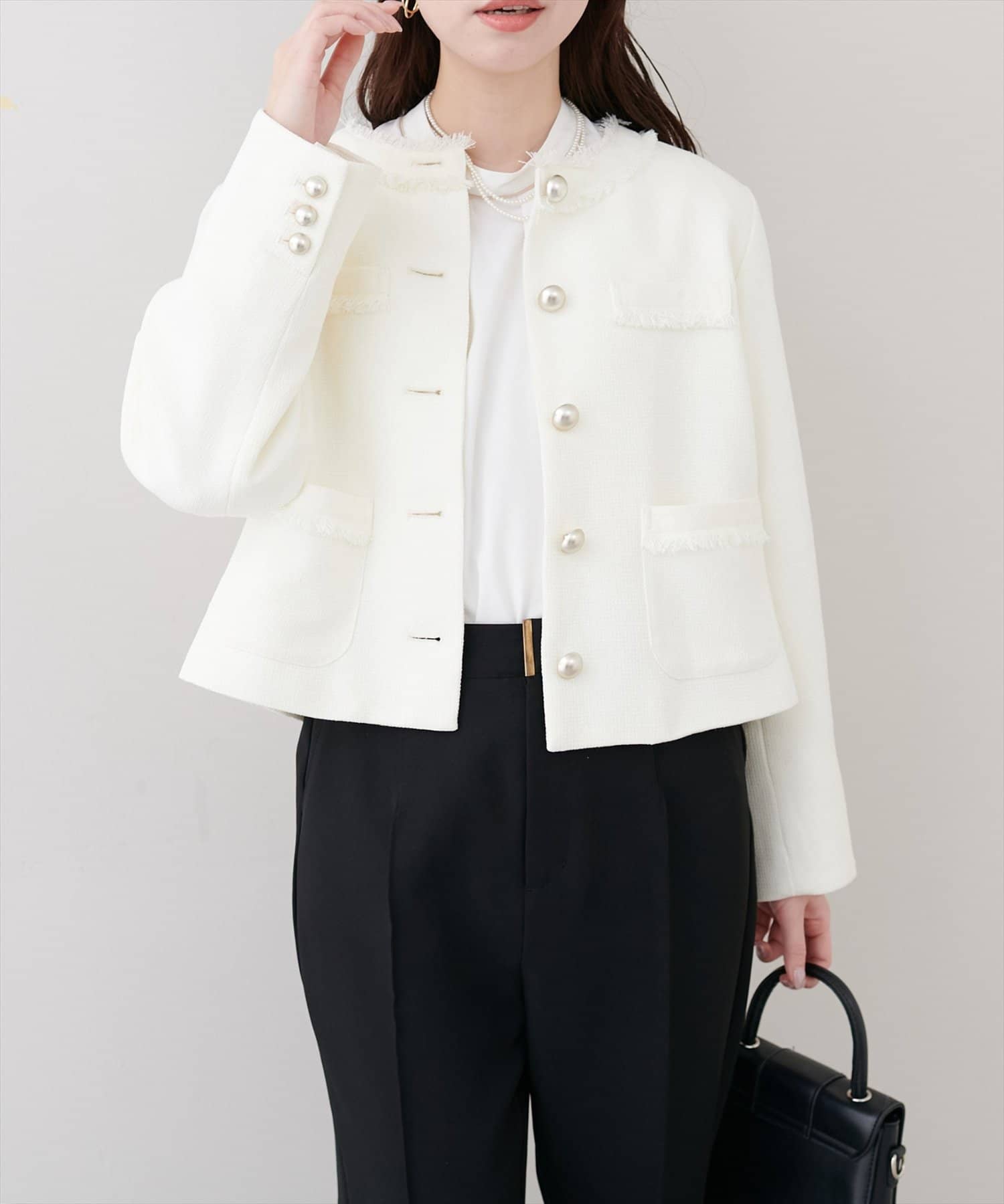 普段のお出かけコーデからセレモニーシーンなどのフォーマルな場面まで、幅広く着ていただける一枚です。