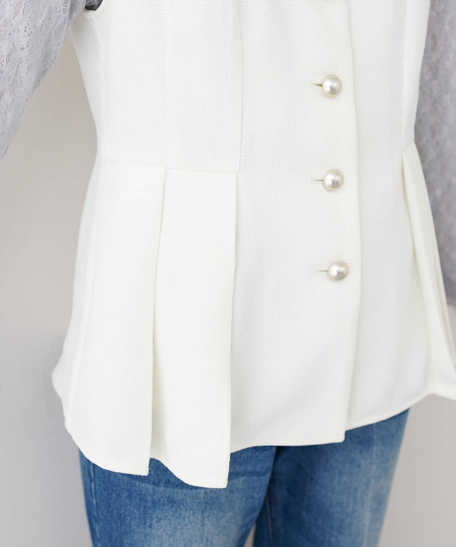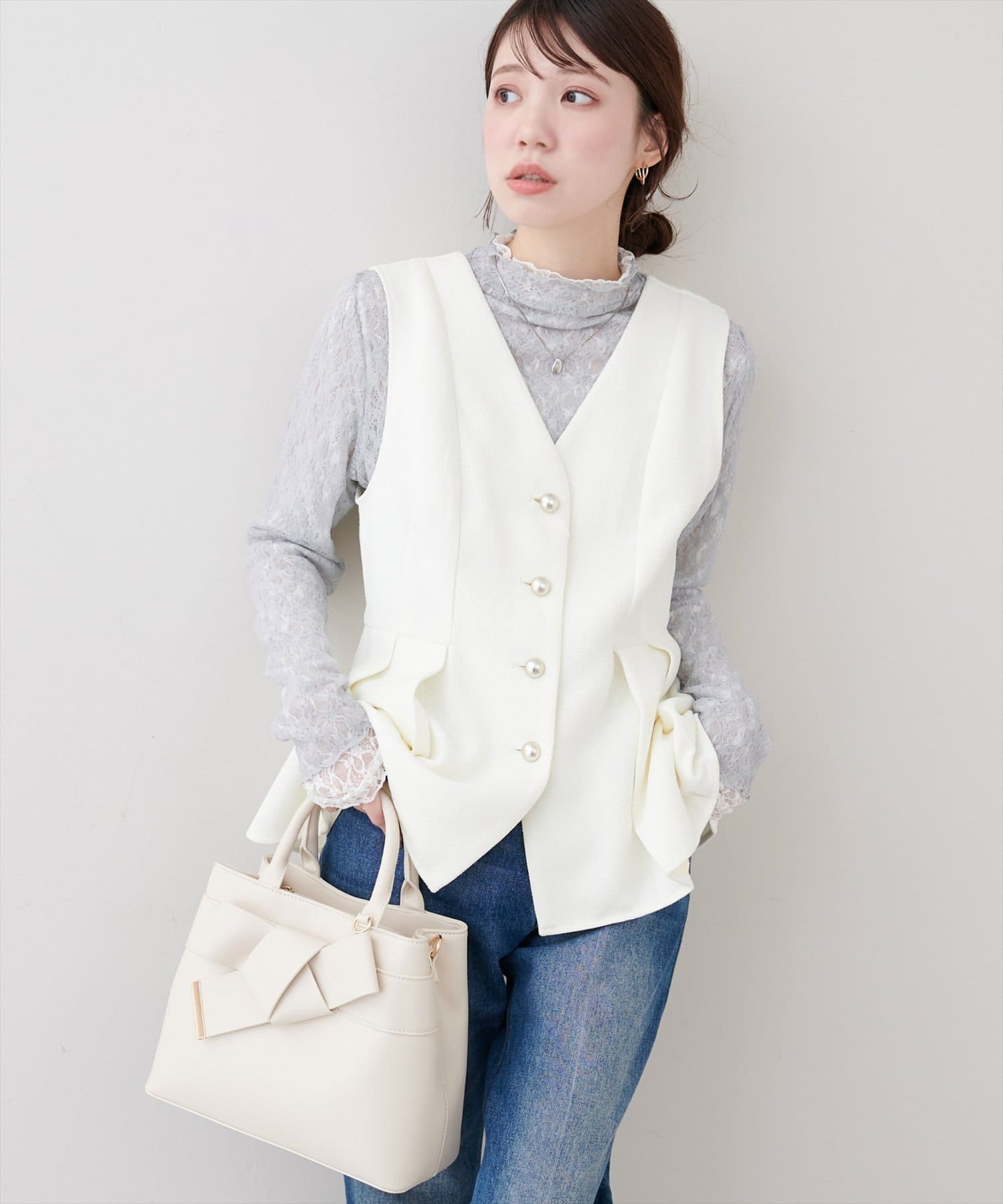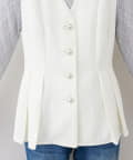 クラシカルな雰囲気とトレンド感を兼ね備えた、金釦ペプラムベスト。