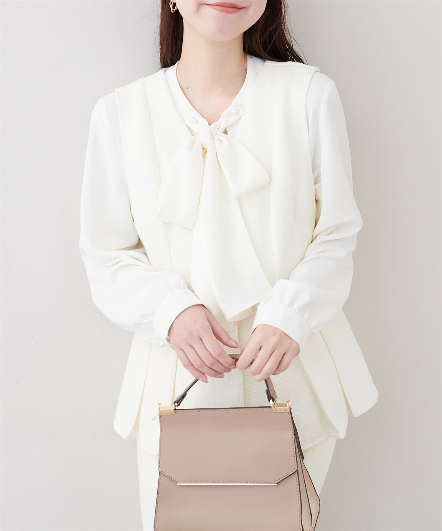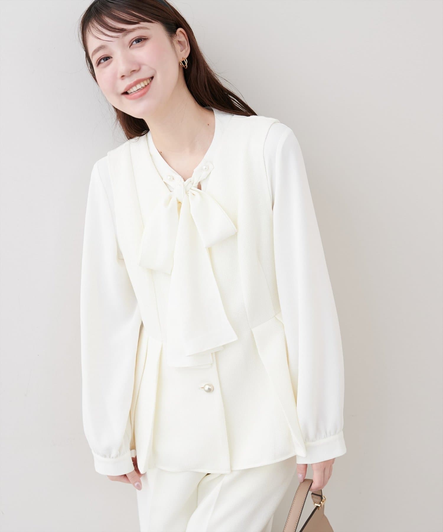 ブラウスやシャツにタイトスカートやテーパードパンツを合わせたきれいめスタイルに羽織れば、