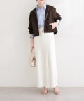 オフィスシーンでは、きれいめのブラウスやワンピースに羽織れば、程よい抜け感をプラス。