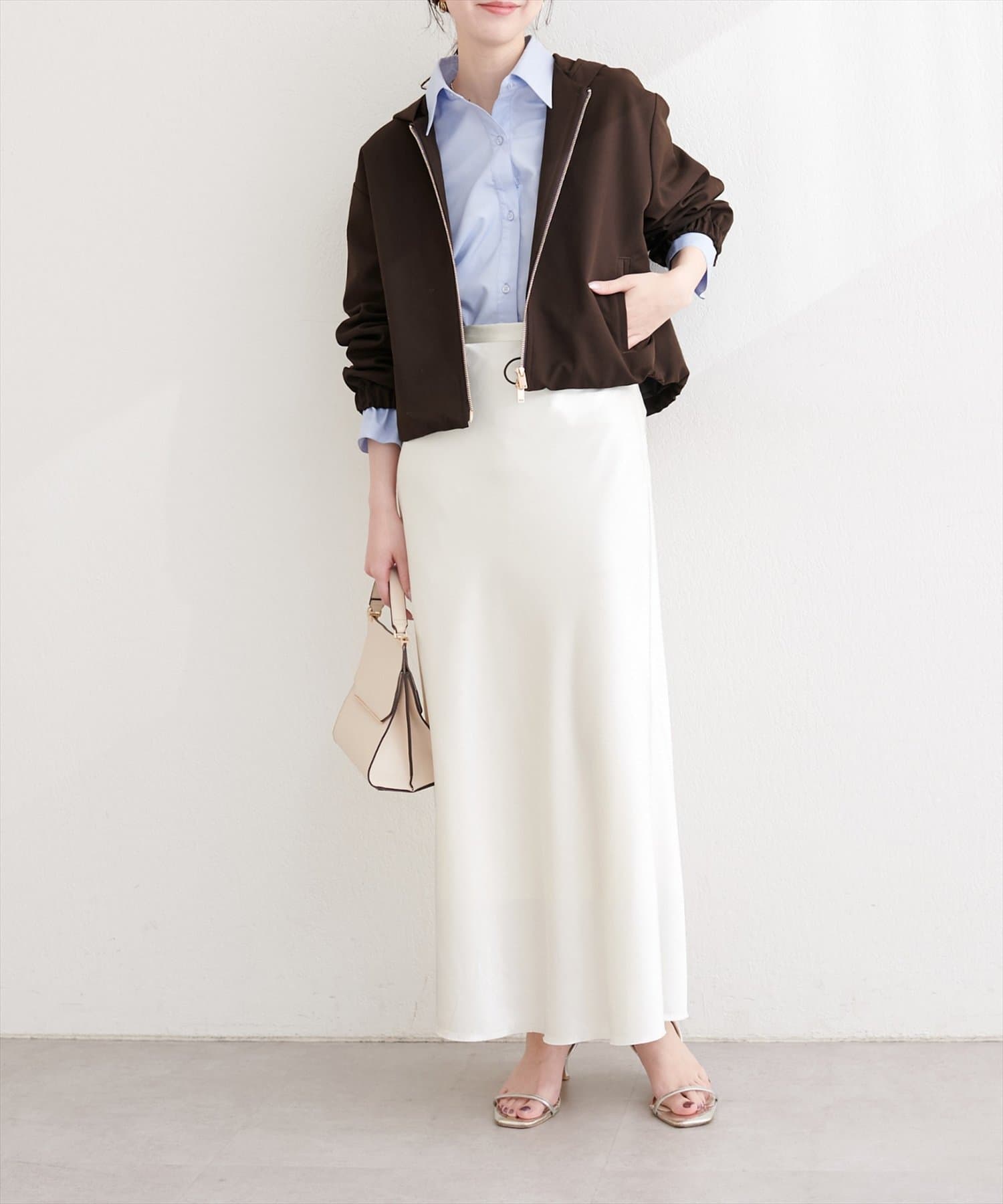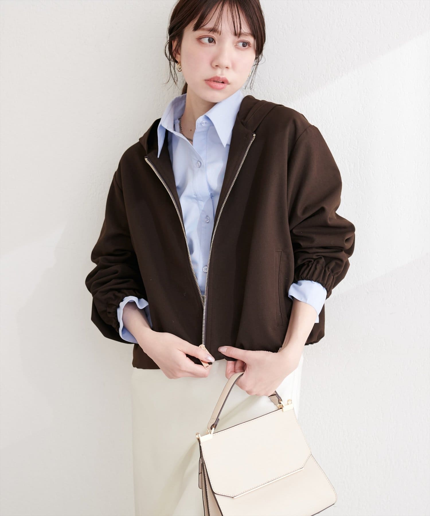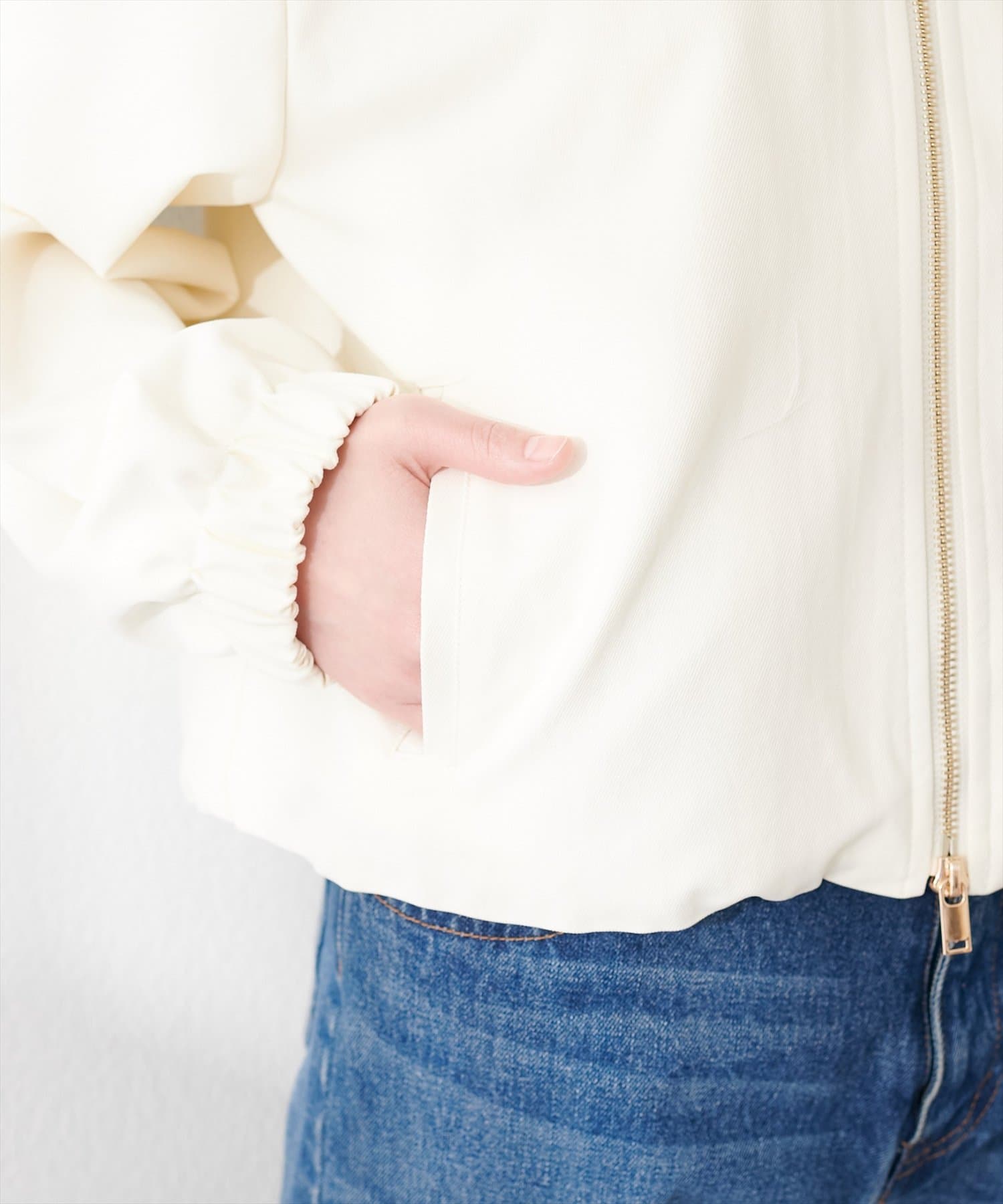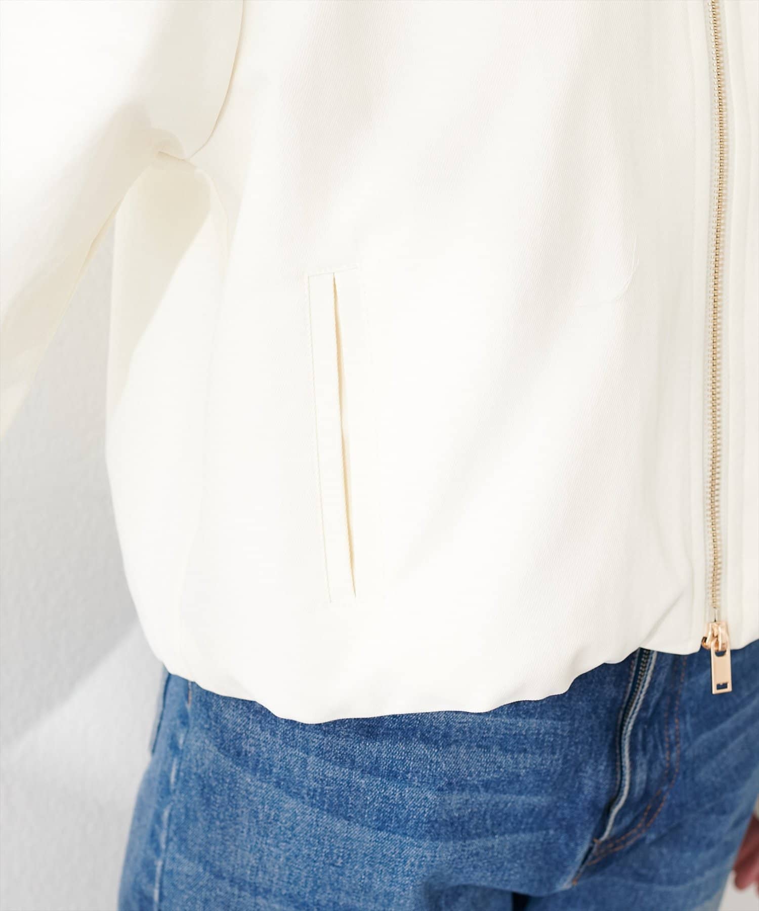 フロントジッパーを開けてラフに羽織れば、こなれ感を演出できます。