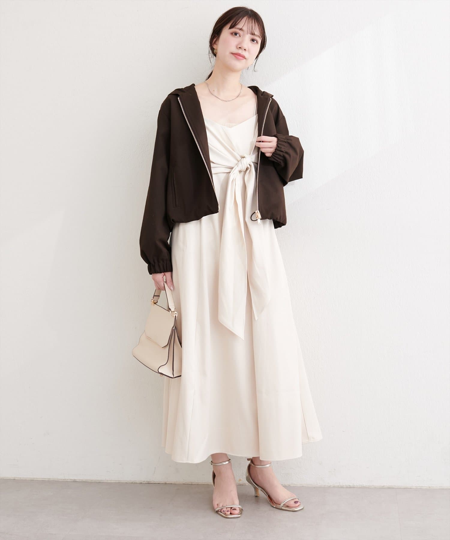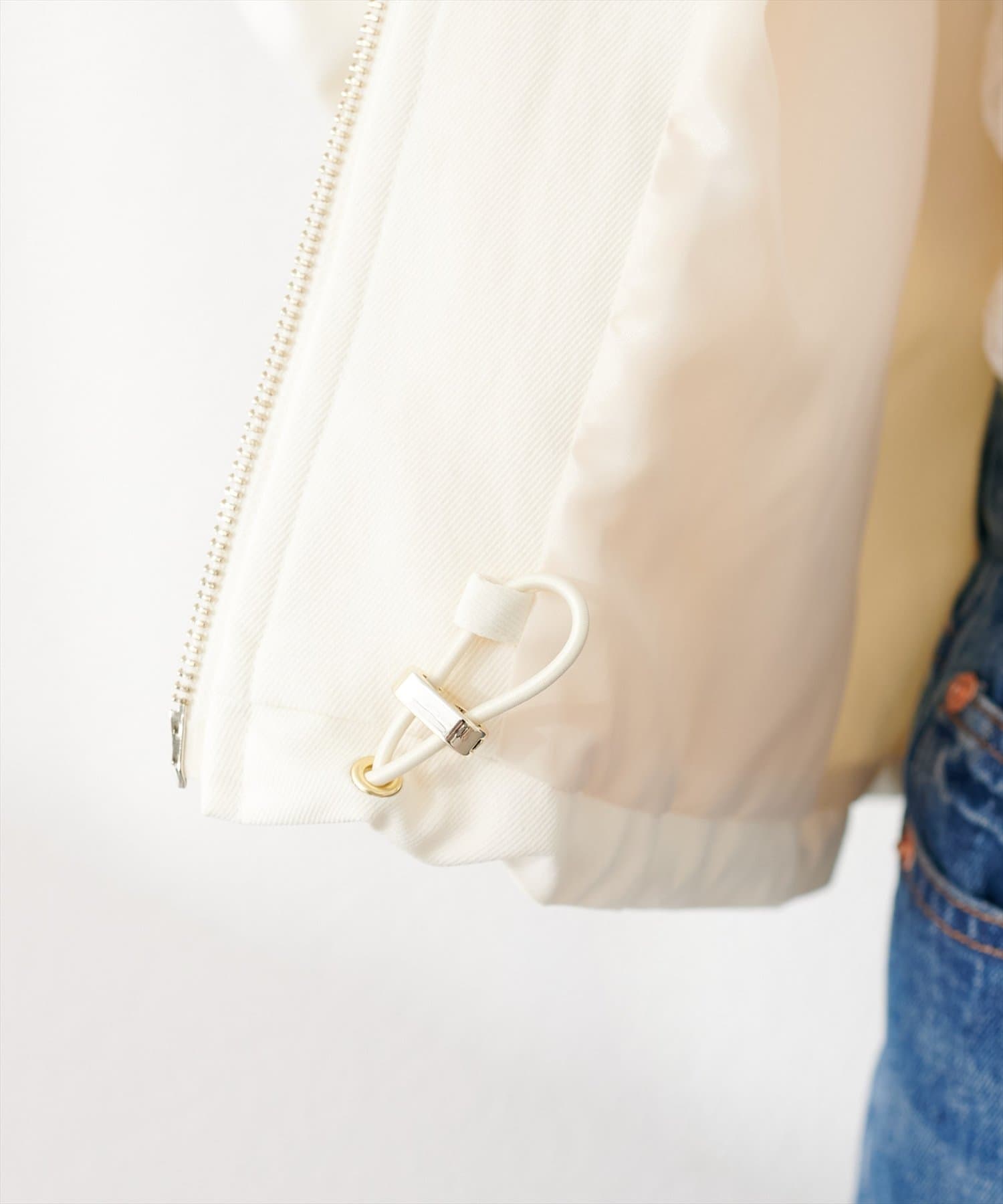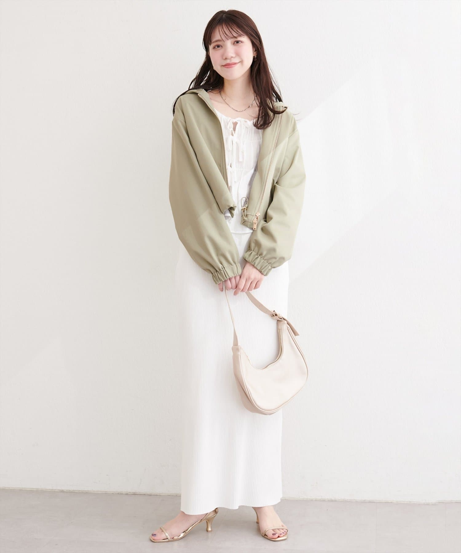 フロントジッパーを開けてラフに羽織れば、こなれ感を演出できます。