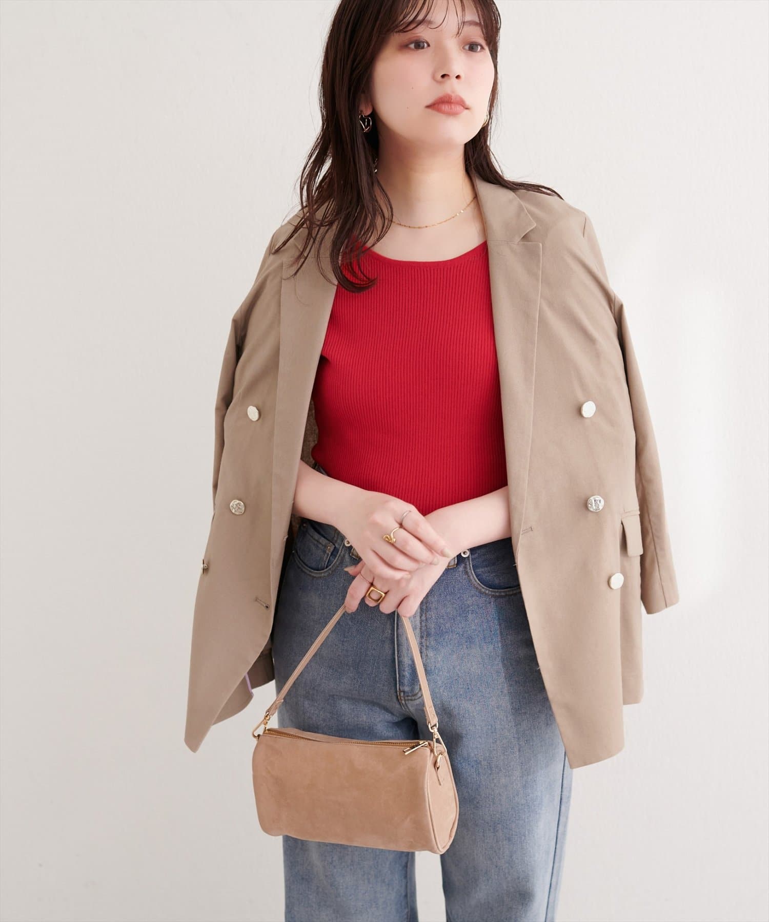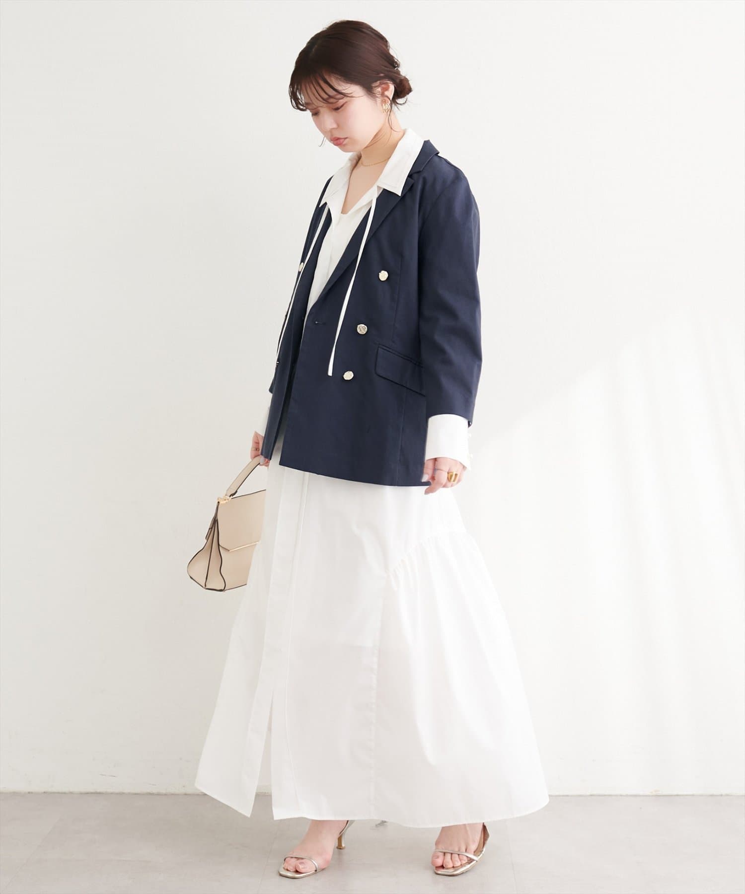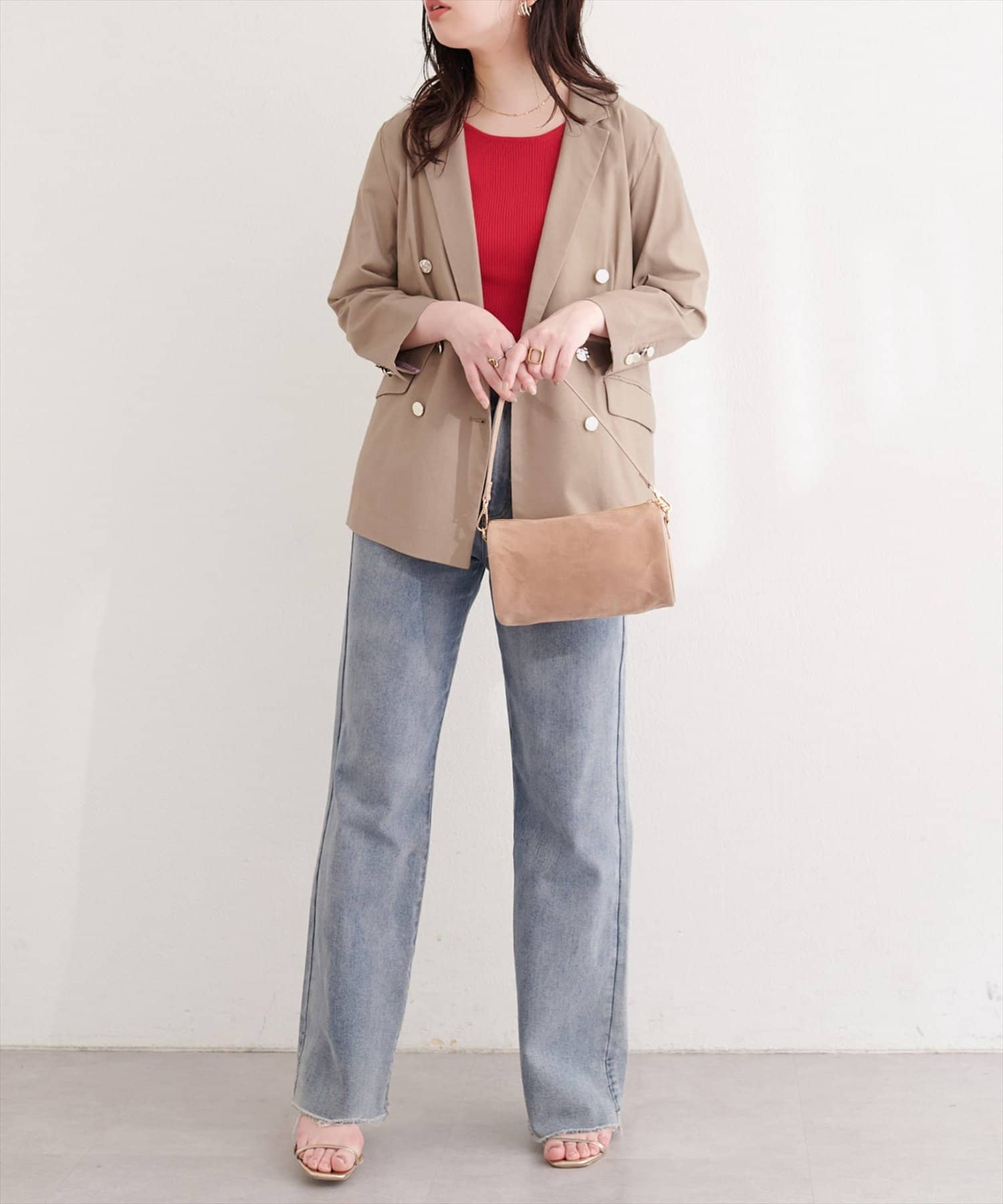 ブラウスと合わせてオフィスシーンにはもちろん、ロゴTシャツなどカジュアルなアイテムにも羽織るだけできれいめな印象に。