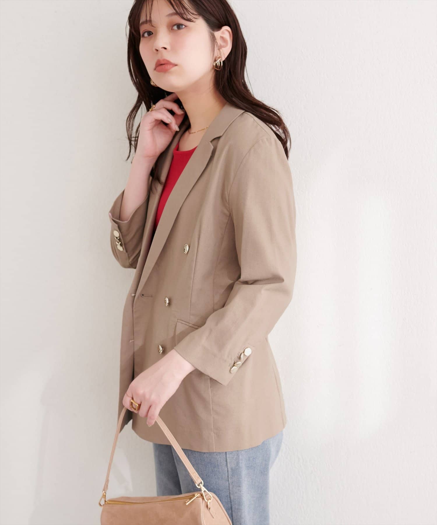 〈osono〉べこべこ金釦綿麻テーラードジャケット