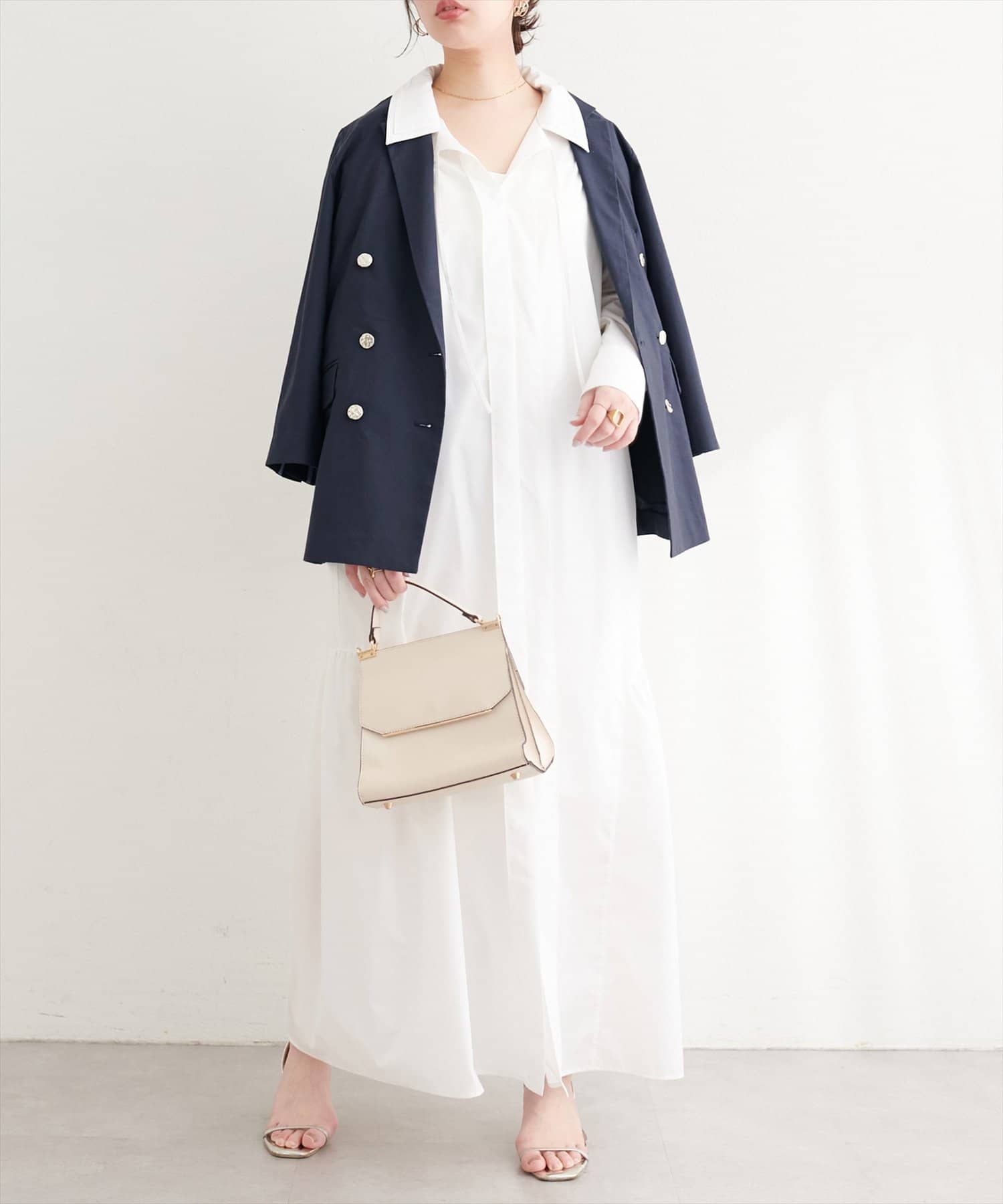 かっちりした雰囲気で、さらっと羽織るだけできちんとした印象に導きます。