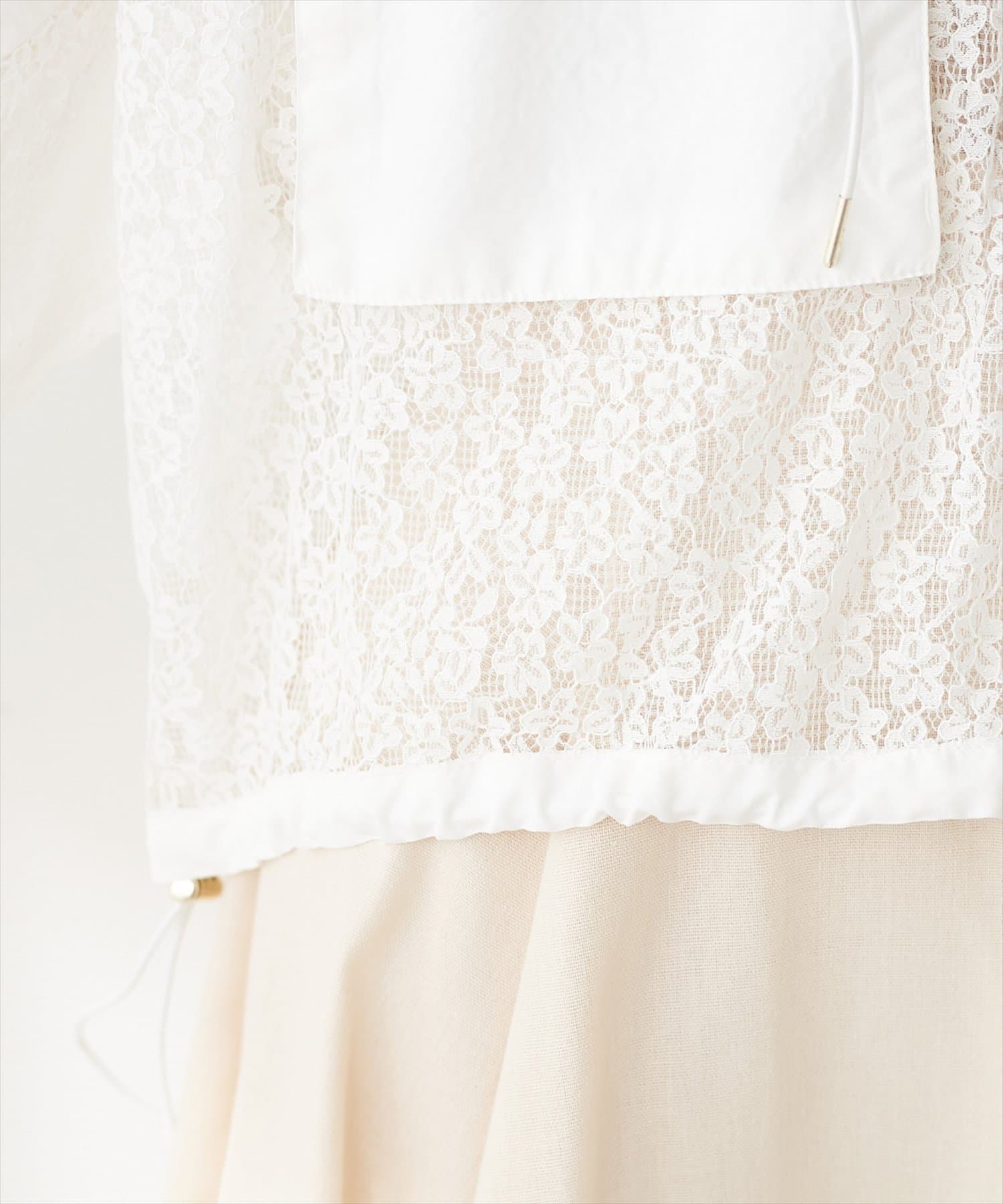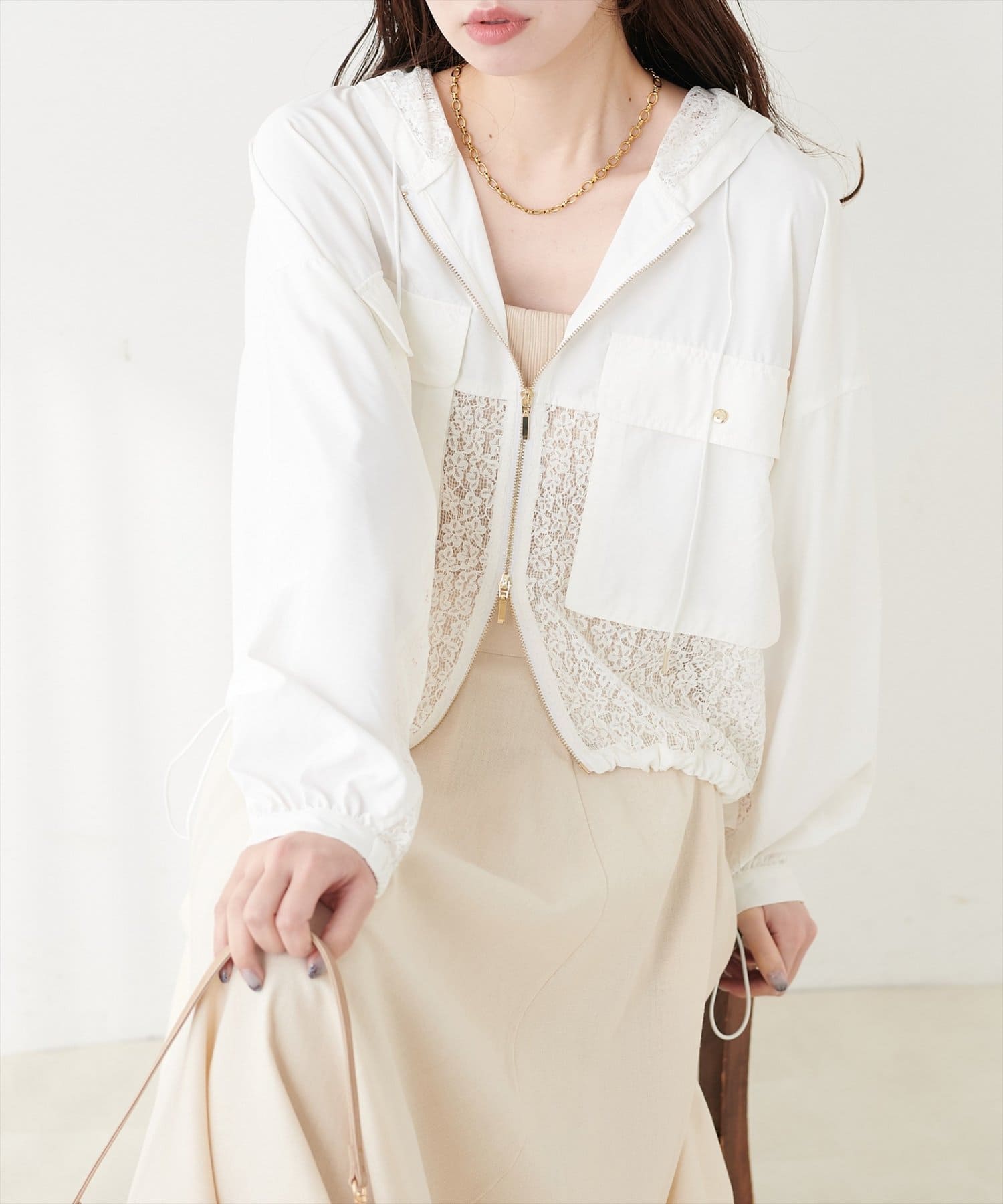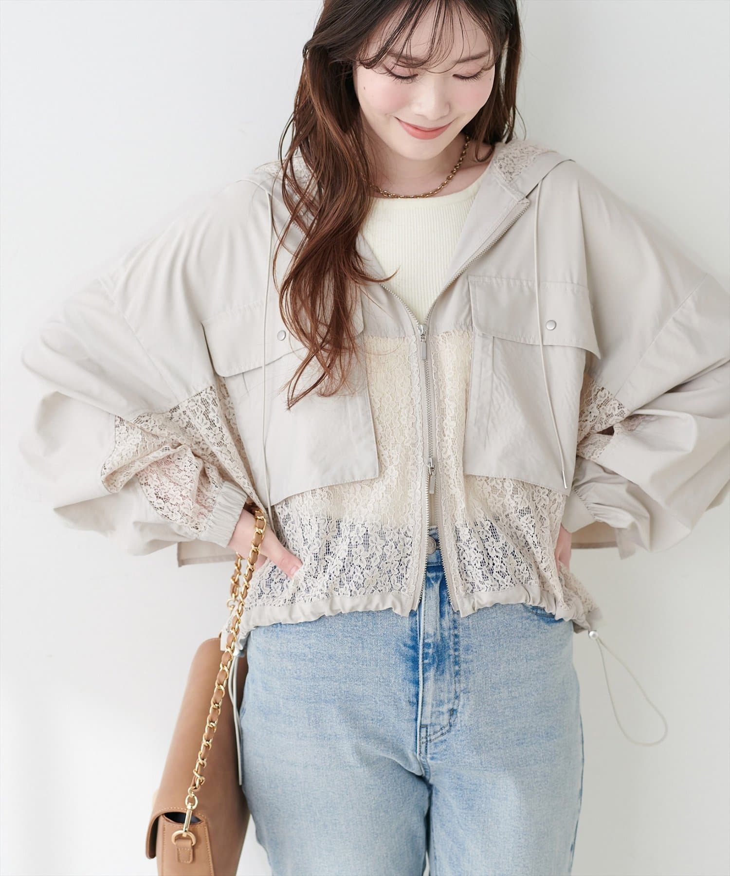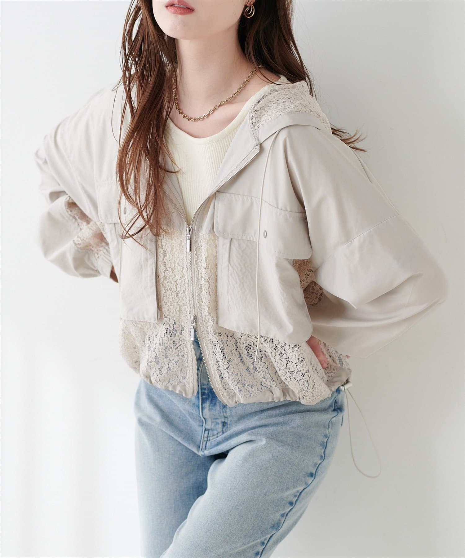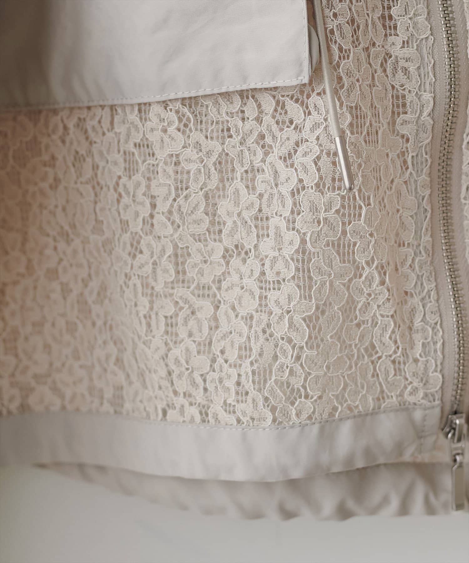 ブルゾンの持つラフな雰囲気と、レースの持つエレガントさが調和し、